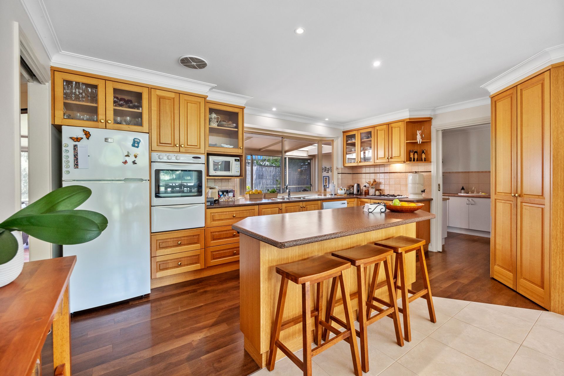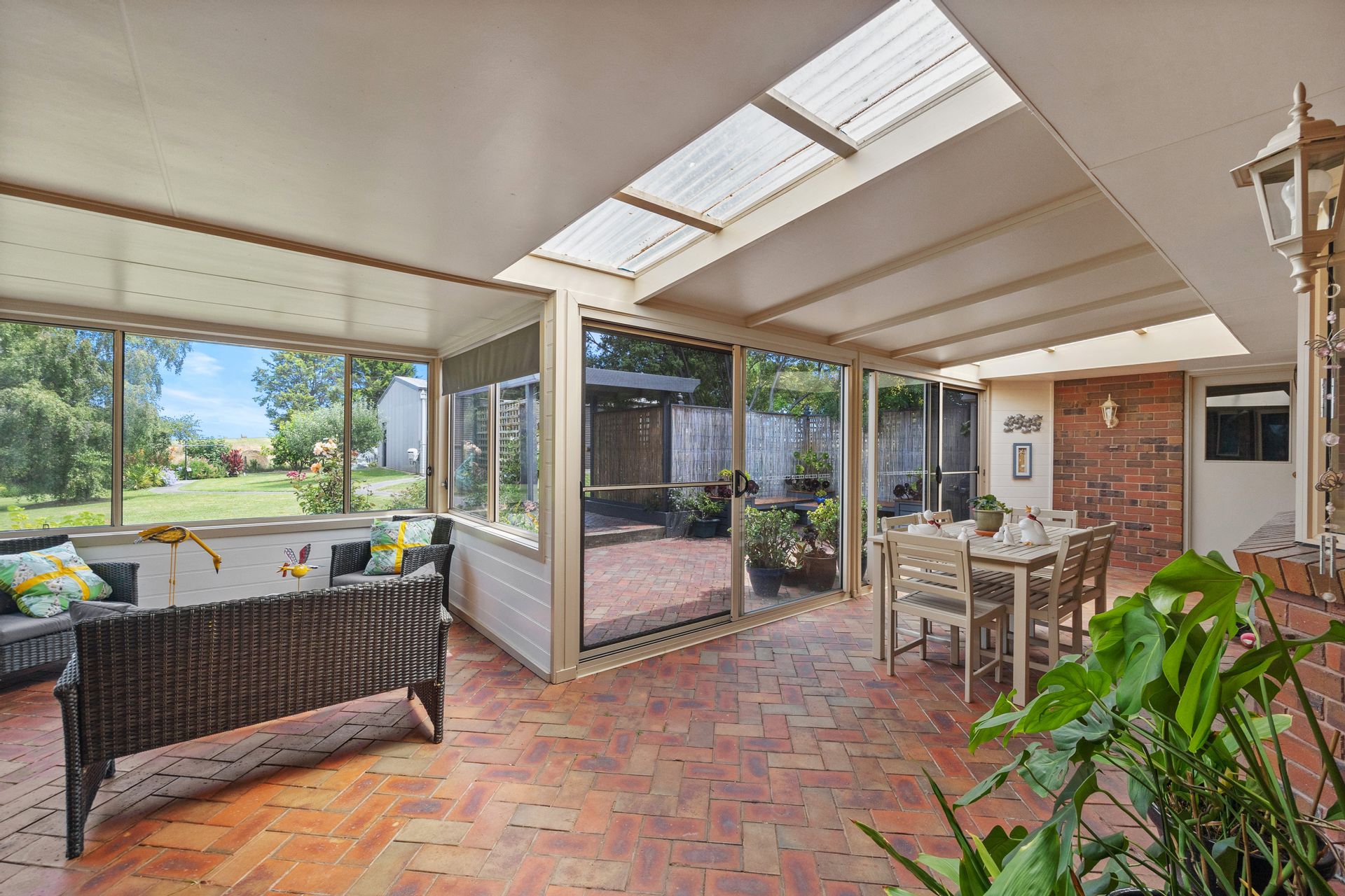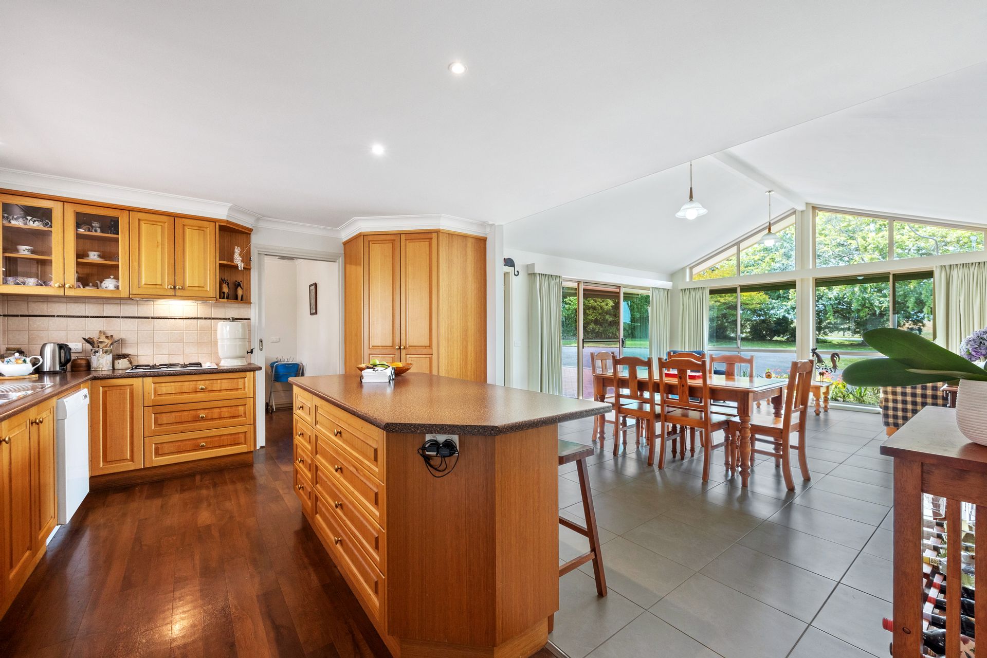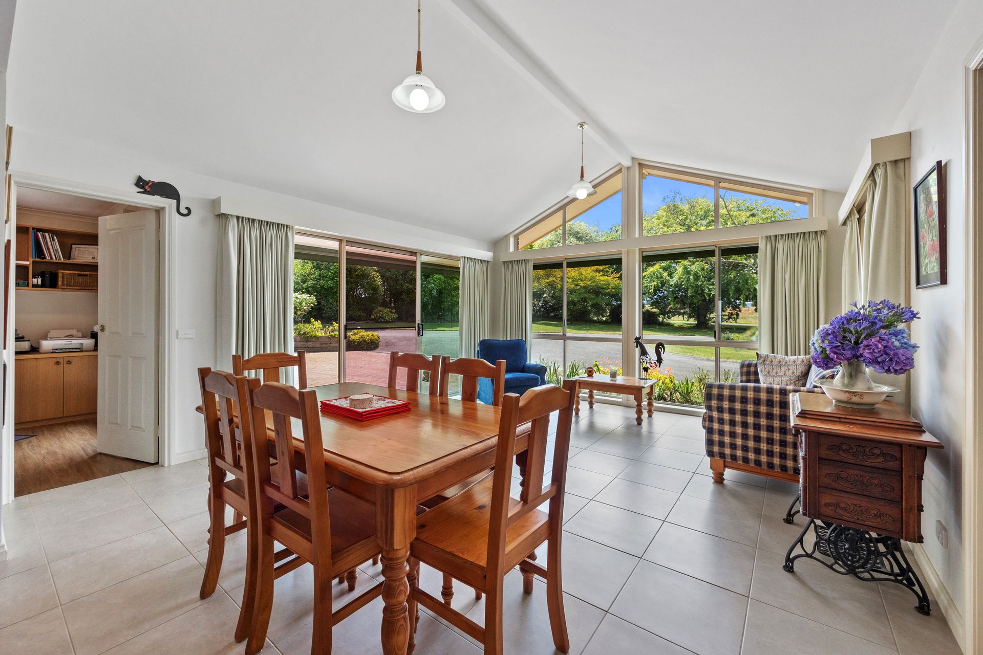 Luxury awaits new owners of this 1.2 acre Leongatha-South property, where expansive windows provide superb rural views beyond the floral rose-border of the grounds. This 3BR plus study home was built by well- regarded local builders Considine & Johnston, the home is plushly furnished in neutral tones, and has a gas log-fire place, Reverse cycle Air Conditioning and ducted vacuuming. These features plus the amount of natural sunlight penetrating indoors, means that a stable warmth is able to be maintained throughout the severest winter. The home is built with a juxtaposition of interesting angles. The dream kitchen is central and is well endowed with storage space, including 5 banks of functional drawers and new vinyl flooring. Both bathrooms have been recently updated with new mirrors, tiling and shower screens. The living-areas & office face north towards the sealed circular driveway with a broad paved apron. The drainage here is substantial, and reflects the general attention to detail that is a feature of this property. The back entertaining has been fully enclosed creating a BBQ area that use all year round and a beautiful sun filled room to entertain.
