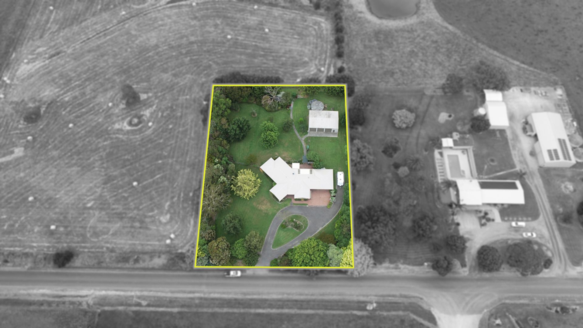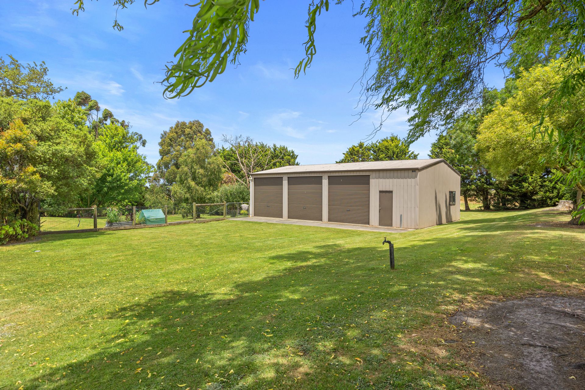 This 3 bay shed has a concrete floor, 3 phase power, & a large concrete-tank which captures considerable run-off.