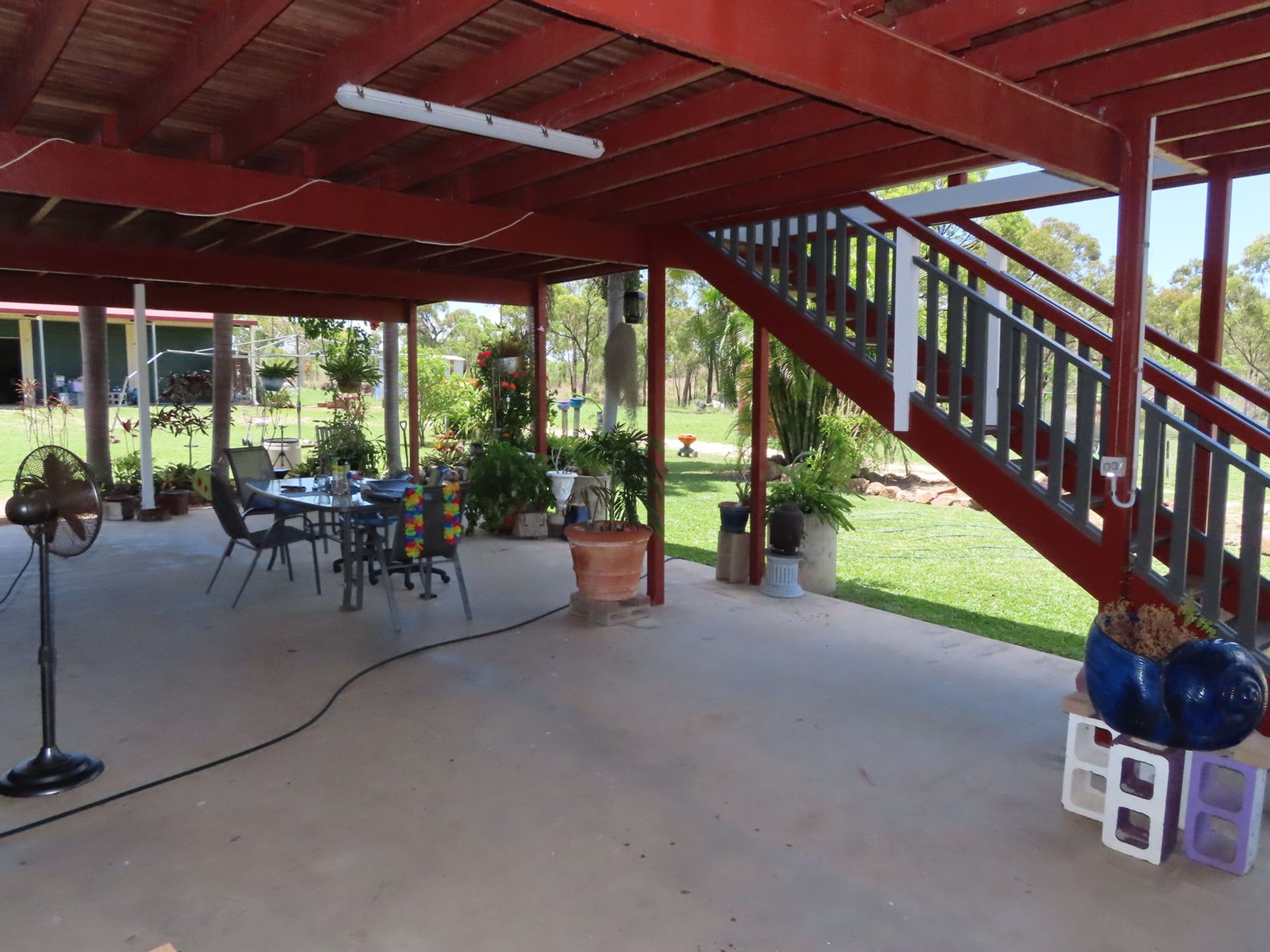 Across the yard is a super size 15m x 9m colorbond with power and outlets galore and has a 15m x 2m skillion awning. The doors have a bit of extra height. The property has access to 3 phase power if you require it. Power is supplied by three poles from Africandar Road and then underground to the house. The main board has a generator input if you get bad weather.