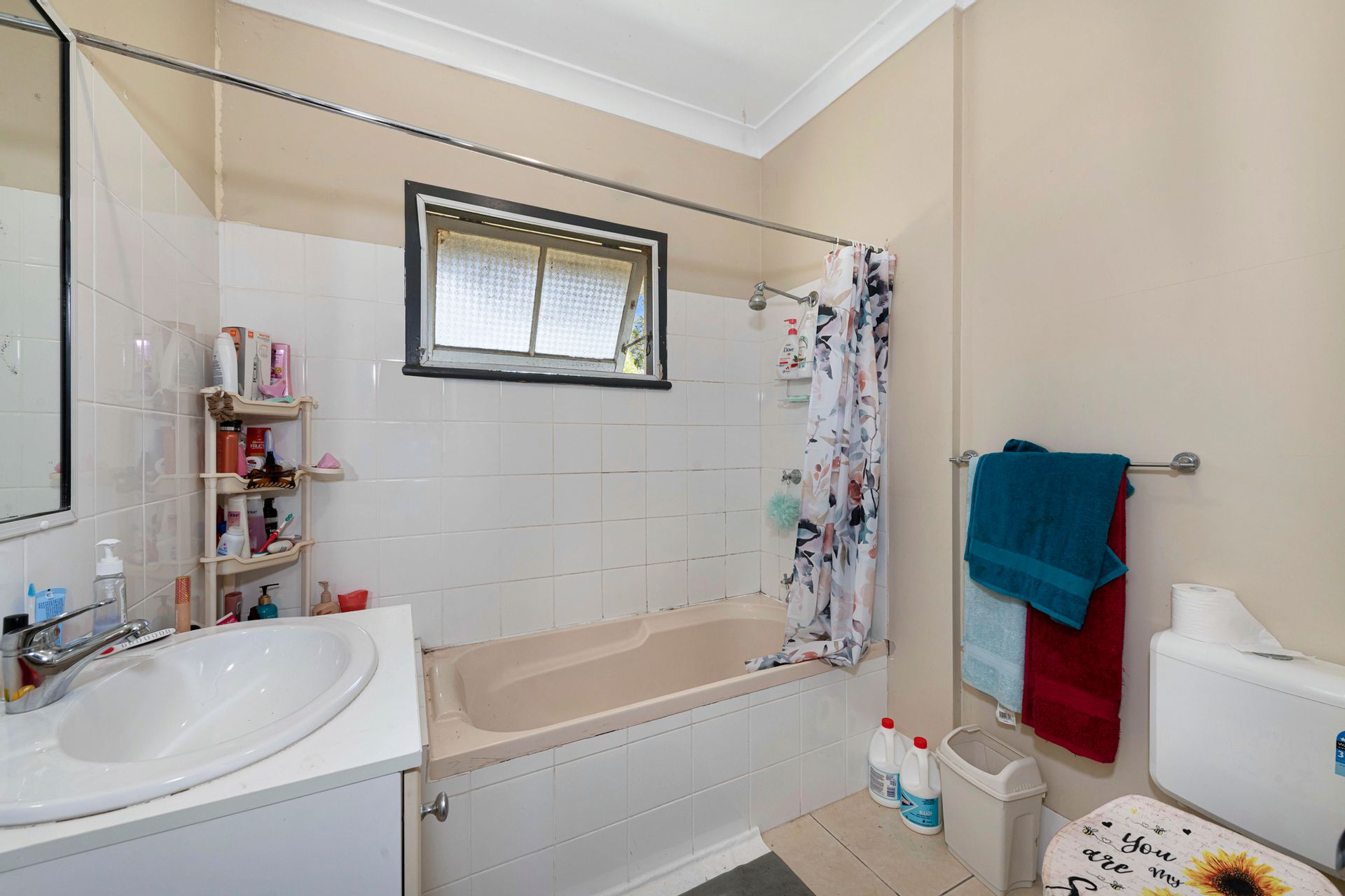 - Bathroom with Shower over Bath, Toilet & Vanity