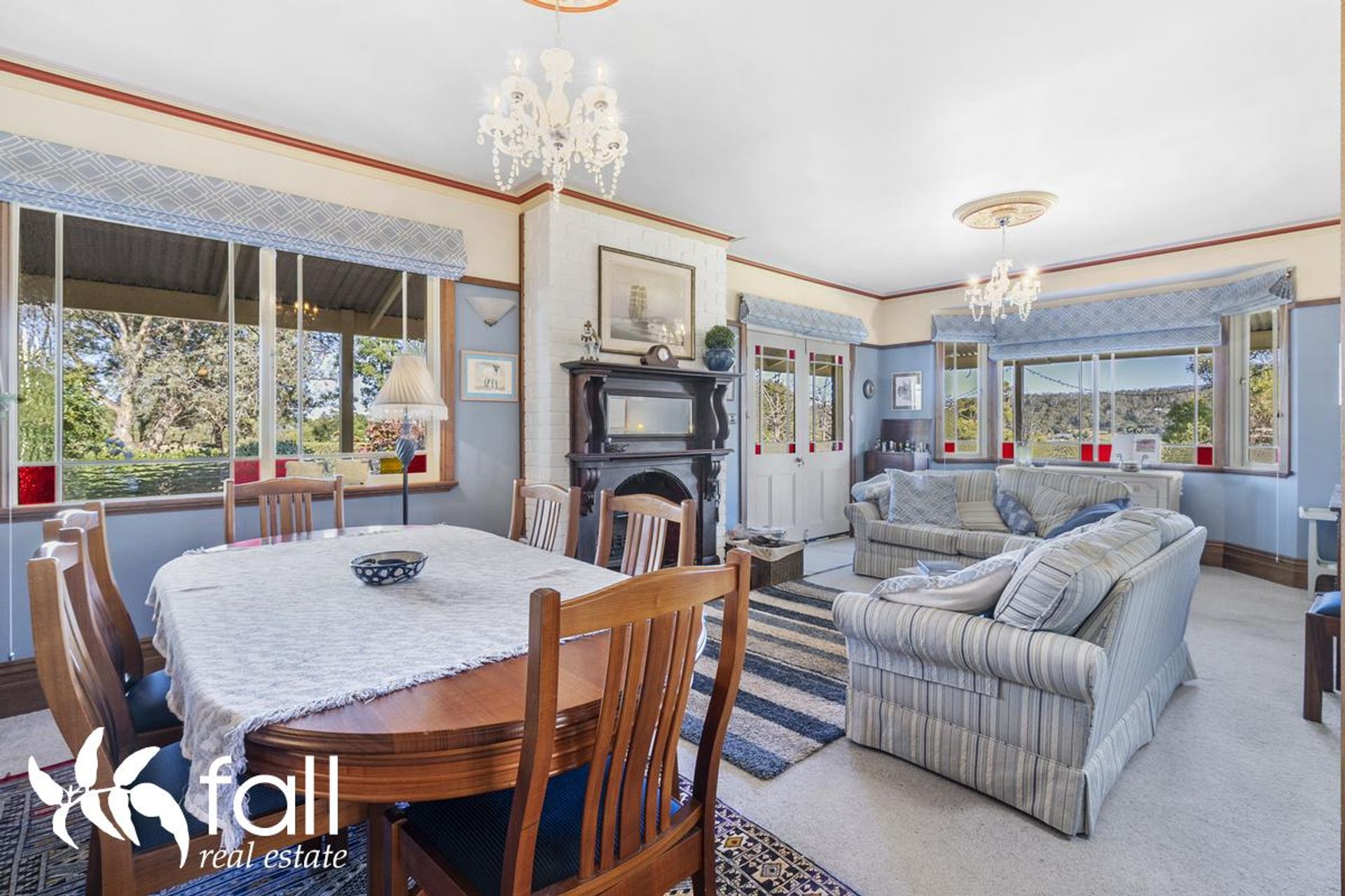 The entry portico with a historic front door leads through into a sun-filled family room with a dining area and a beautifully appointed kitchen with country-style cabinetry and a butler's pantry. The formal separate lounge with an antique fireplace incorporates an efficient pot-belly stove. Both rooms flow out to the verandah through double doors providing a splendid viewing platform from which to absorb this idyllic setting whilst benefitting from the fresh, clean air.