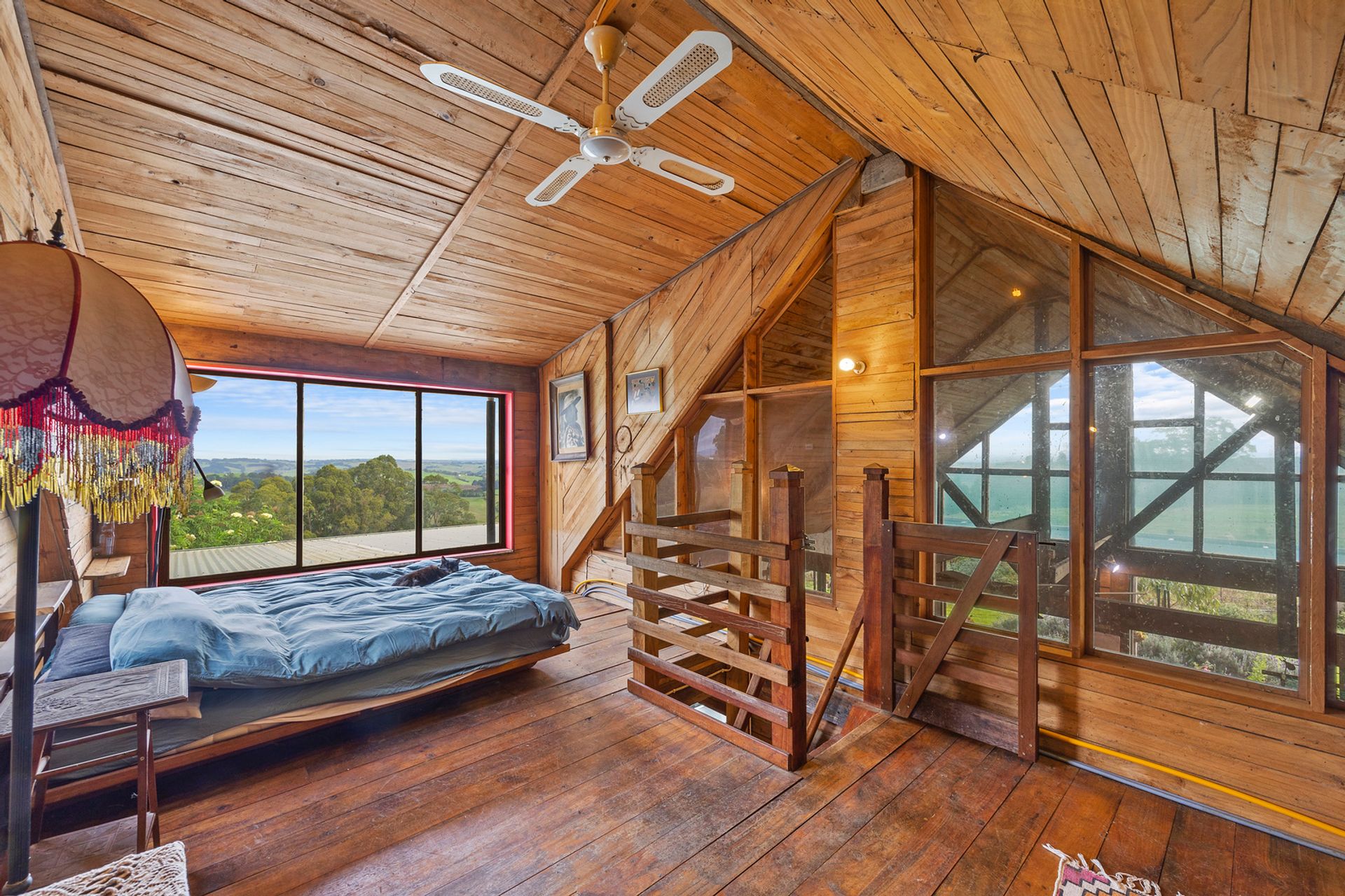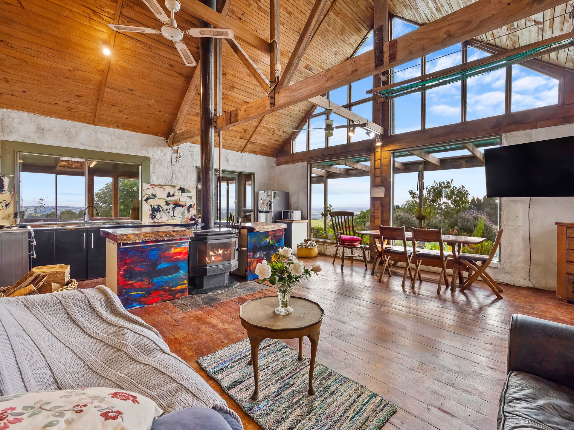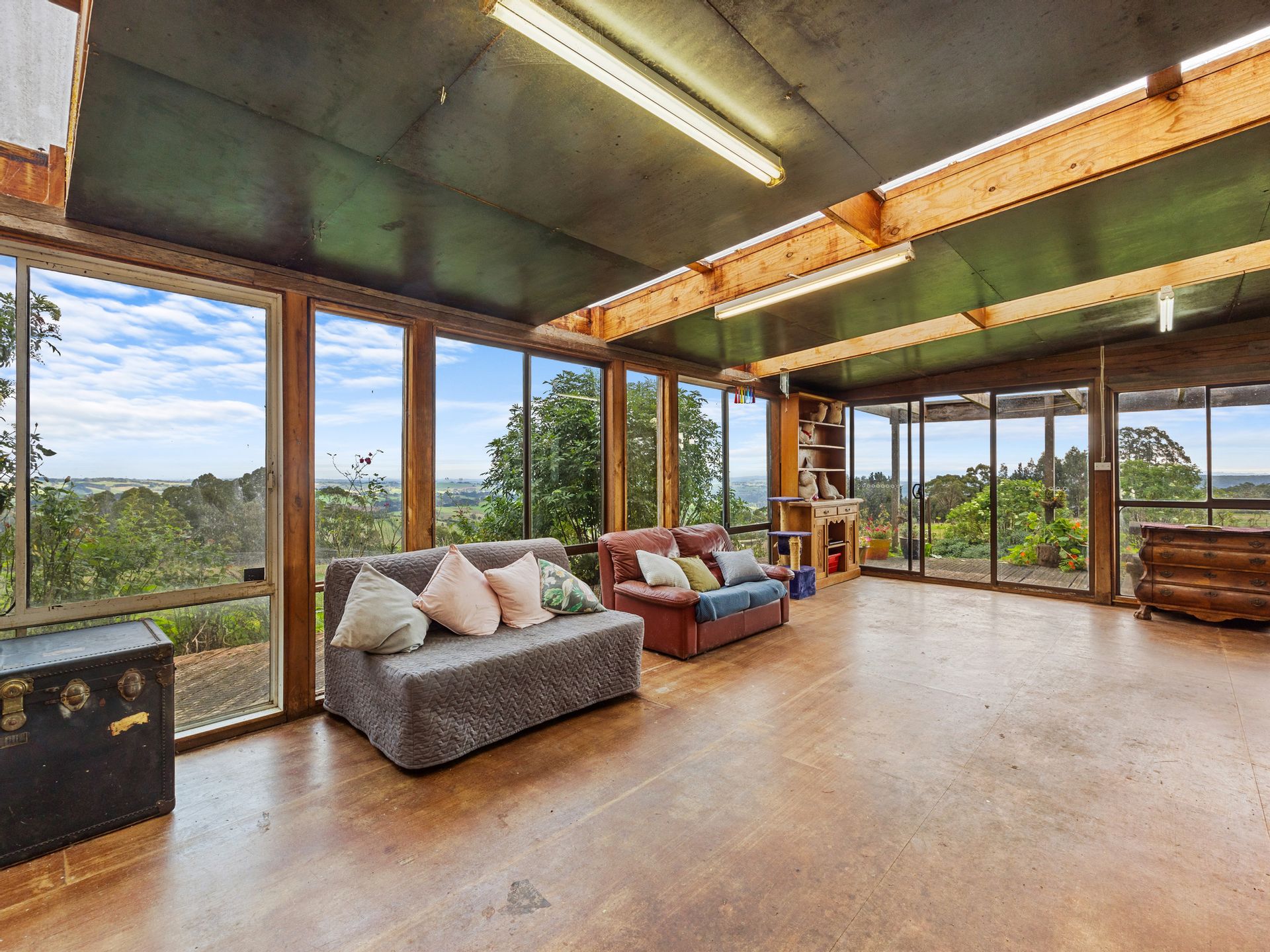 The two bedroom main homestead offers 180 degree views and has been built using timbers sourced and milled from the property itself. Polished timber floors, picture windows and mud brick walls are just a few of the captivating features of this home.