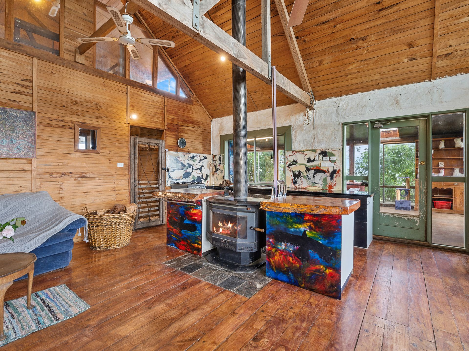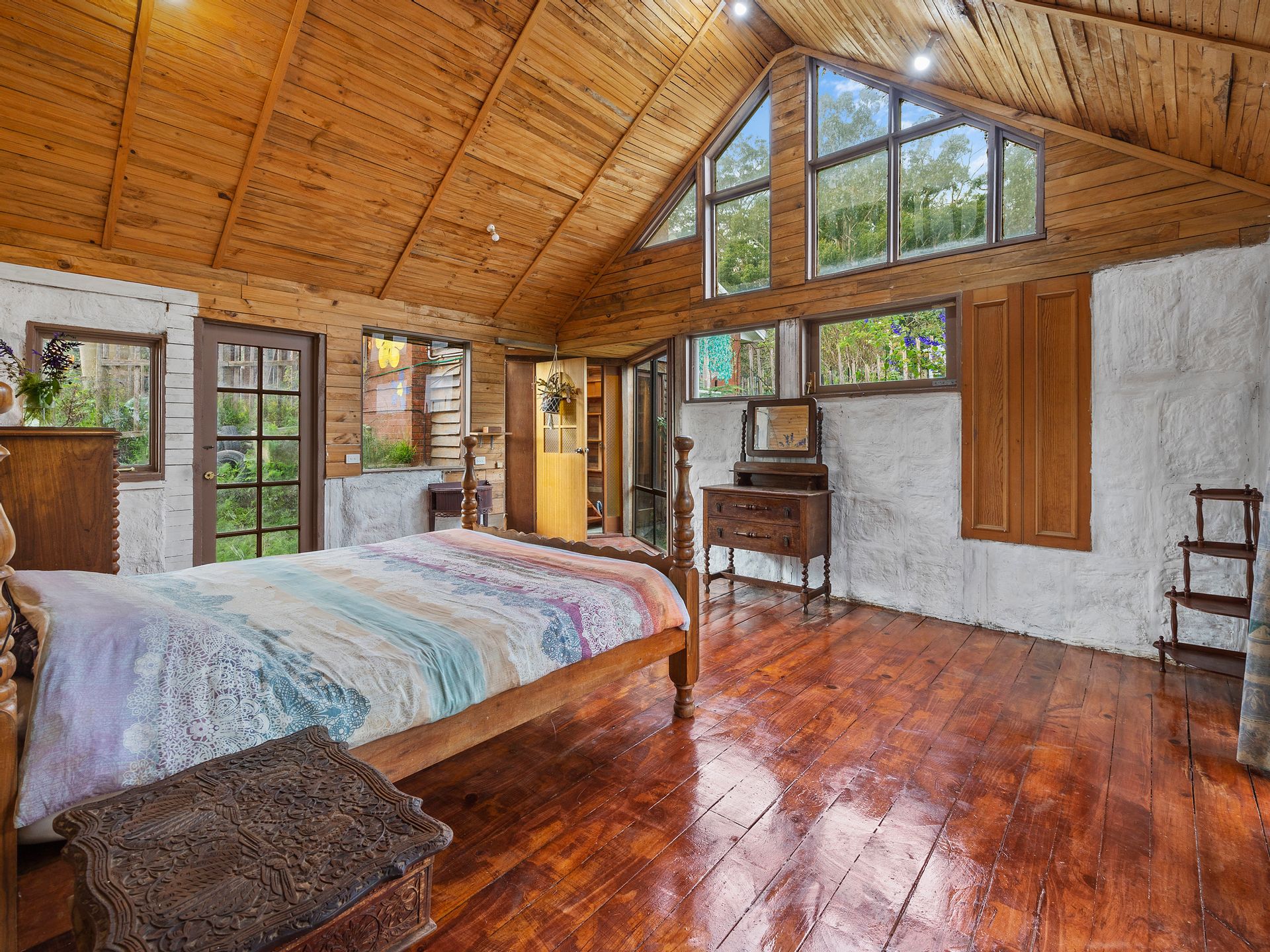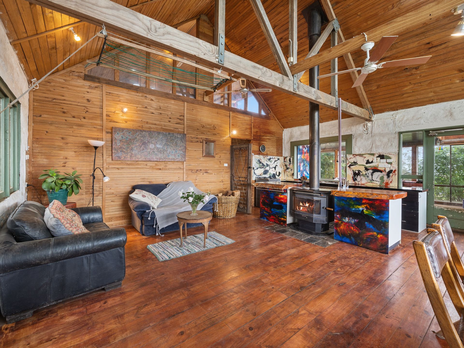 The two bedroom main homestead offers 180 degree views and has been built using timbers sourced and milled from the property itself. Polished timber floors, picture windows and mud brick walls are just a few of the captivating features of this home.
