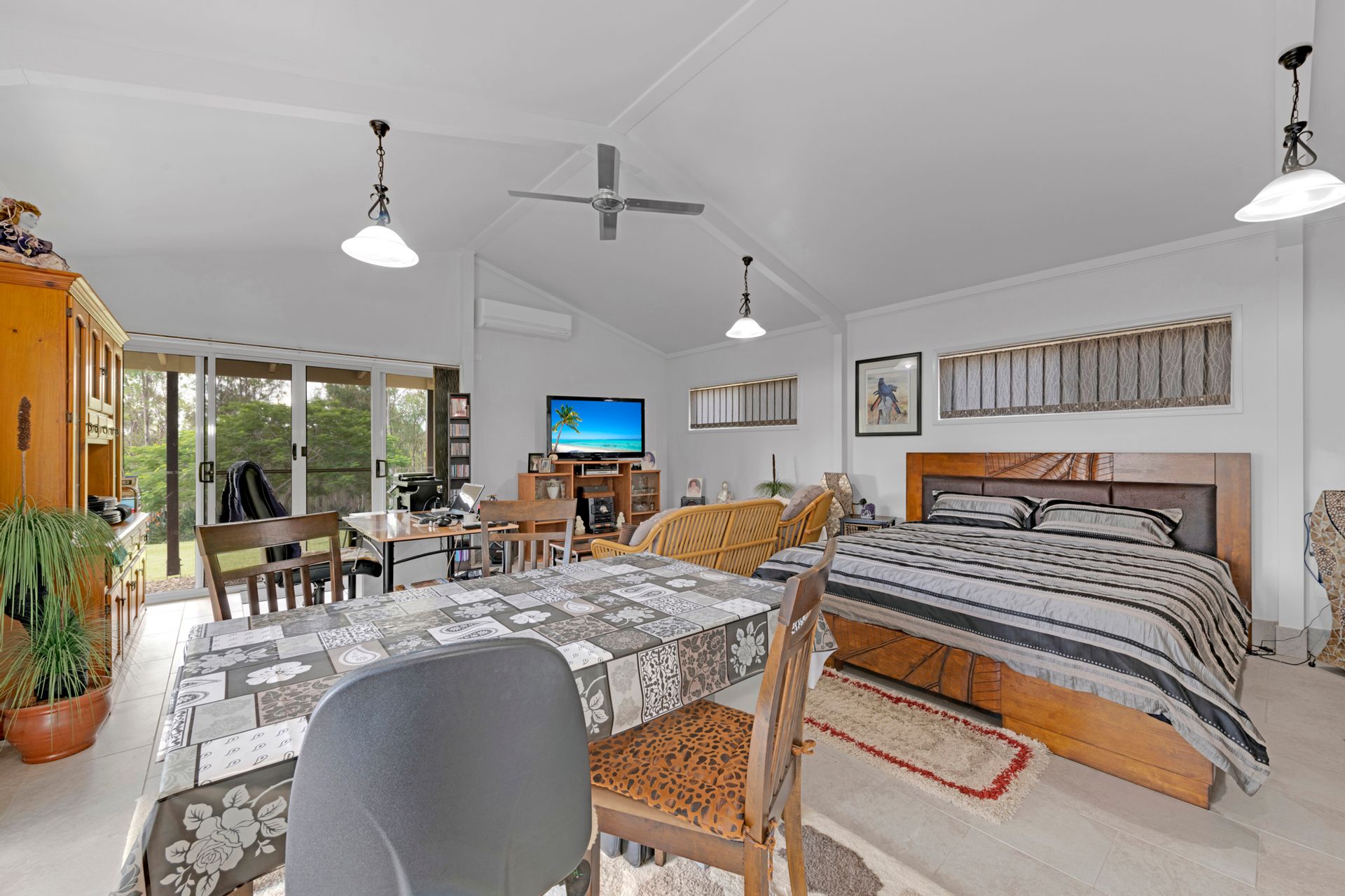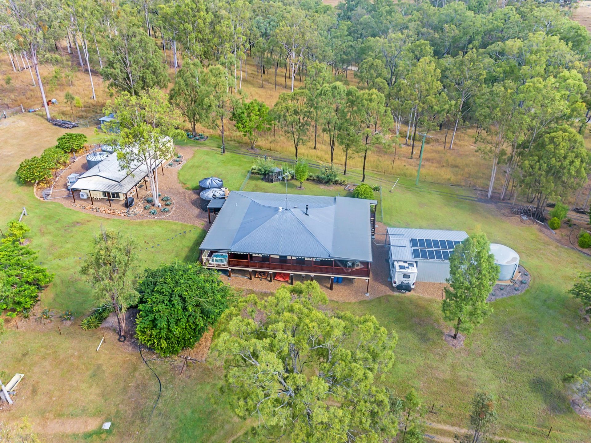 For those who need some separate living space, there is a 9m x 6m airconditioned unit with Kitchenette & Bathroom. This could be the perfect spot for a Home Based Business, Teenagers Retreat or for the Grandparents in-between Caravanning Adventures.