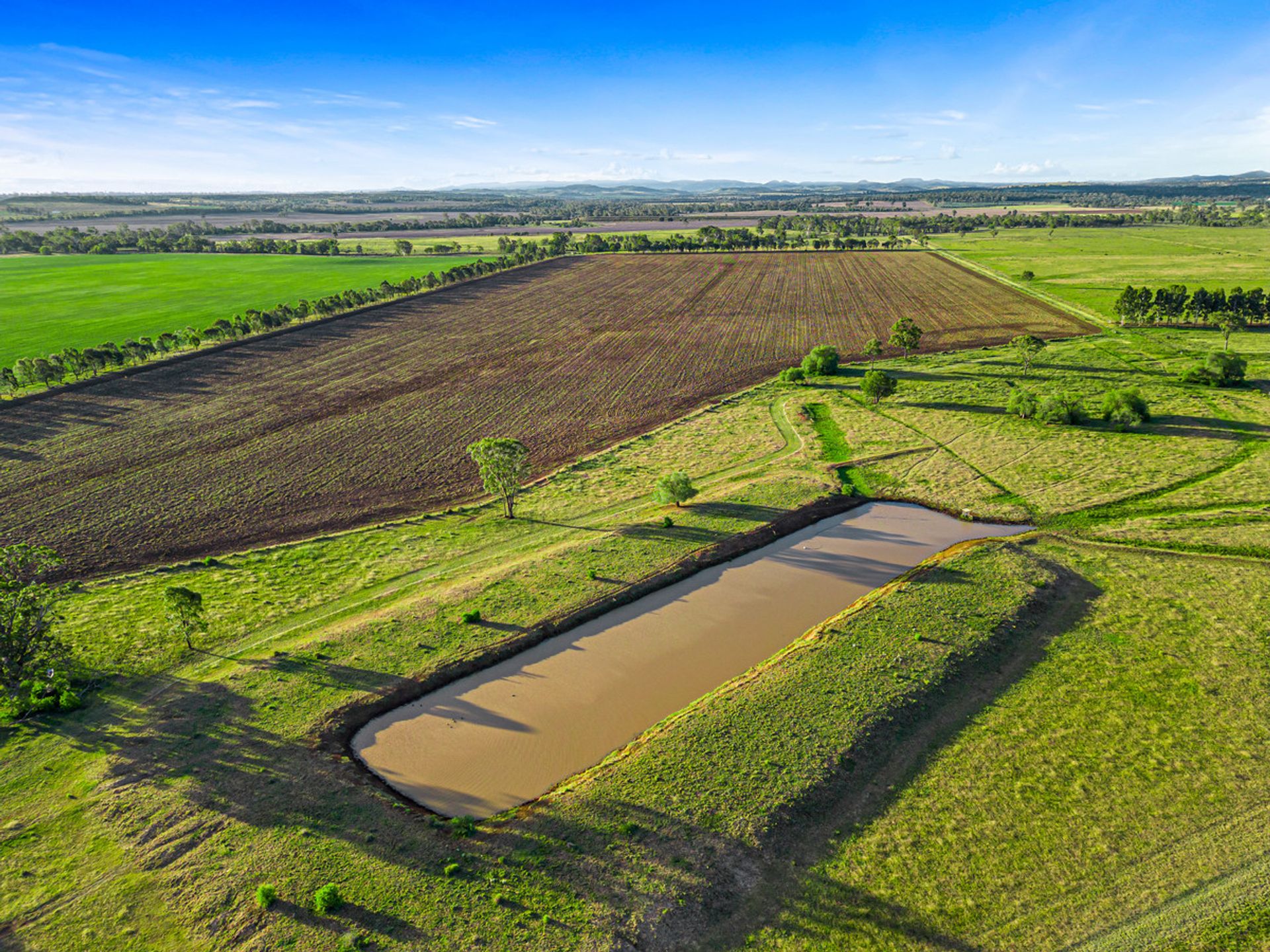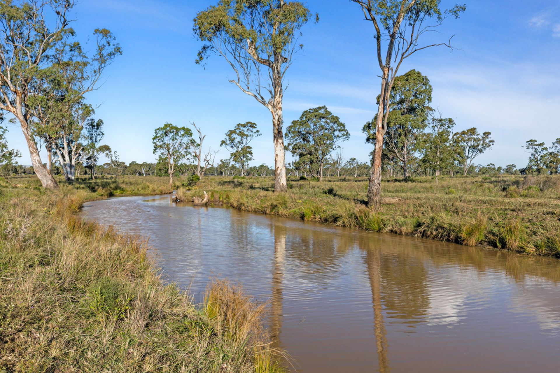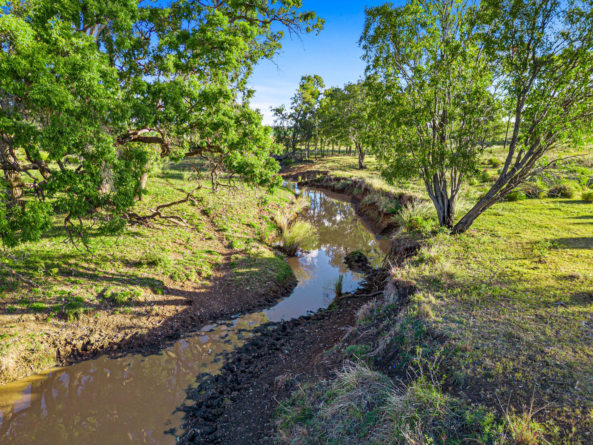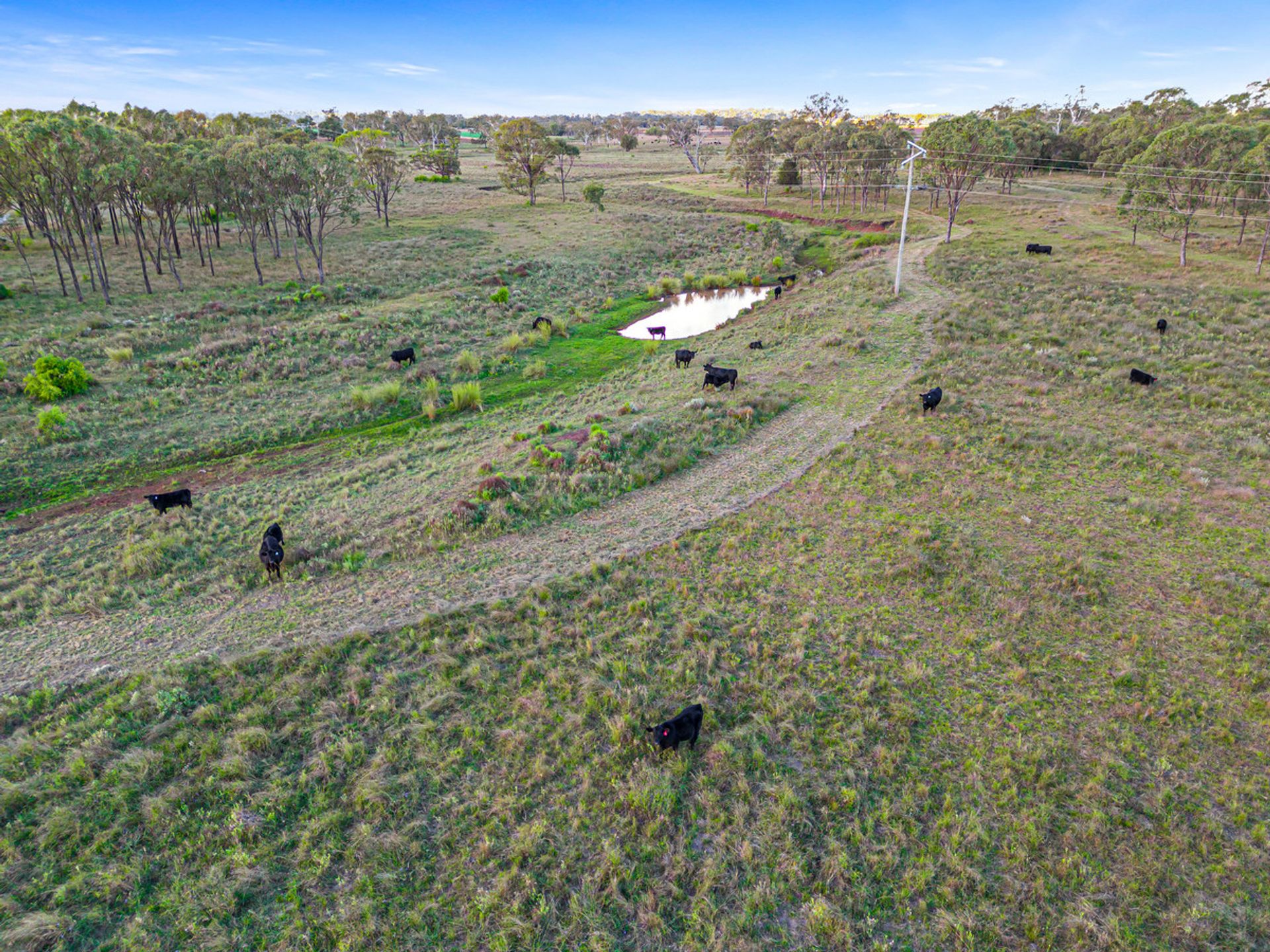 Country - The country ranges from open grazing country with improved pastures through to some timbered country in parts consisting of scrub soils. Improved pastures are in large stands throughout the property and tree types range from Brigalow, Belah and Red Gum.