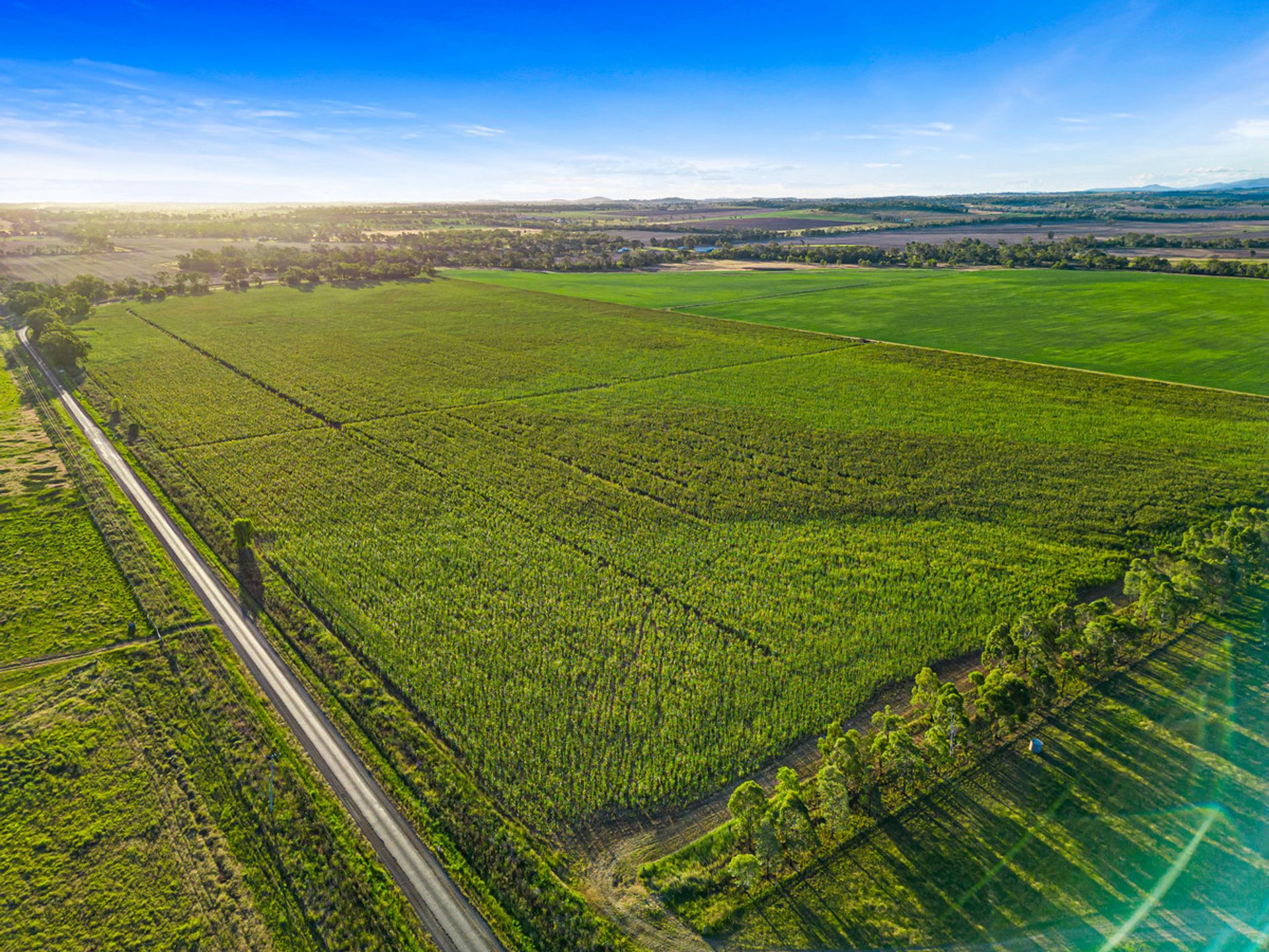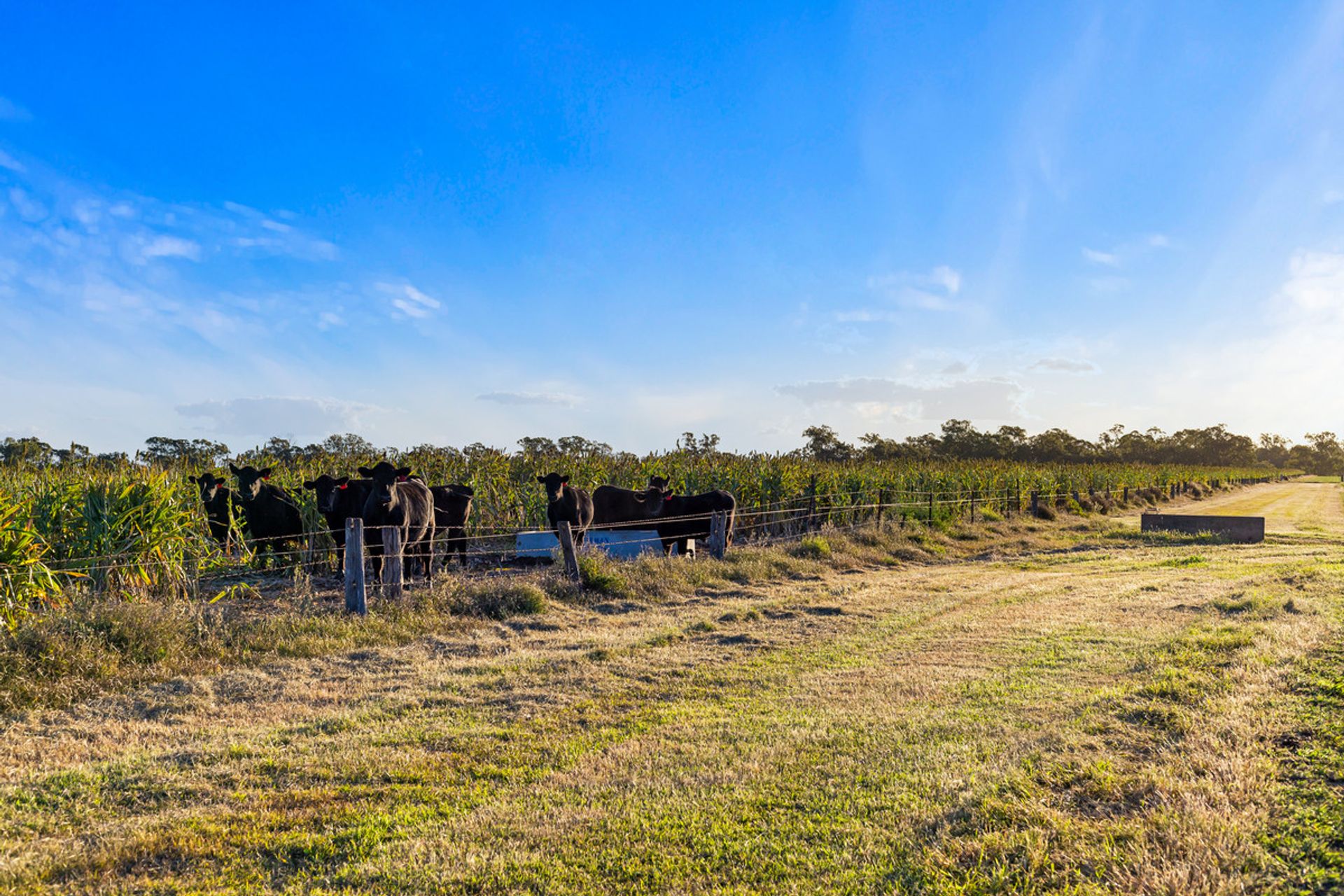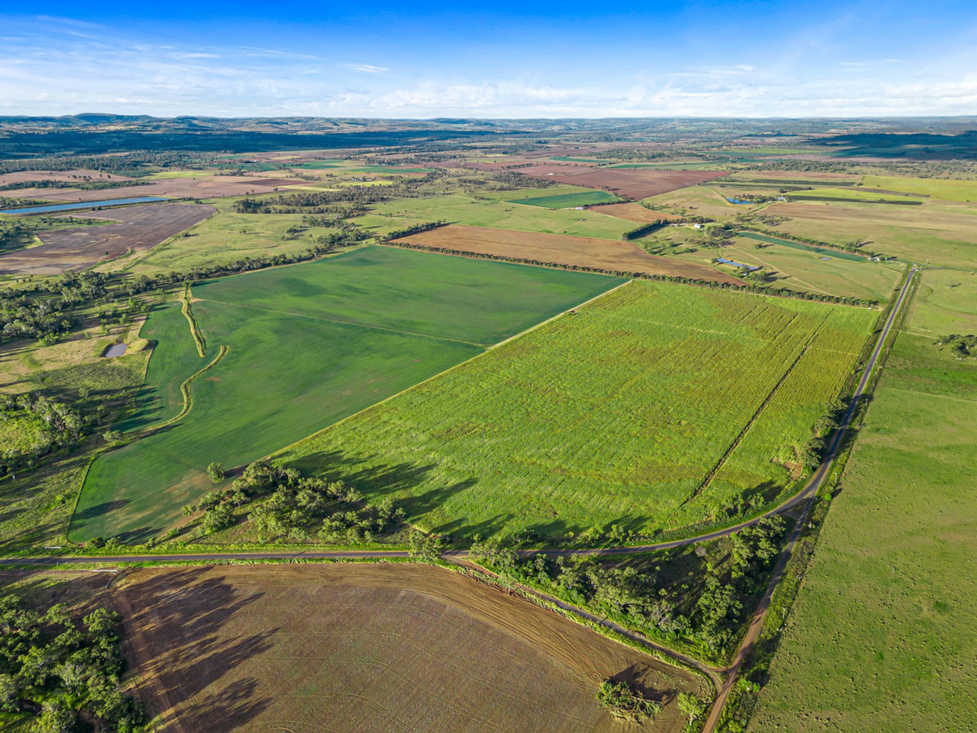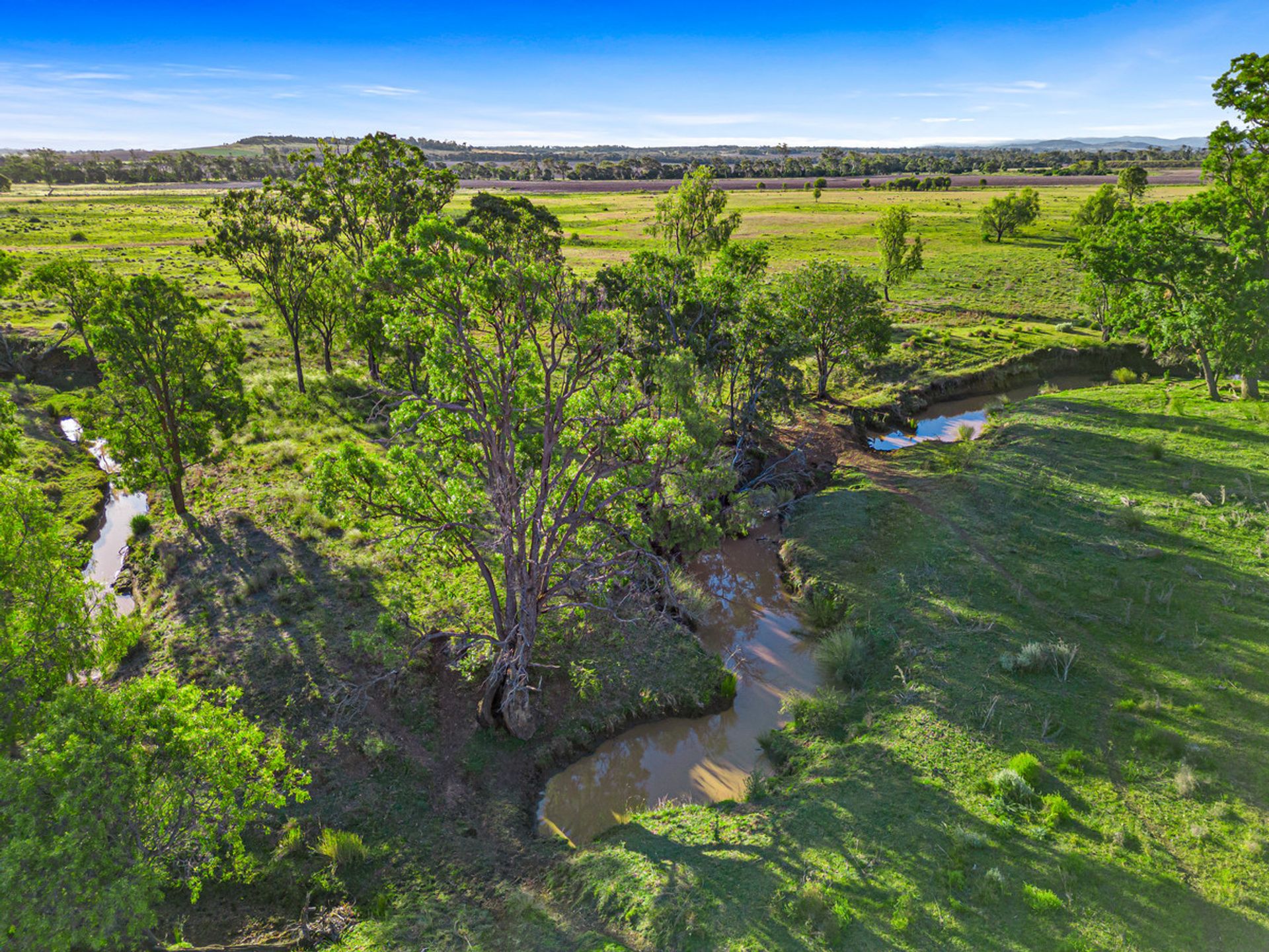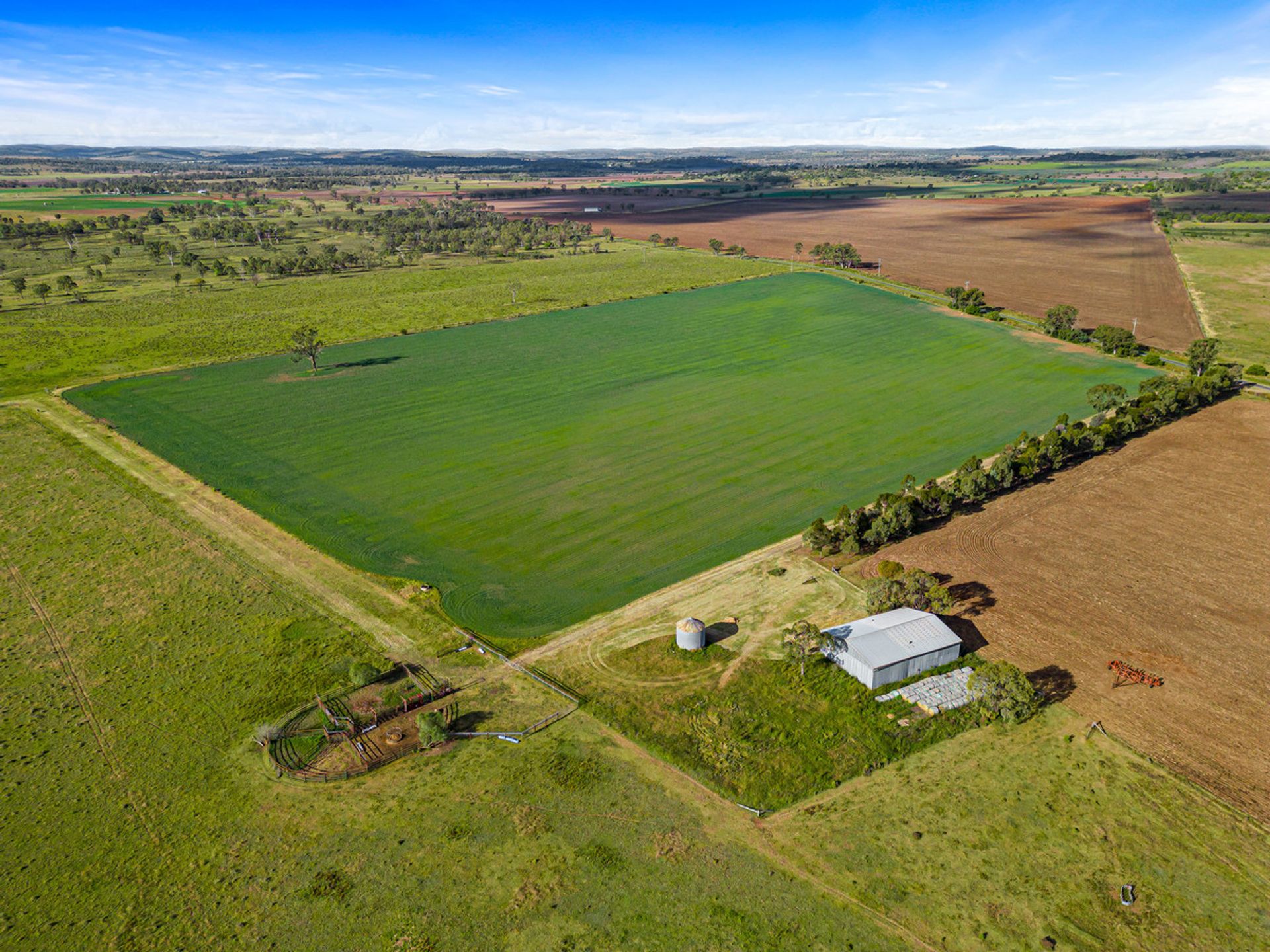 Country - The country ranges from open grazing country with improved pastures through to some timbered country in parts consisting of scrub soils. Improved pastures are in large stands throughout the property and tree types range from Brigalow, Belah and Red Gum.