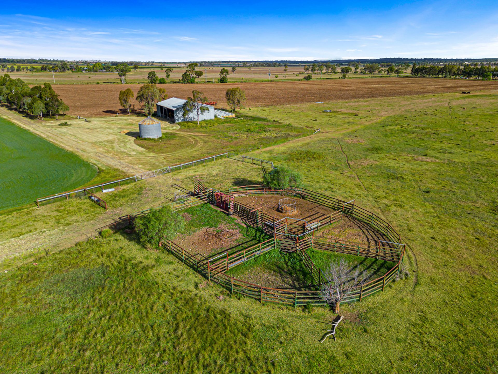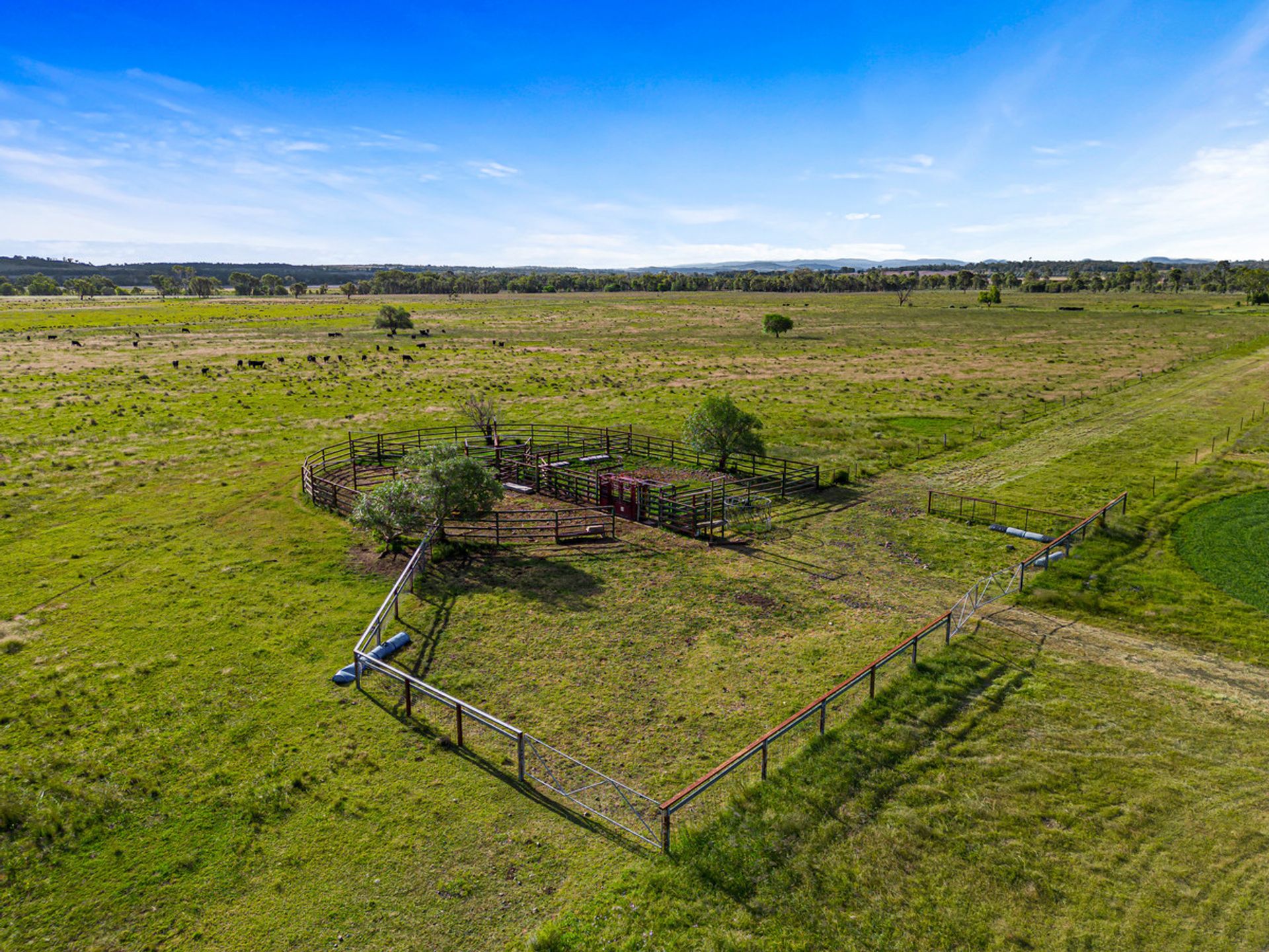 Yards – Incorporated with a trough, the cattle yards are steel posts and cattle rail RPM vet crush with hydraulic squeeze + headlock, loading ramp and head bail.