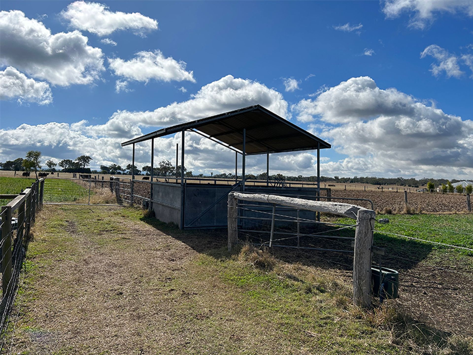 Flood-lit timber cattle yards, cattle vet crush, loading ramp, and separate covered in horse crush The quality black soil, areas on the property can be farmed to grow various crops. E.g. Oats, lucern, and forage Sorgam. which can be serviced by reticulated irrigation from a stock / domestic bore that has the capacity to pump approx 800gals an hour.