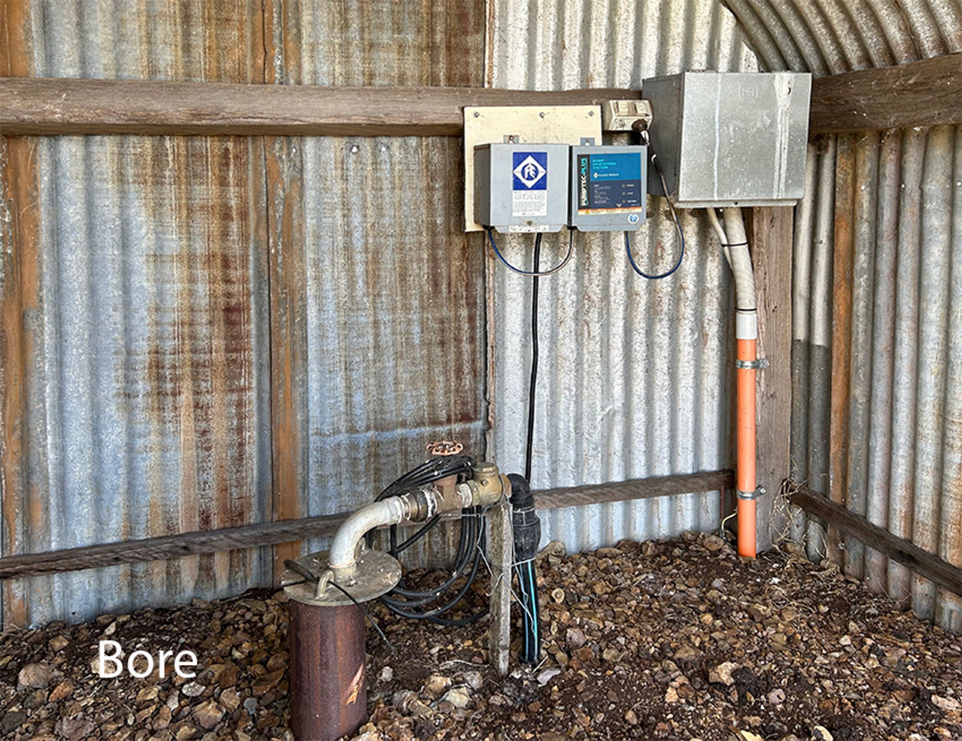Water is supplied from the bore to the small citrus orchard, vegetable garden, and troughs in the separate paddocks.