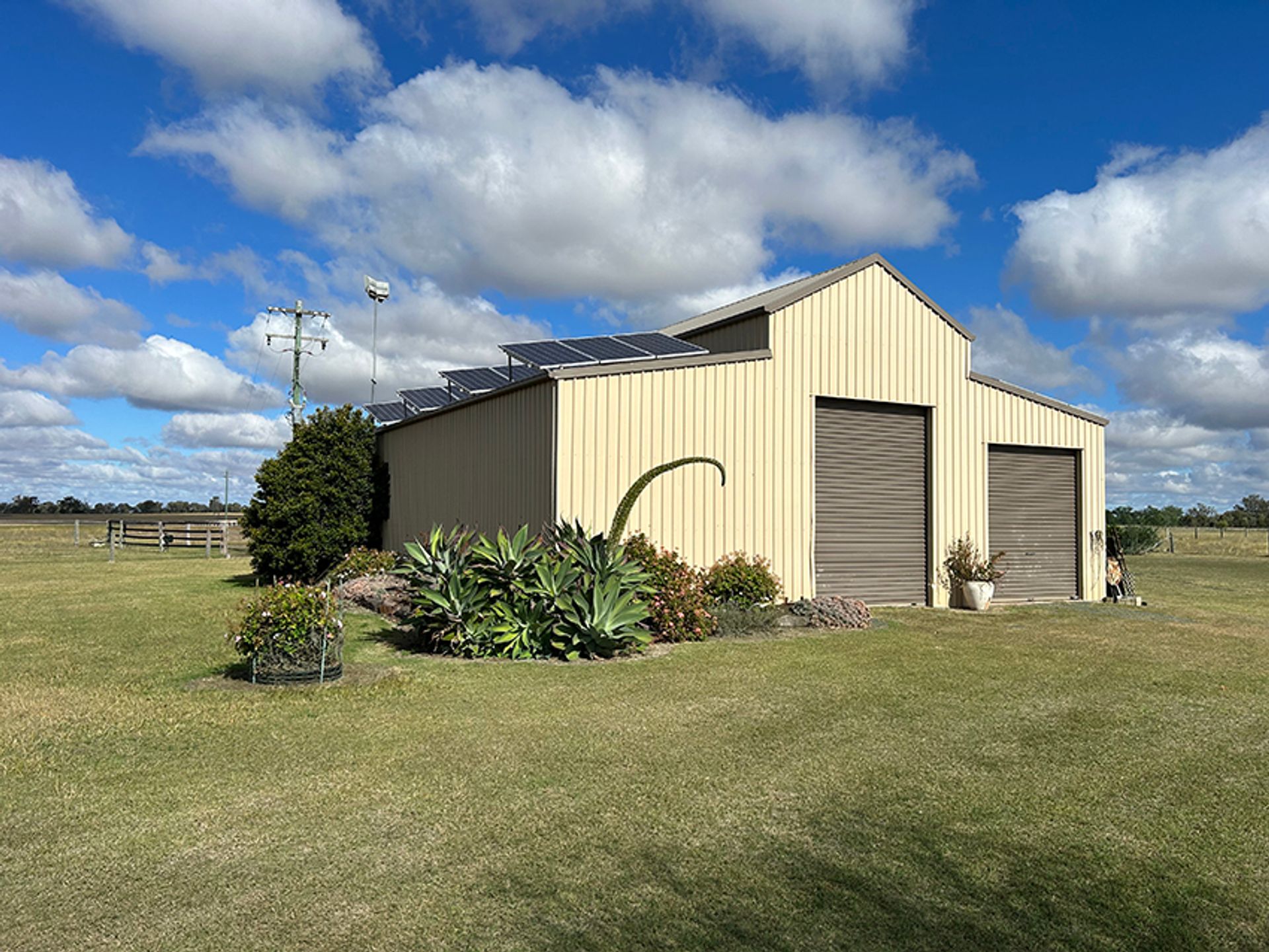 Save on power bills with a 5.5 KW solar system( 24 panels) located on the machinery shed roof.