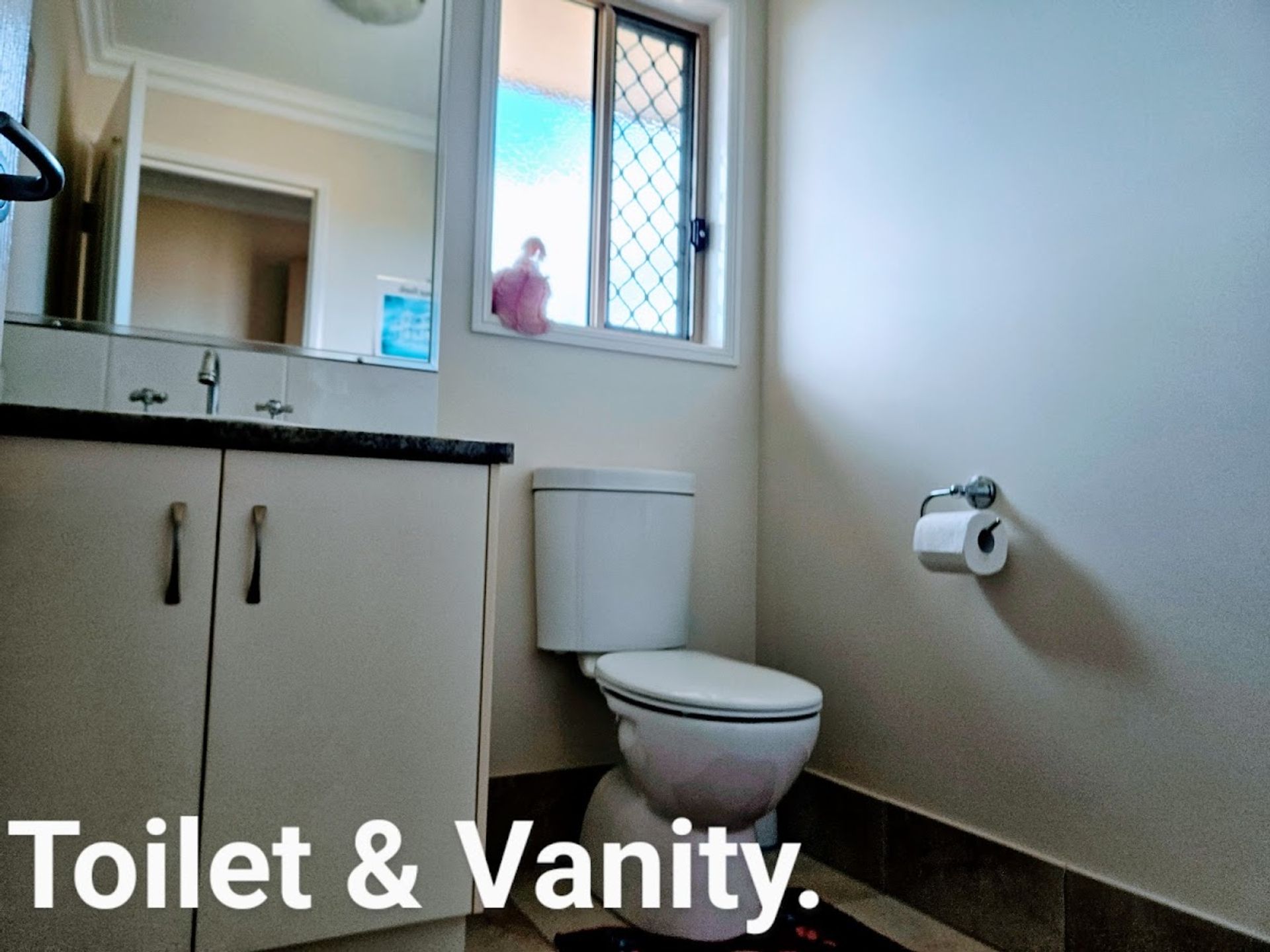 * Second separate toilet with a vanity.