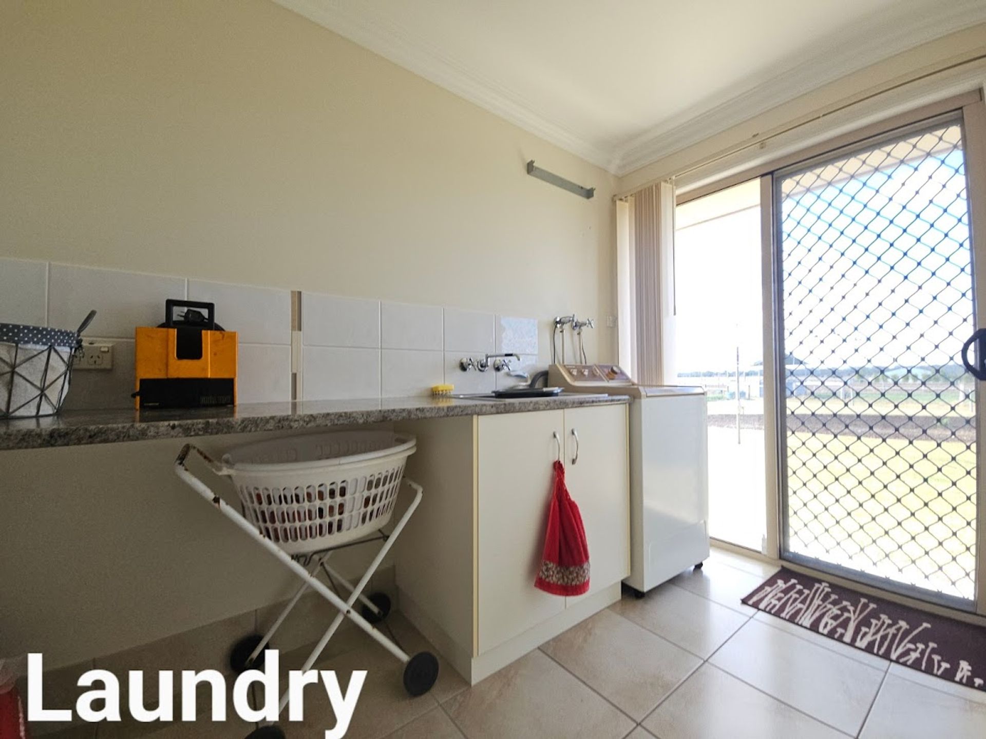 * Modern tiled laundry.