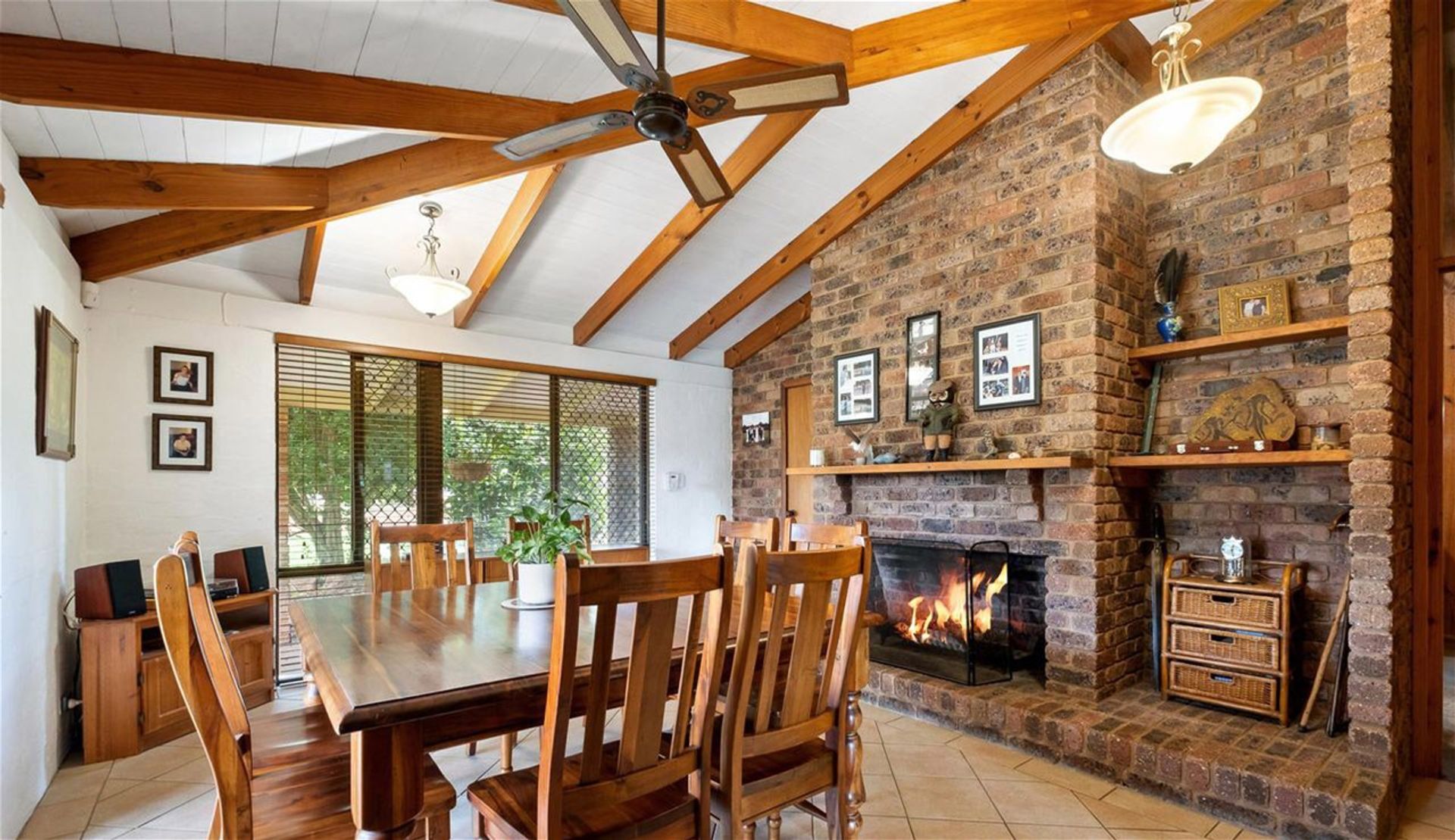 • Separate dining room with large open fireplace.
