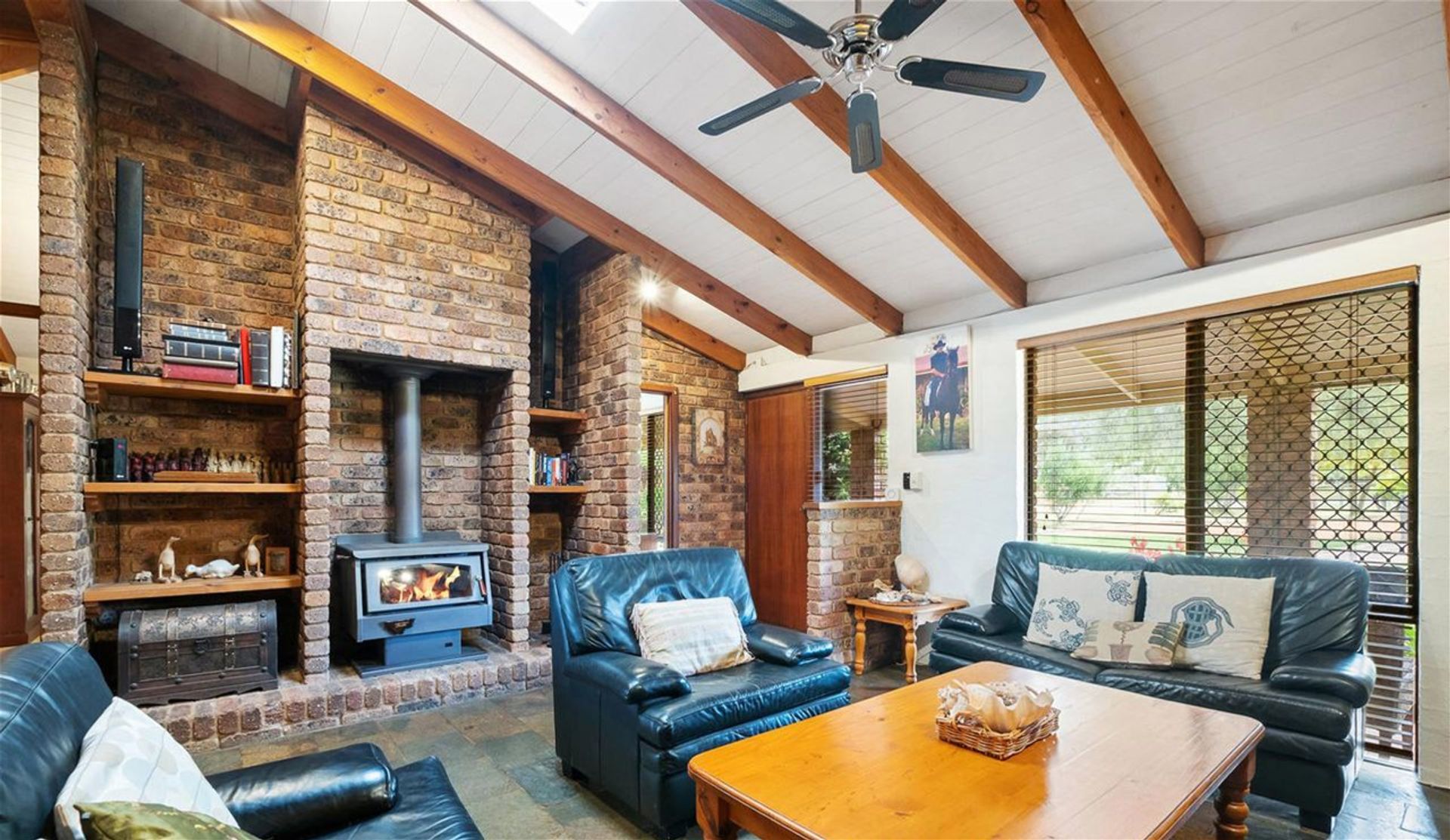 The rustic charm of this lovely homestead is enhanced by the high-raked ceilings, natural timber and beautiful slate floors. The living areas offer comfortable living with warming fireplaces and there is the option of extending further should you require. The generous accommodation of four large bedrooms all enjoying views over the magnificent landholding. A functional gabled outdoor entertaining area with outdoor kitchen is spacious enough for large family gatherings and overlooks the wonderful below-ground pool.