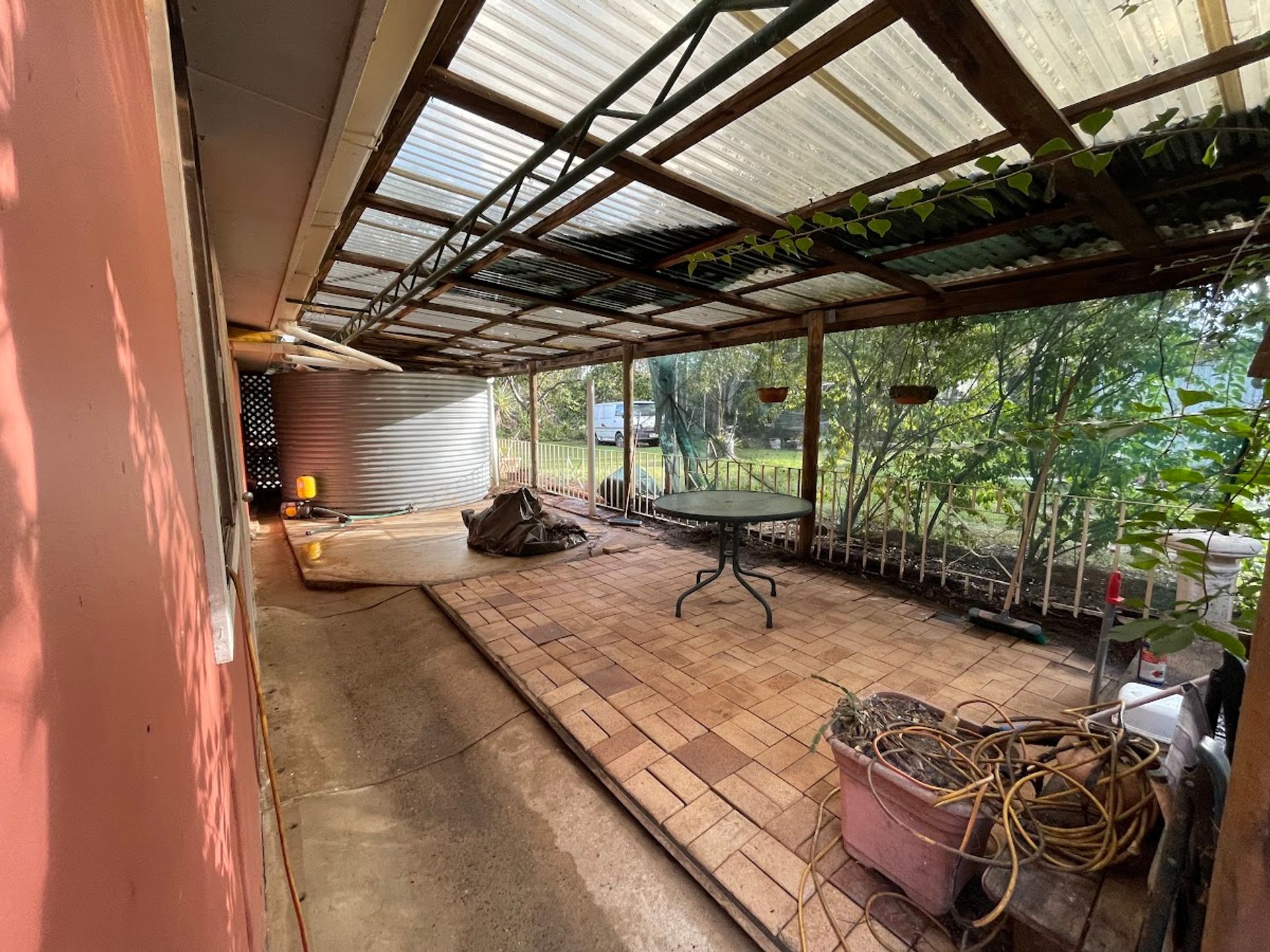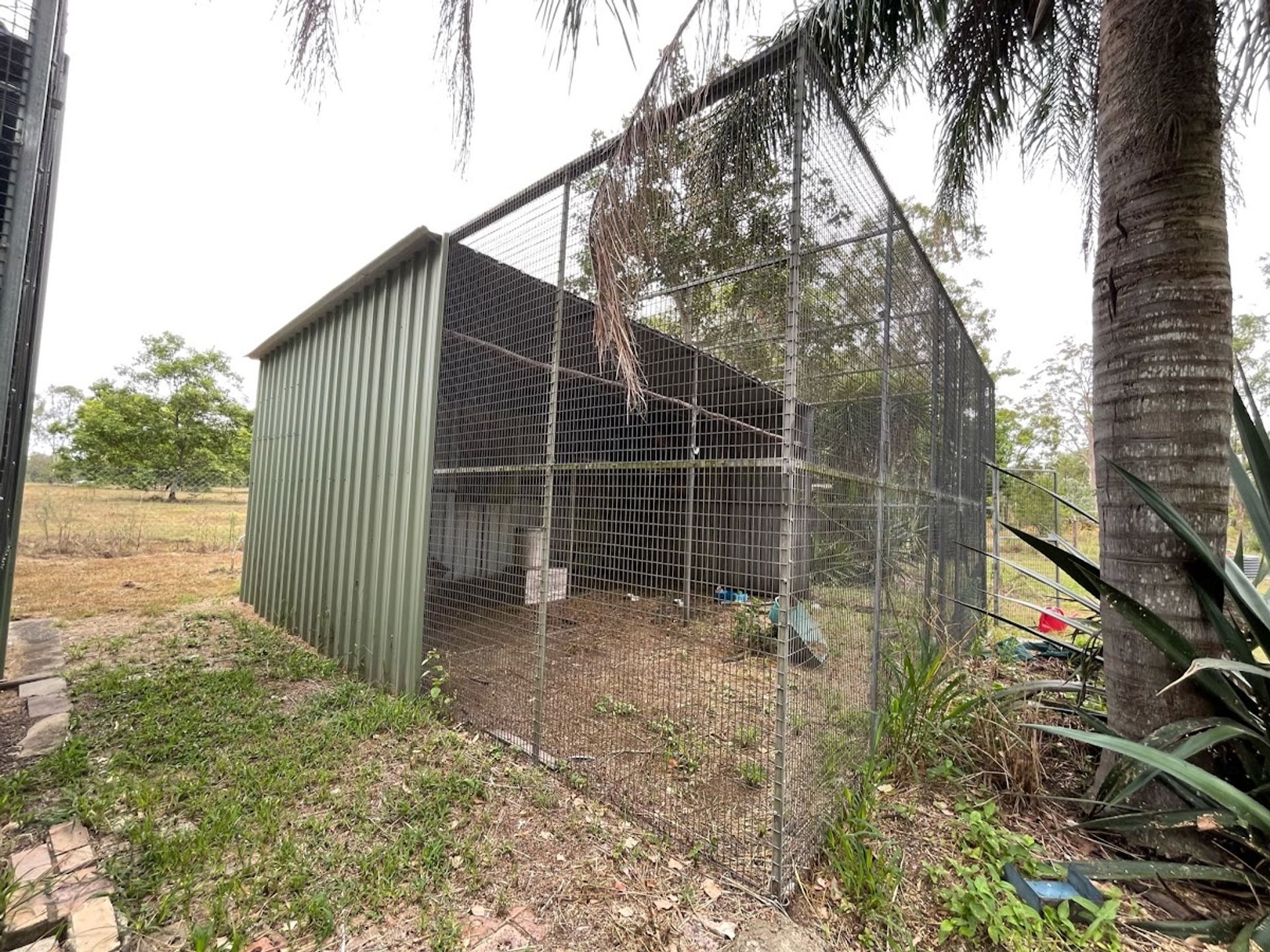 There’s an undercover front and rear balcony that turns into a private courtyard, around the pens is a fully fenced yard, so you’ll never have to worry about keeping animals safe. And if you’re looking for a little extra storage, there are two older lawn locker sheds on the property.
