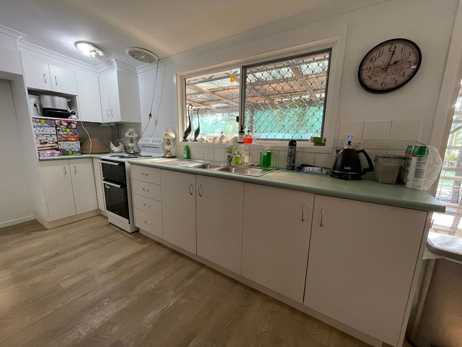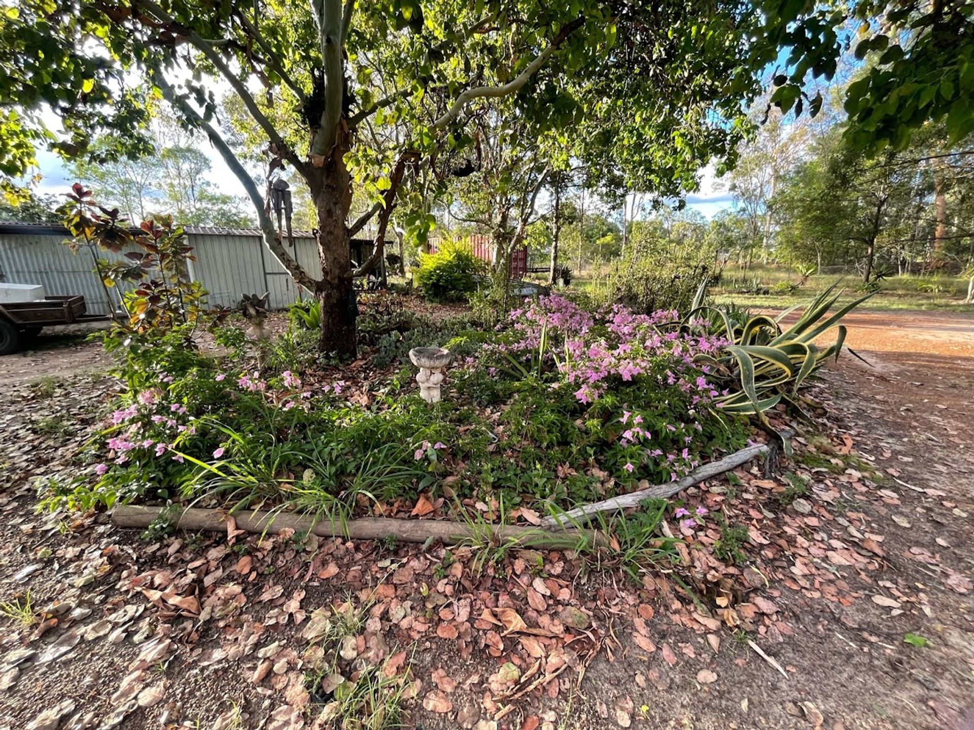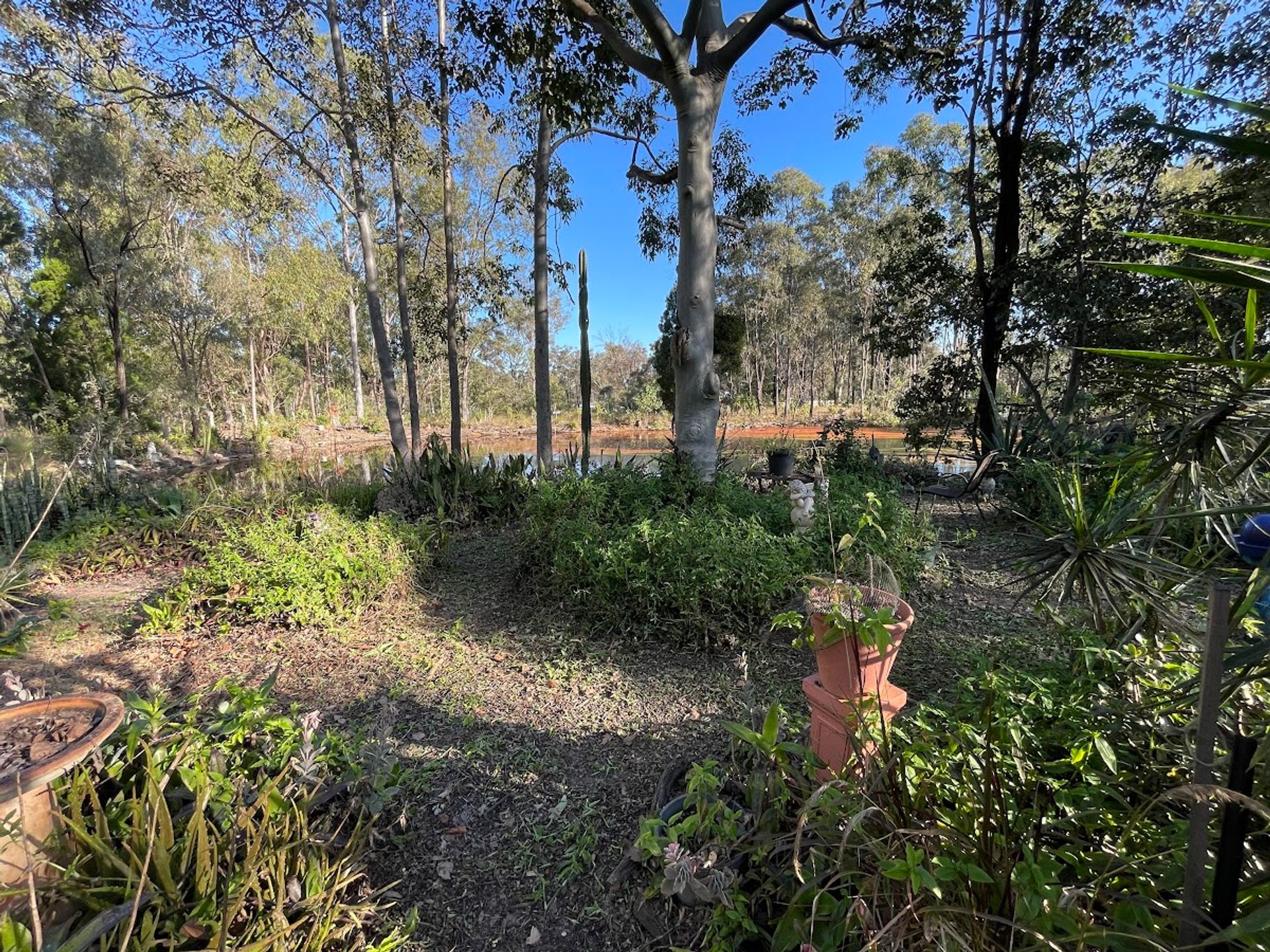 This solid lowset home has once been a place of tranquility and birdsong, unfortunately aged owners have had to let the gardens go, I can see snippets of amazing beauty with garden art, fish ponds and a large dam .