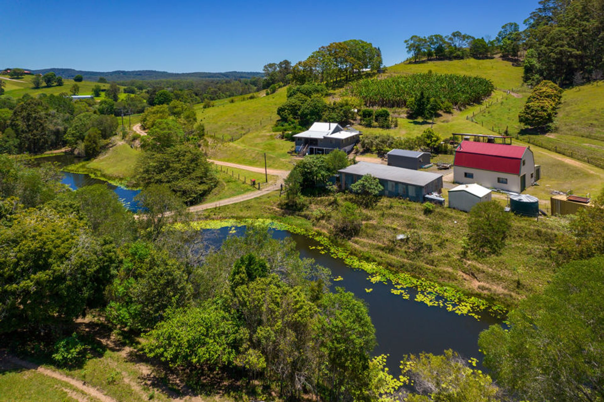 Some of the original Banana plantations still dot the landscape in this secluded pocket at the end of a quiet country road. With the irrigation hydrants still in situ, the option is open to re-invigorate the small crops for which this area is renowned. With an abundance of water from the six deep dams (some spring fed), all with good catchments, gardening or growing cattle feed has never been more reliable. Good stands of timber adorn the hillsides with plenty of Gympie Messmate, Spotted Gum poles and Ironbark predominating.