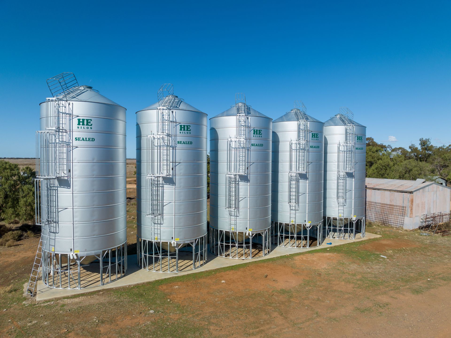 • Five new HE Sealed 100-ton cone bottom silos for grain storage.