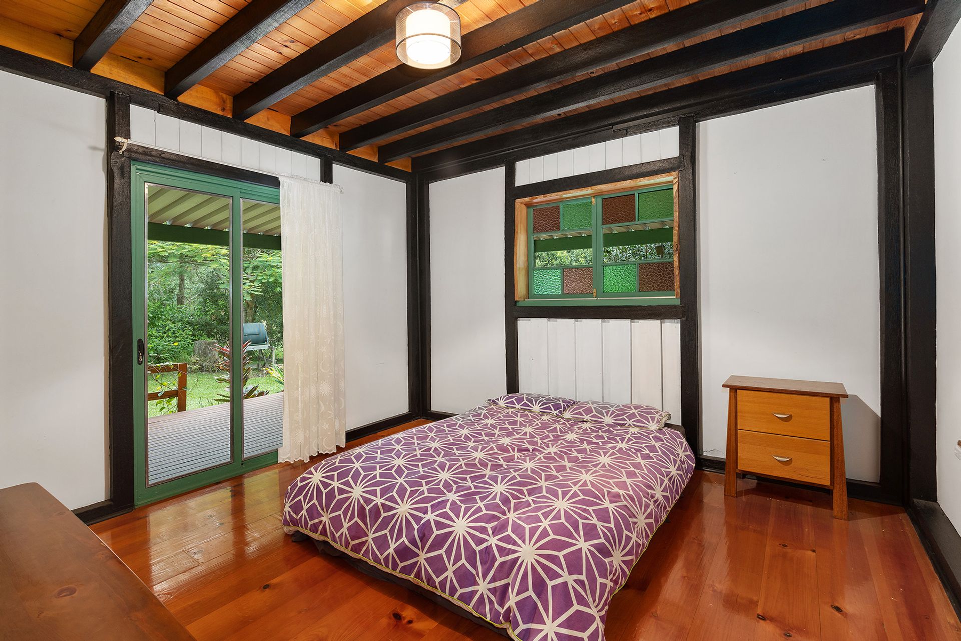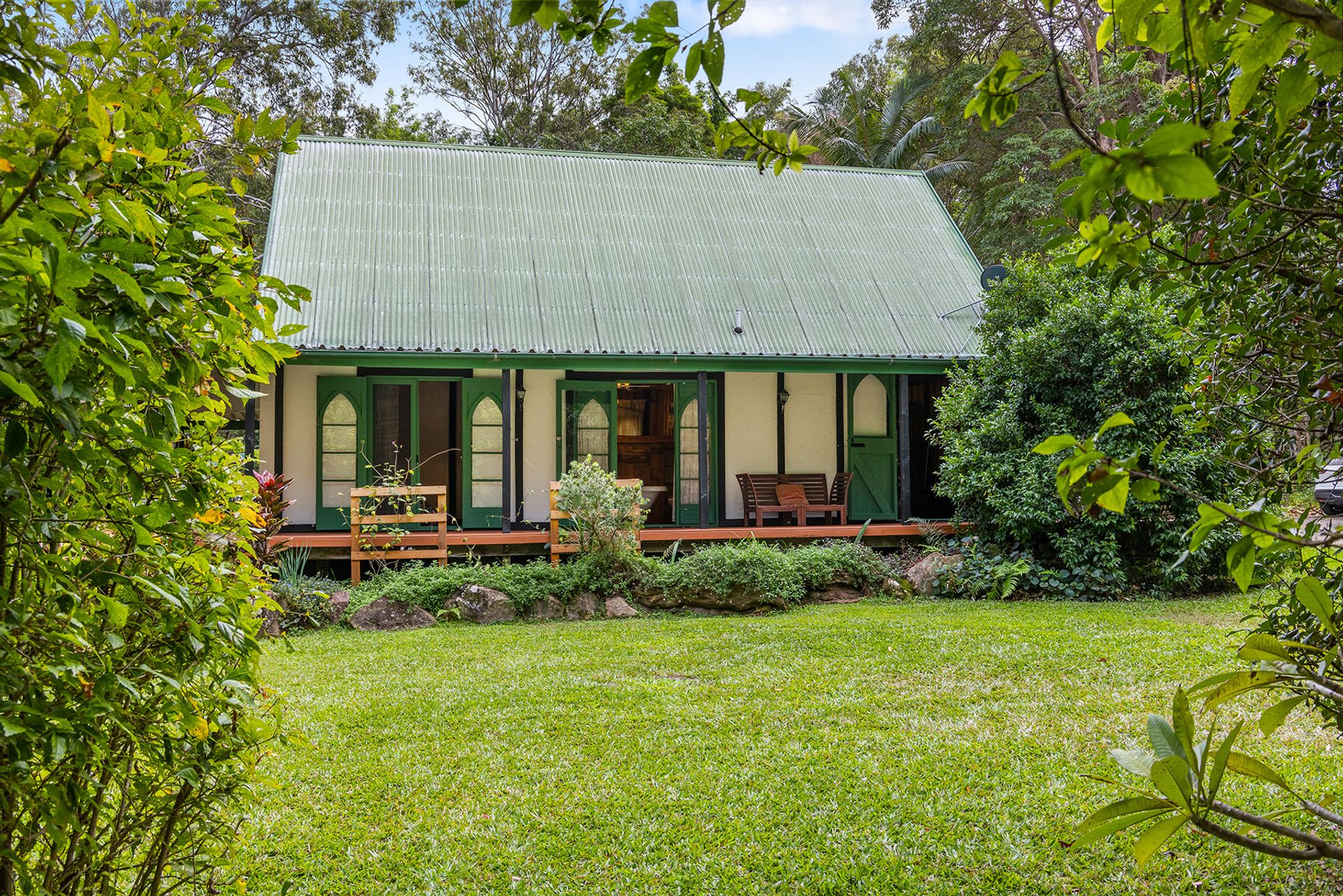 Reached by a tree lined drive to the rear of the block, the cottage boasts traditional characteristics such as timber floors, high raked ceilings, stained-glass casement windows, and French doors leading onto an elevated, wraparound deck. And you won't have to forgo modern comforts either, with contemporary features including reverse cycle air-conditioning and solar hot water.