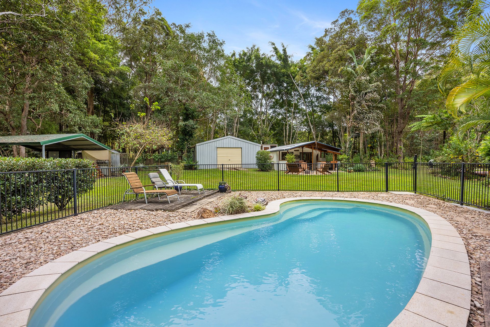 Additional infrastructure includes a 9m x 12m shed and a large carport for your caravan, boat, RV or extra vehicles. If you're looking to live more sustainably, you'll appreciate the vegetable gardens and variety of fruit trees, drinkable bore, approximately 10,000 gallons of filtered rainwater storage, and approximately 4kw of solar panels.