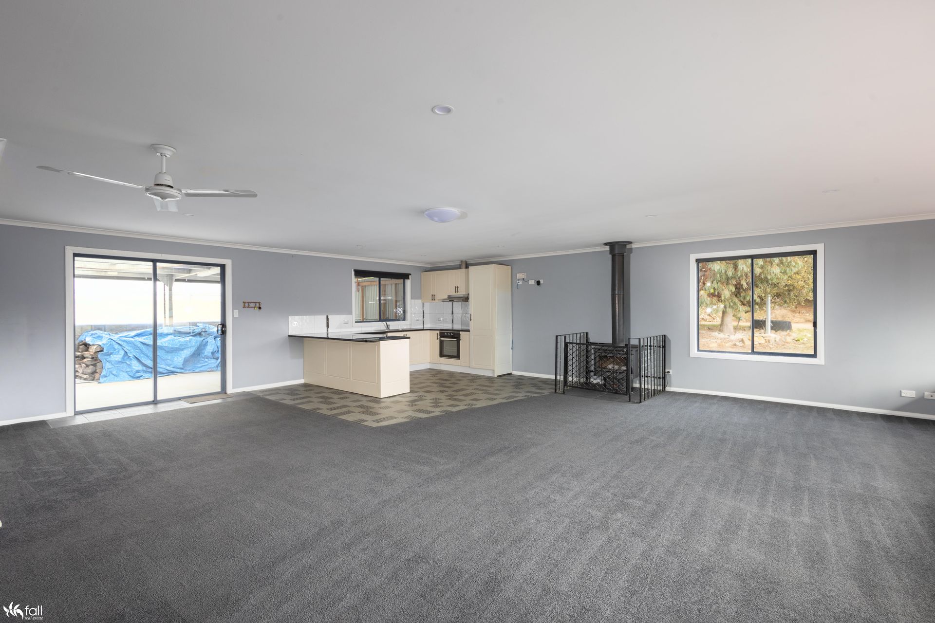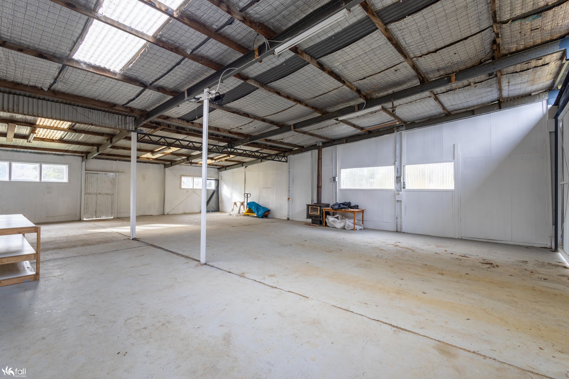 The shed measures just under 90sqm and is complete with a large open space, storage rooms, wood heater, kitchenette, and WC. The perfect man cave fit for a myriad of different uses or the perfect space for teenage children to enjoy.
