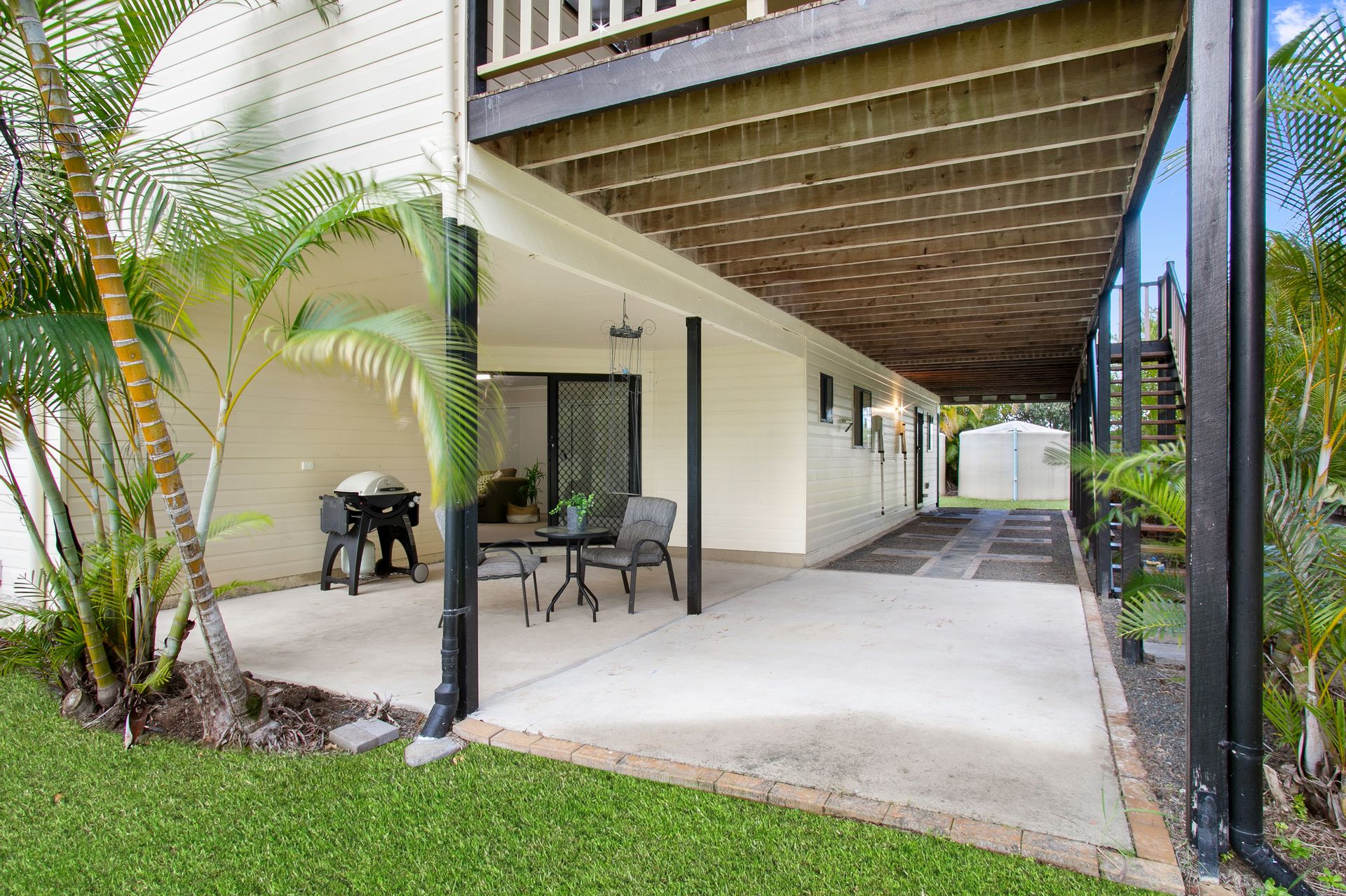• Charming highset family home on flat parklike 4895m2