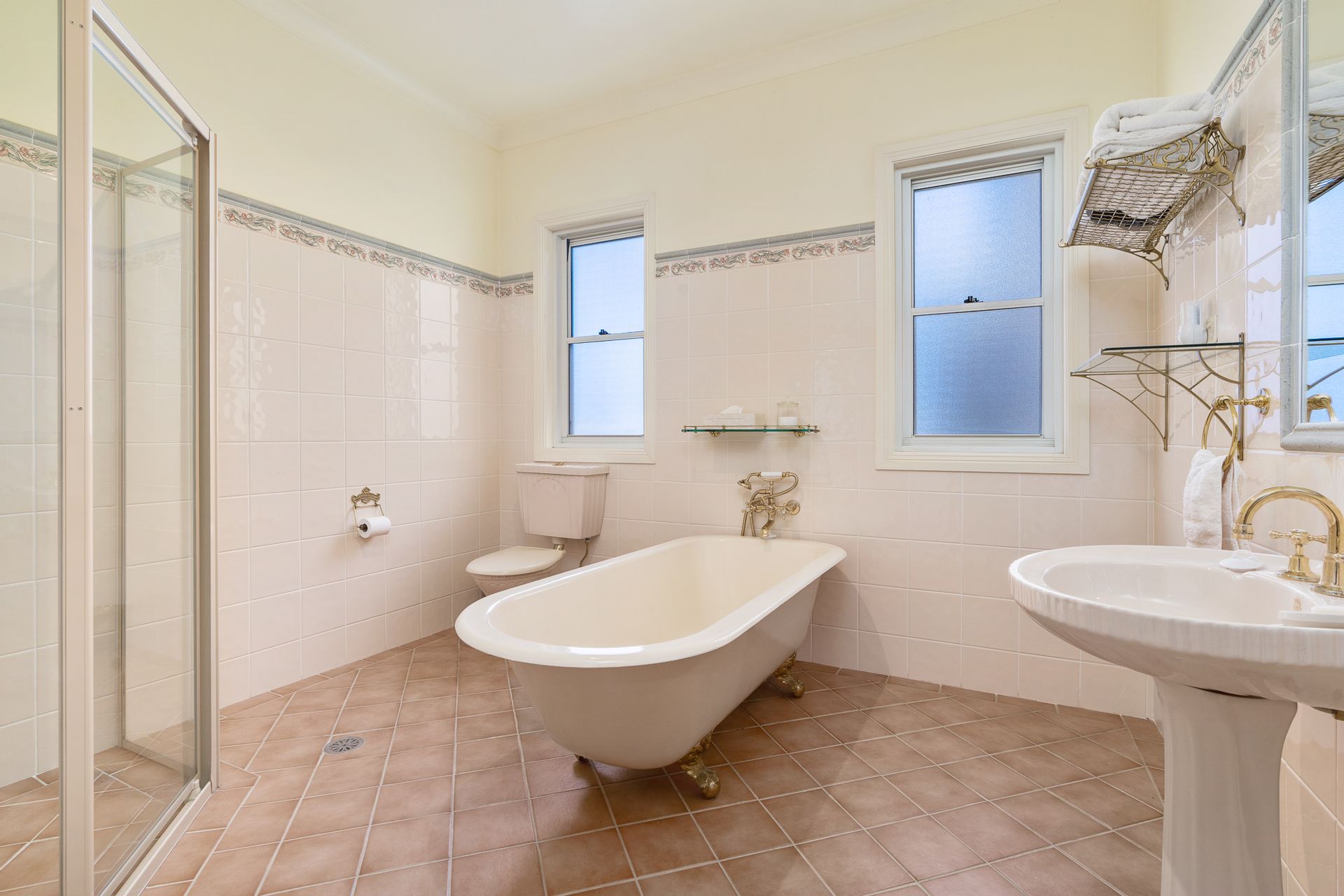 • The main bathroom has the added charm of a claw foot bath.