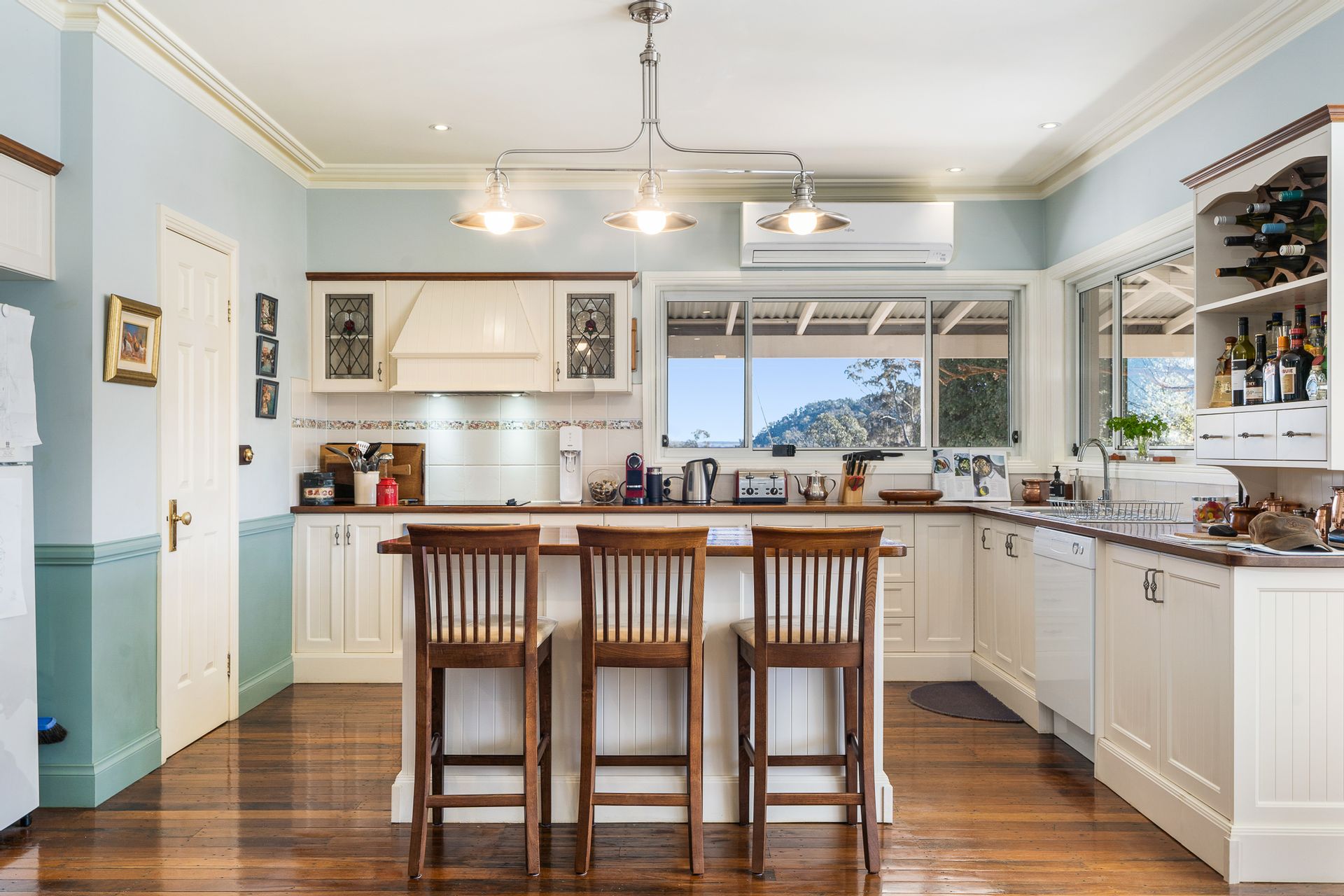 • The charming kitchen includes an island bench, walk in pantry, and all electric cooking.
