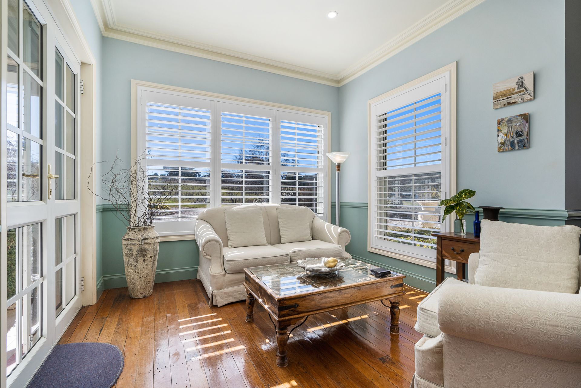 • The main bedroom has an ensuite bathroom, a walk-in robe, double glazing, and French doors which open to the sundrenched courtyard.