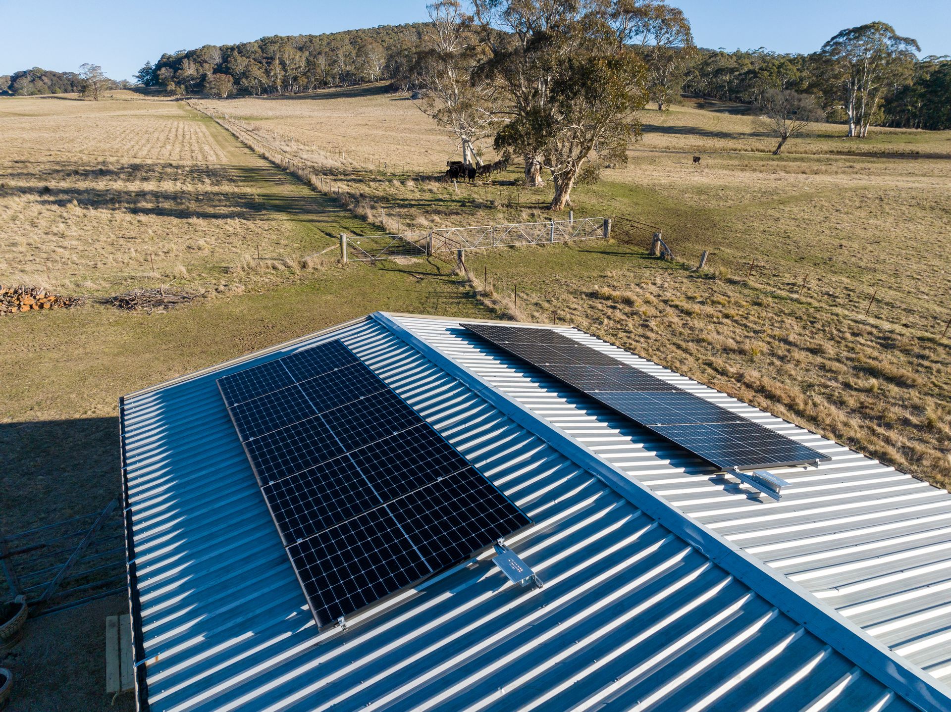 • A 3.9Kw* solar array plus 14.2kwh bank of Pylontech Lithium batteries covers electricity requirements for the shed.