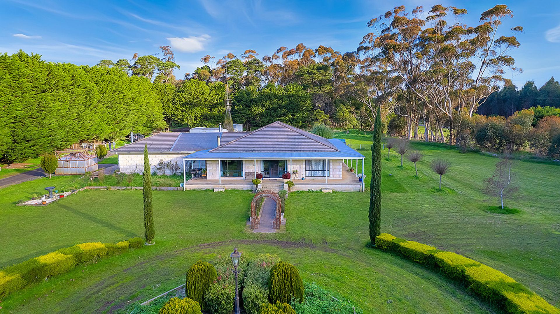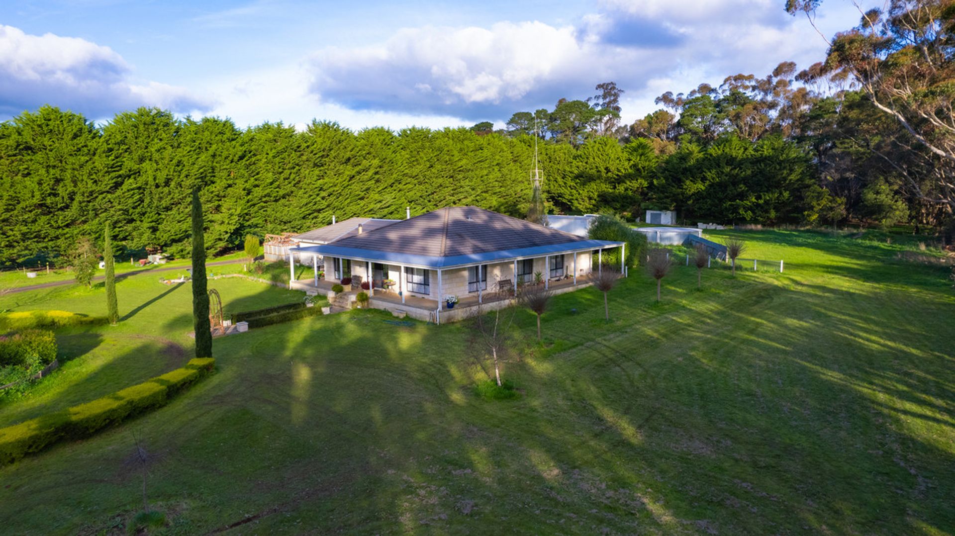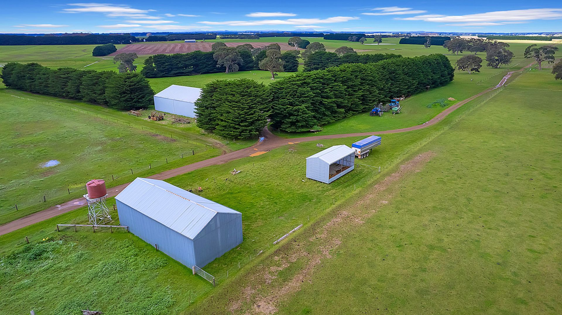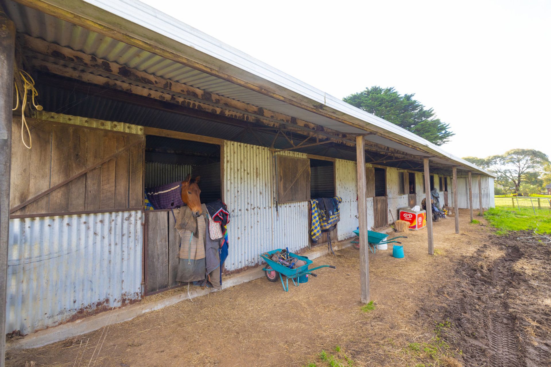 Improvements on 21 acres includes a 3-stand raised board shearing shed with timber yards, large 5-bay steel hayshed built in 2000, large machinery shed with workshop, steel open cattle yards, horse stables and numerous additional shedding.