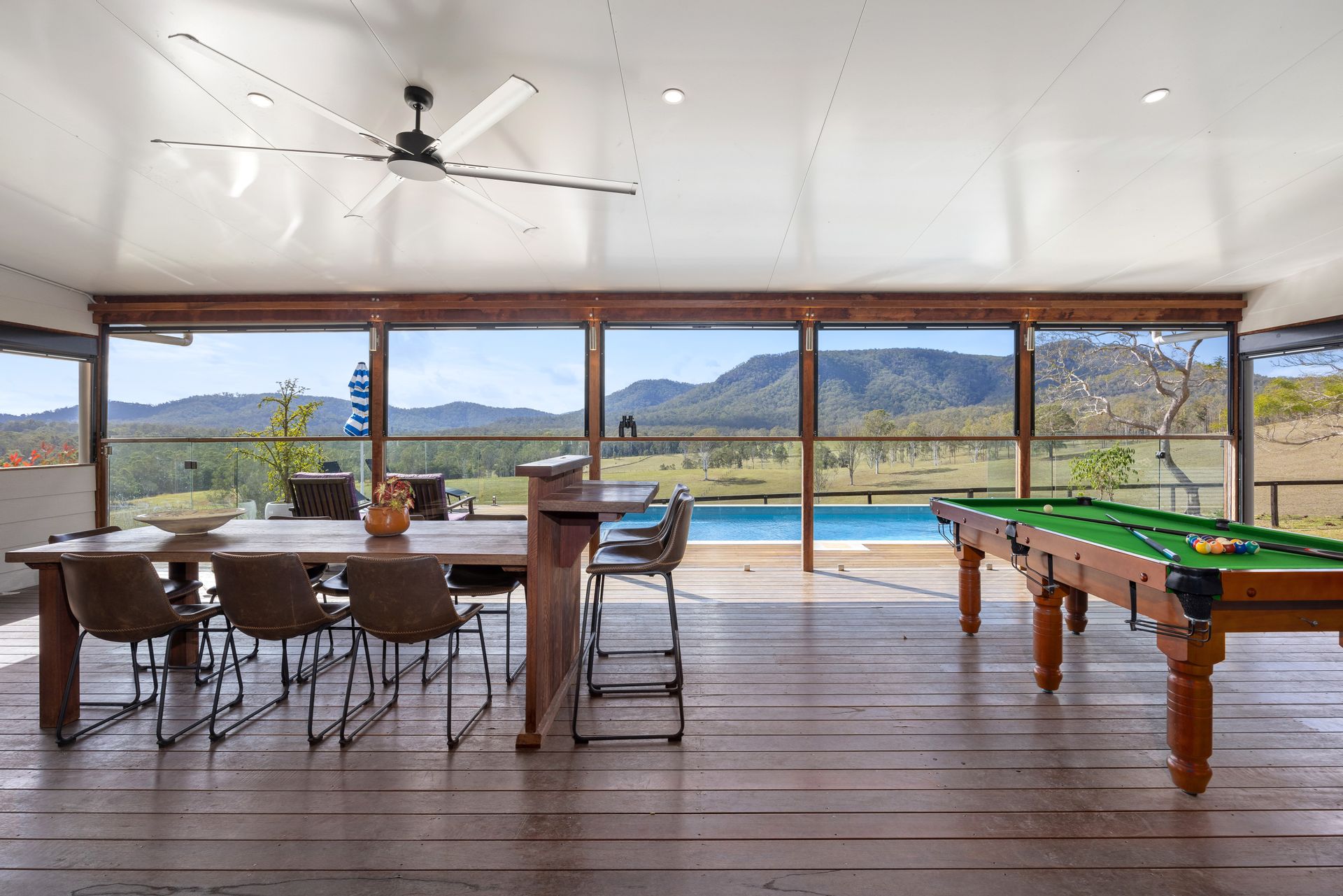 Relax by the pool and immerse yourself in the breathtaking mountain panoramas, enhanced by a large undercover veranda, creating the perfect setting for gatherings and memorable moments.