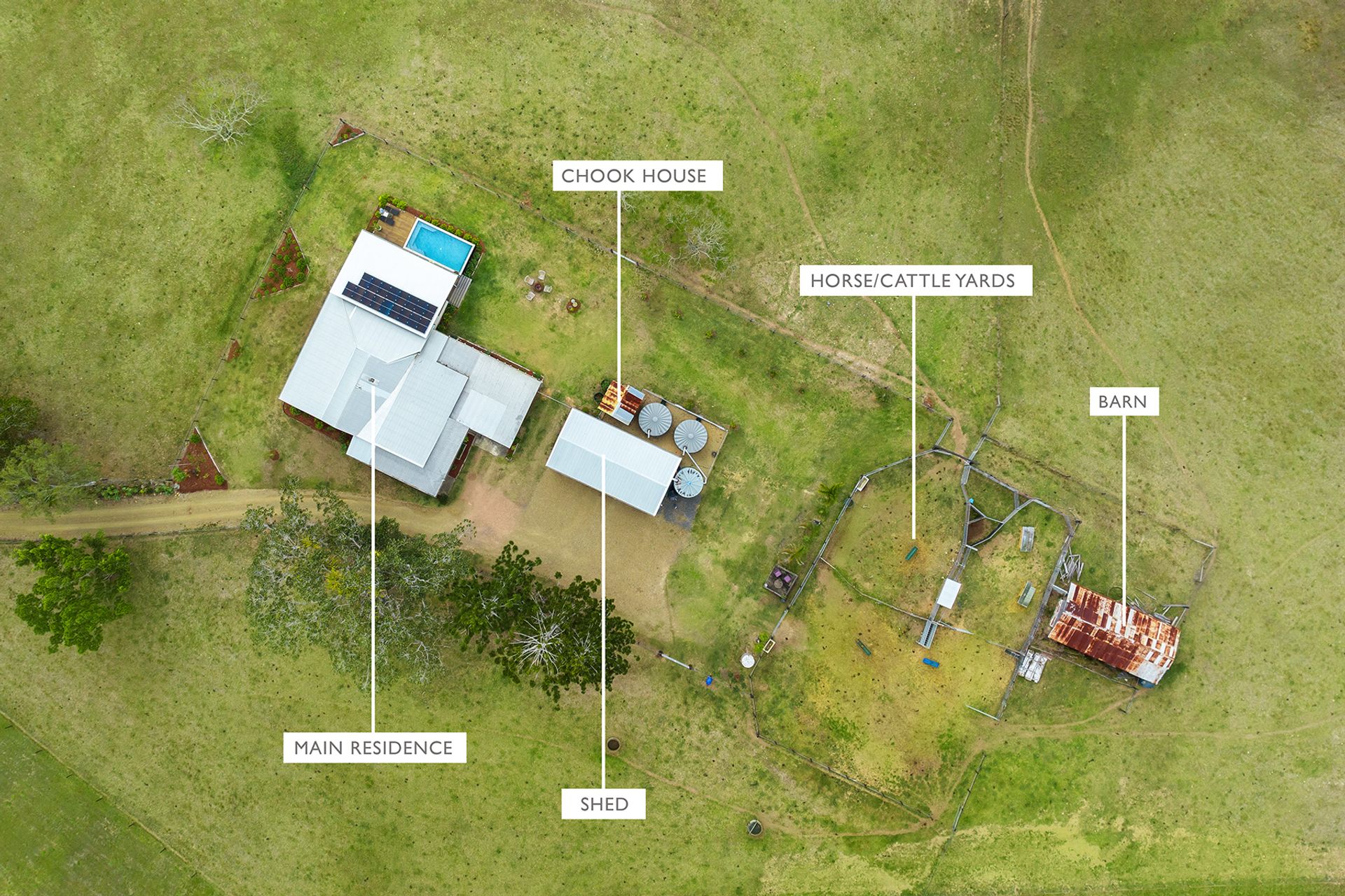 - Cattle yards, barn, and 4 fenced paddocks for livestock ( New fencing)