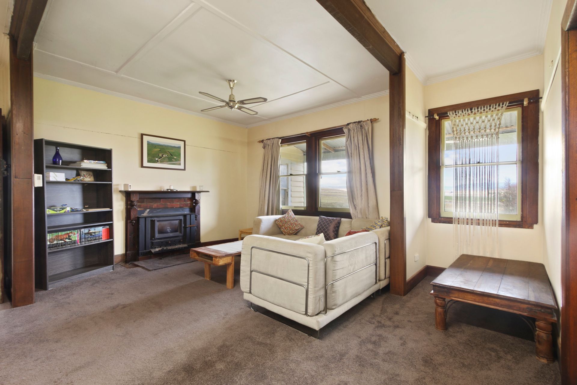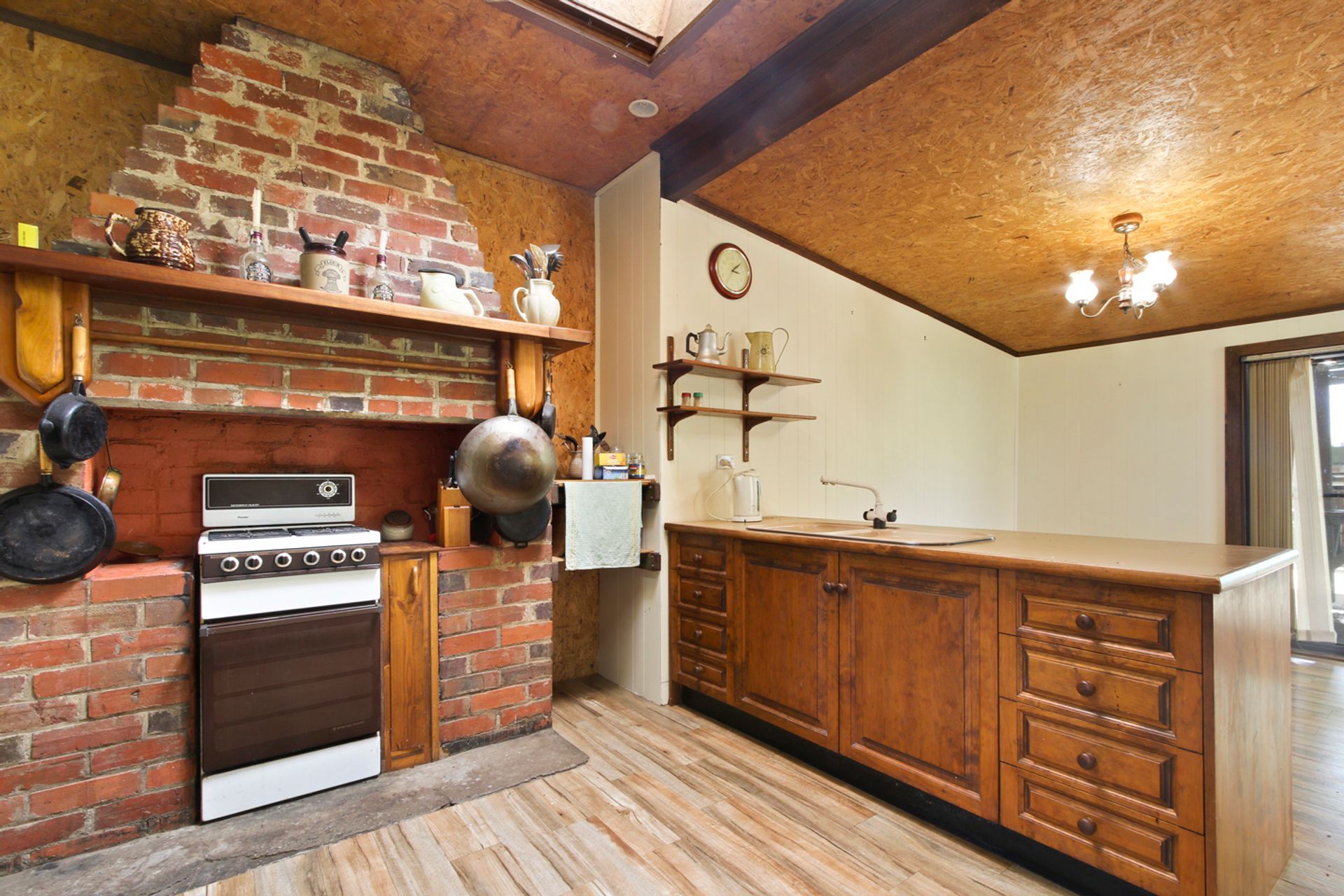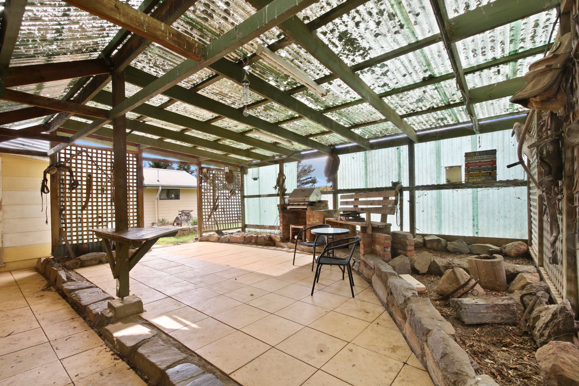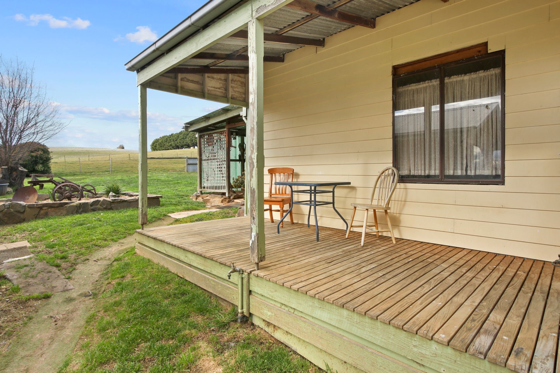 The home boasts three carpeted bedrooms and two generous lounge / living areas one with inbuilt wood heater and the other a large open fireplace. The kitchen is roomy with a gas oven and cooktop, with open dining and family room that leads out to the alfresco bbq area via a sliding door. The bathroom has a shower over the bath and there is a separate laundry, and the toilet is at the rear of the home. Outside the home is a self-contained unit with ensuite and kitchenette without a stove that provides the opportunity for rental income and/or for the extra family or a home office / studio.