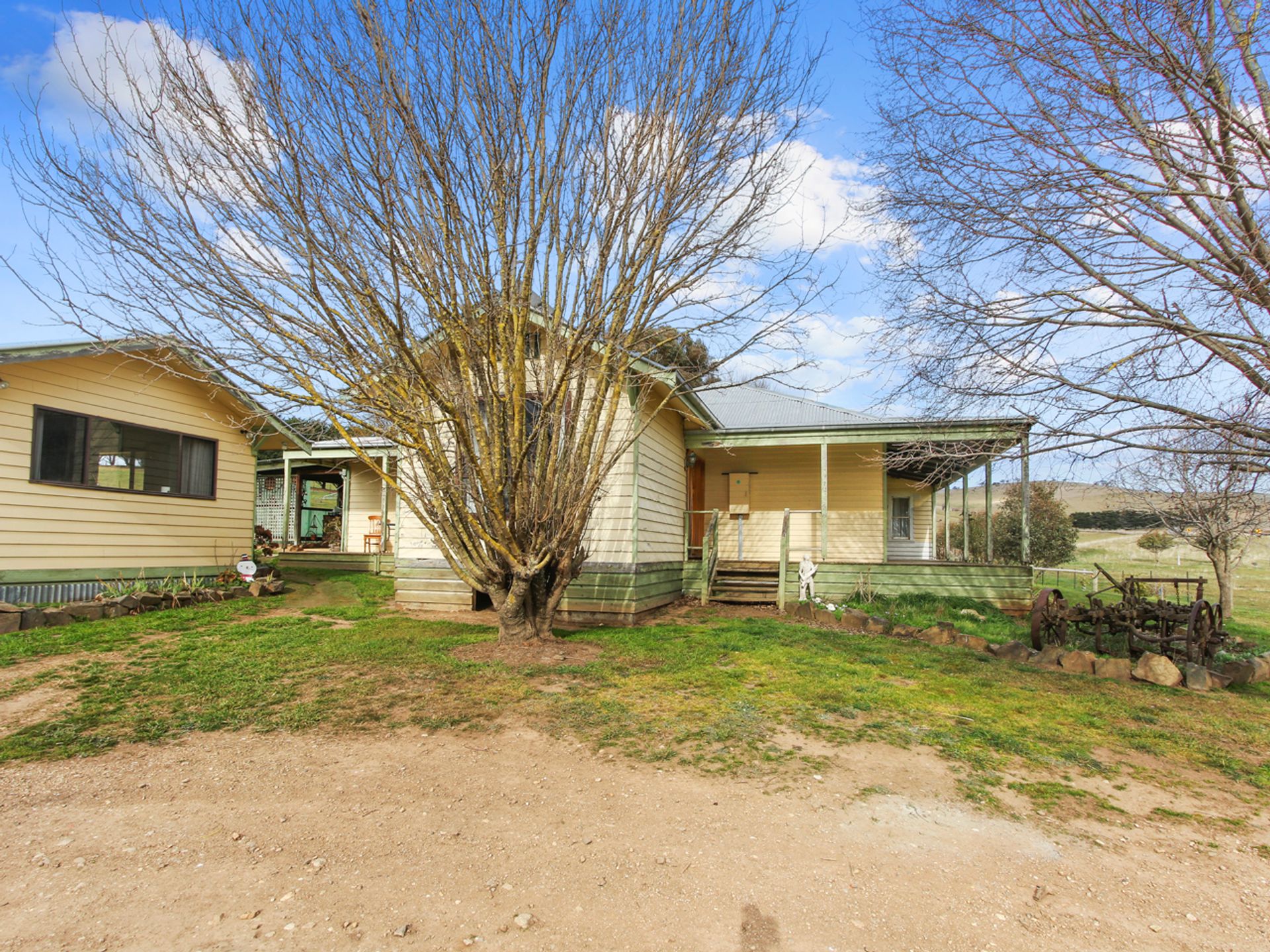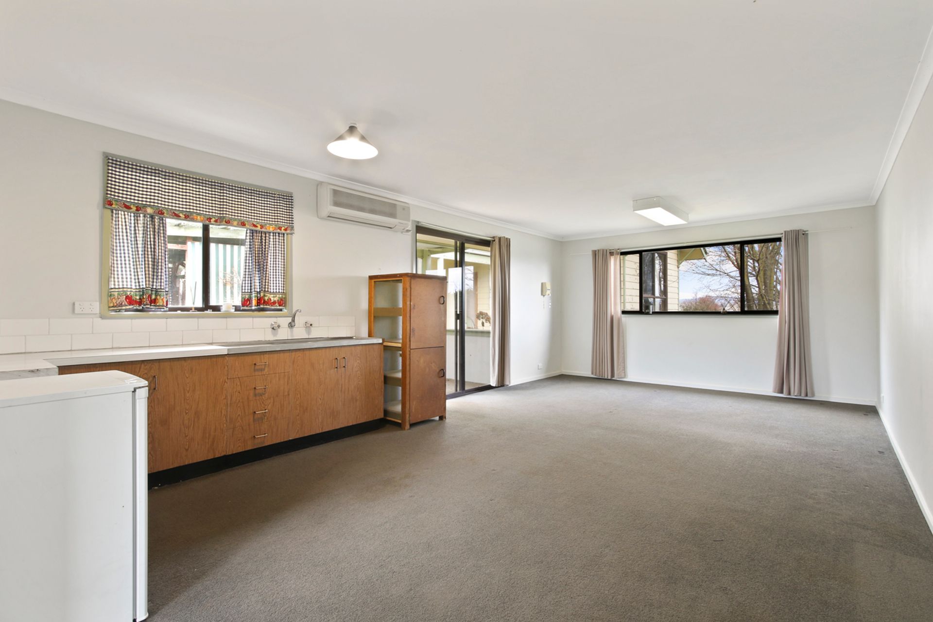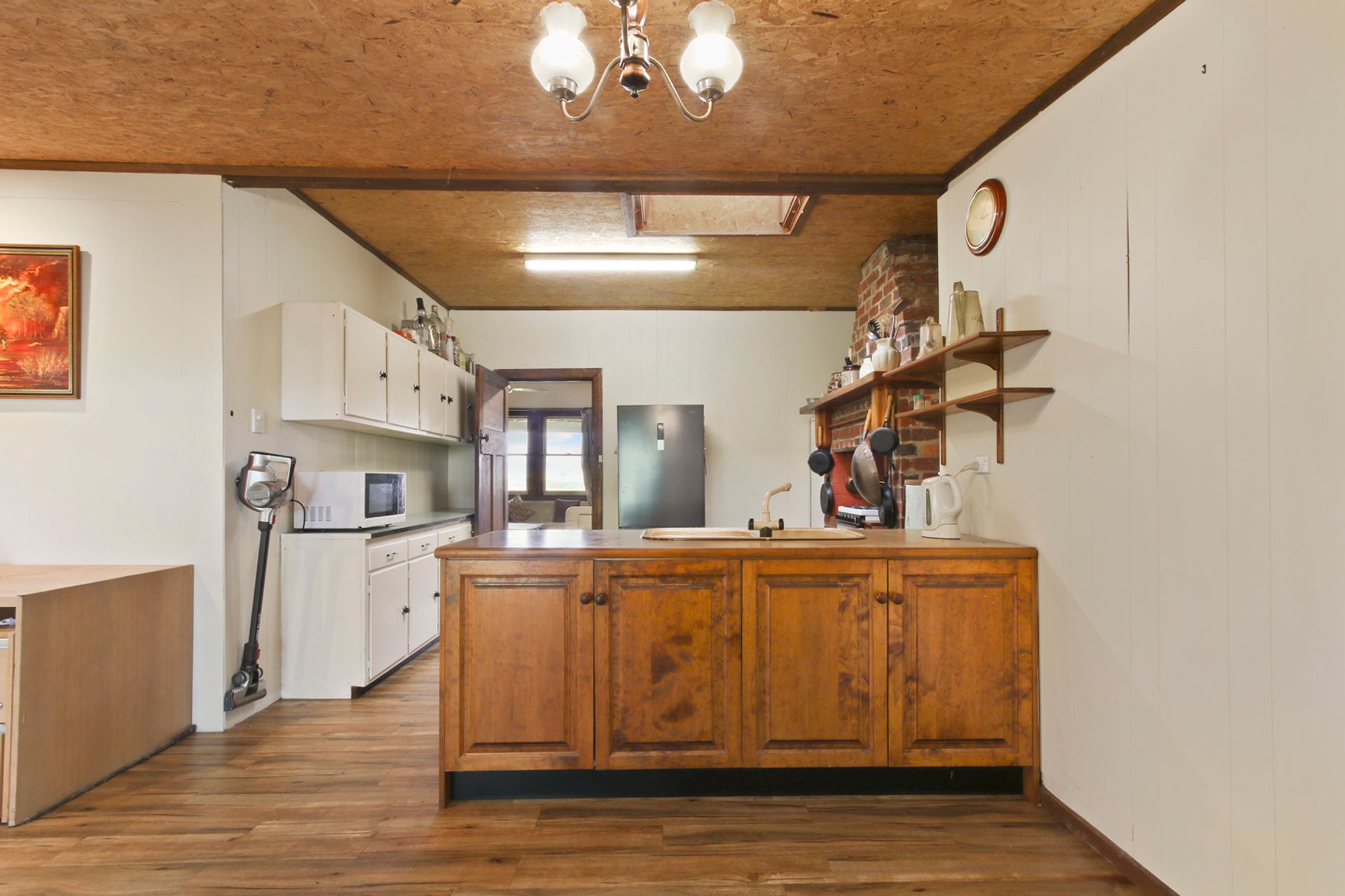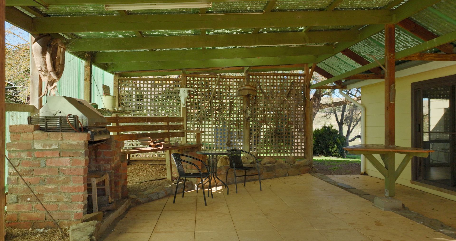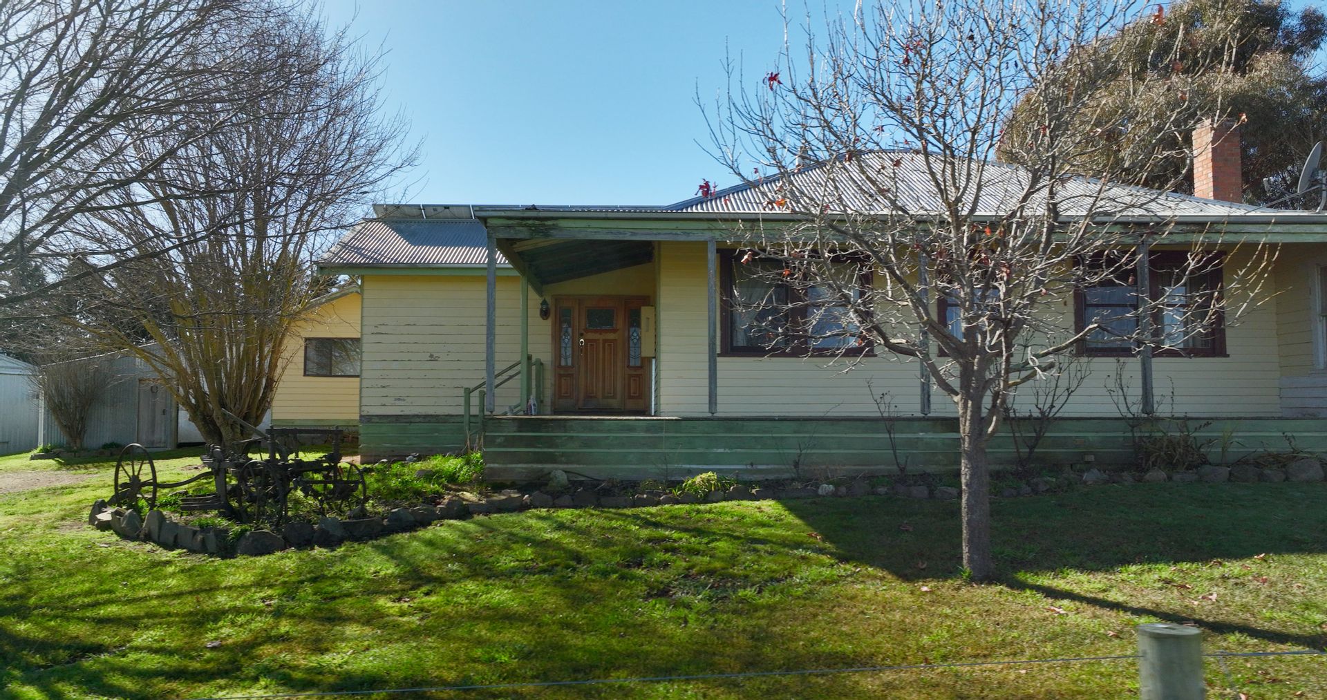 The home boasts three carpeted bedrooms and two generous lounge / living areas one with inbuilt wood heater and the other a large open fireplace. The kitchen is roomy with a gas oven and cooktop, with open dining and family room that leads out to the alfresco bbq area via a sliding door. The bathroom has a shower over the bath and there is a separate laundry, and the toilet is at the rear of the home. Outside the home is a self-contained unit with ensuite and kitchenette without a stove that provides the opportunity for rental income and/or for the extra family or a home office / studio.