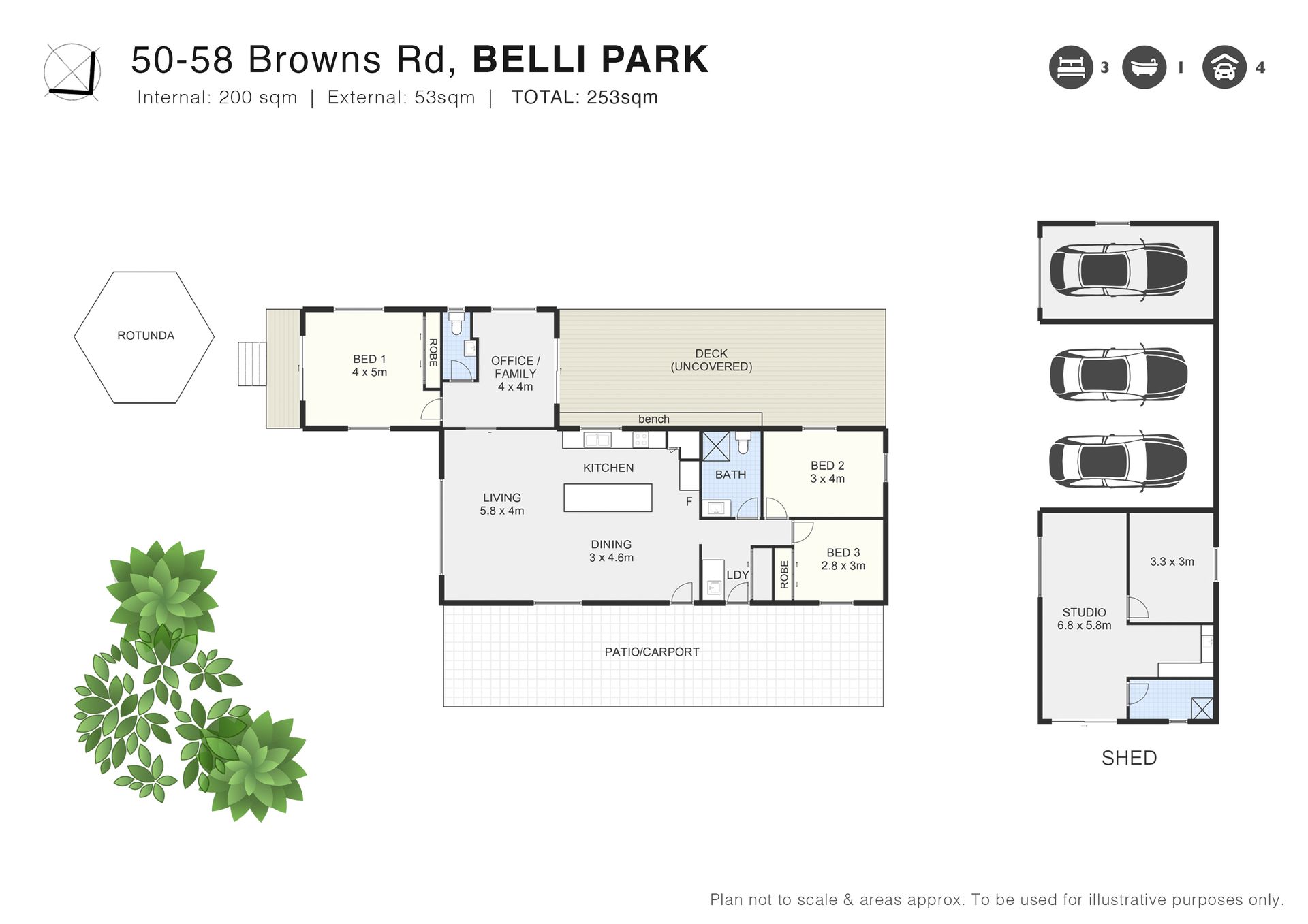• 3-bay shed with workshop & studio/multipurpose area