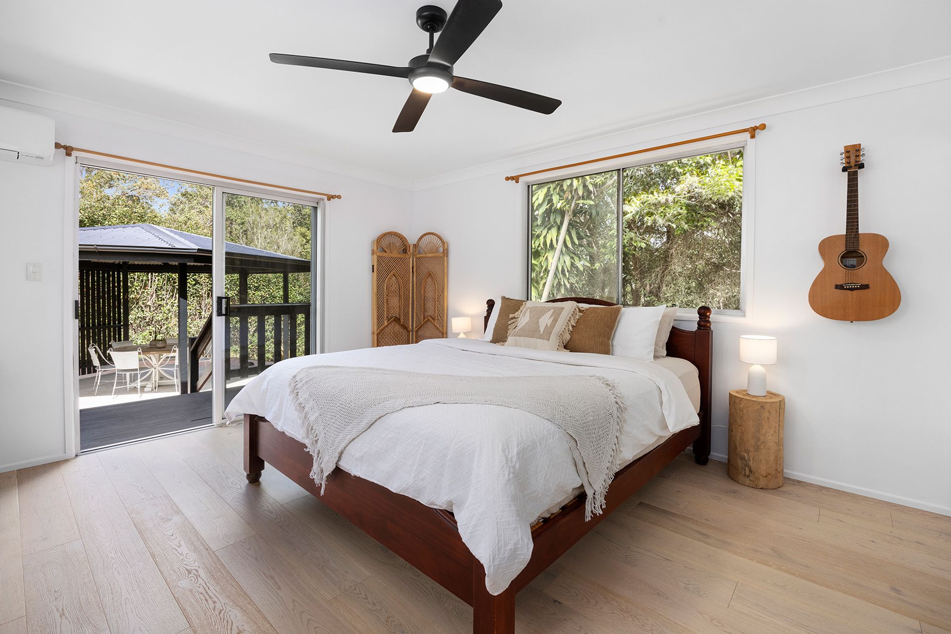 The air-conditioned master bedroom is thoughtfully positioned away from the others and boasts direct access to its own private deck and an adjoining office/sitting area with powder room. The main bathroom has been updated beautifully with floor to ceiling tilework and rainfall shower.