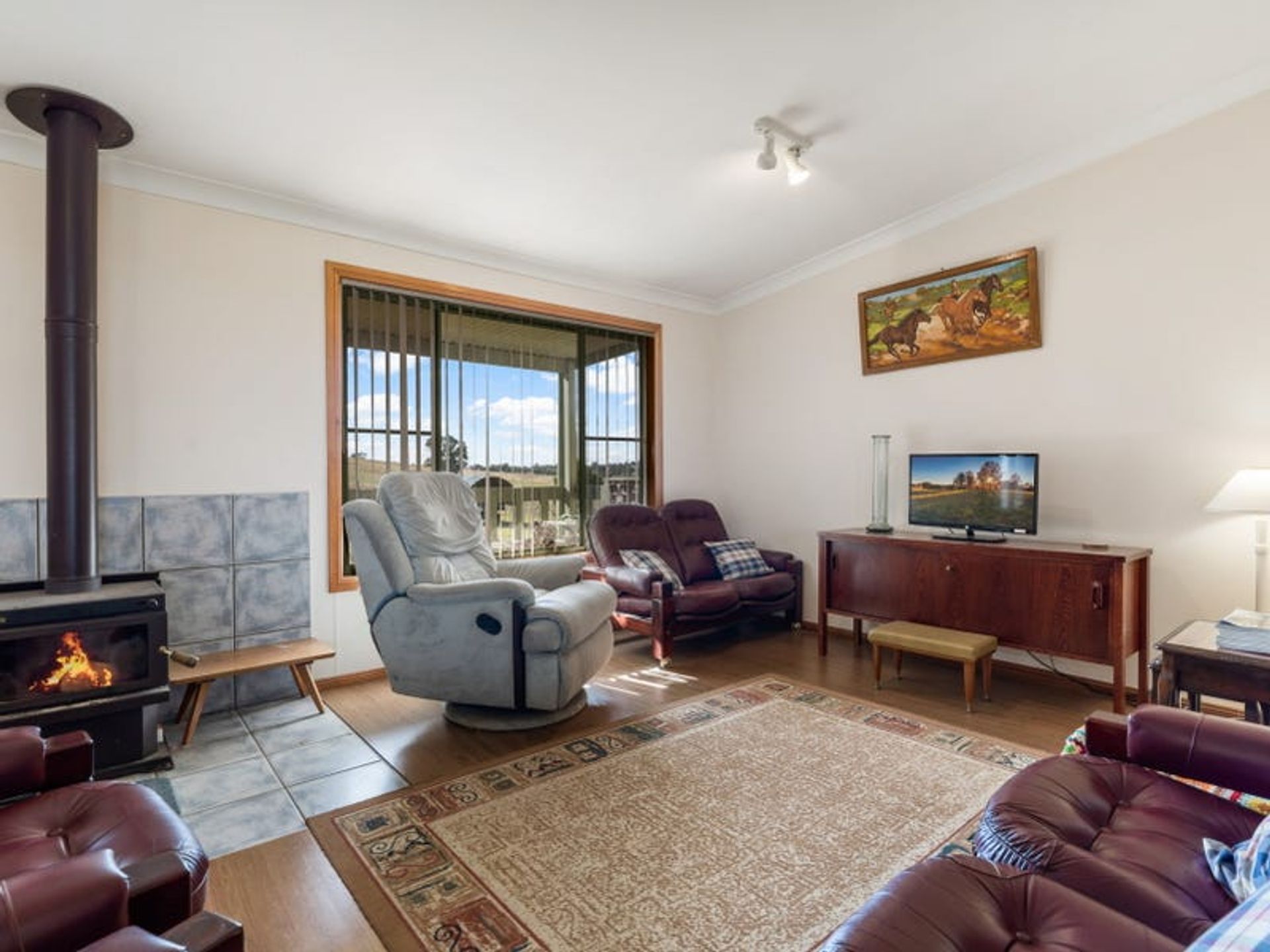 - The comfortable home has and open plan kitchen dining and living area with floating timber flooring, 4 internal bedrooms plus a sleepout, 2 bathrooms, reverse cycle air conditioning, and a slow combustion wood heater.