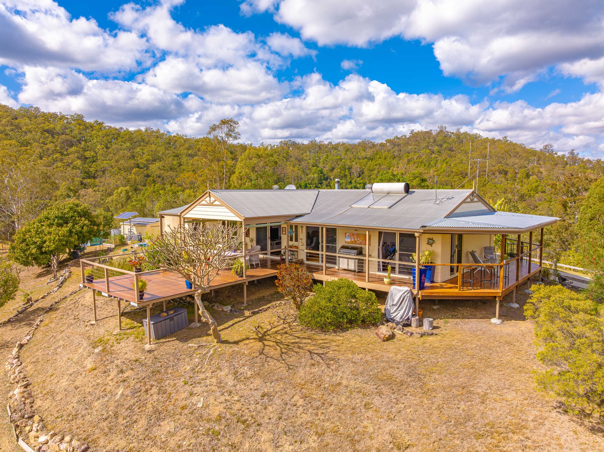 If you're in search of tranquility, unparalleled privacy, & self-sufficiency this remarkable 256-acre property is tailor-made for you. Nestled atop a hill, this open-plan, off-grid home offers breathtaking 360-degree views of the Mary Valley. What sets this property apart is that approx. 50% of its boundaries seamlessly meld with the Amamoor State Forest & Forest Reserve, ensuring a natural sanctuary on a grand scale.