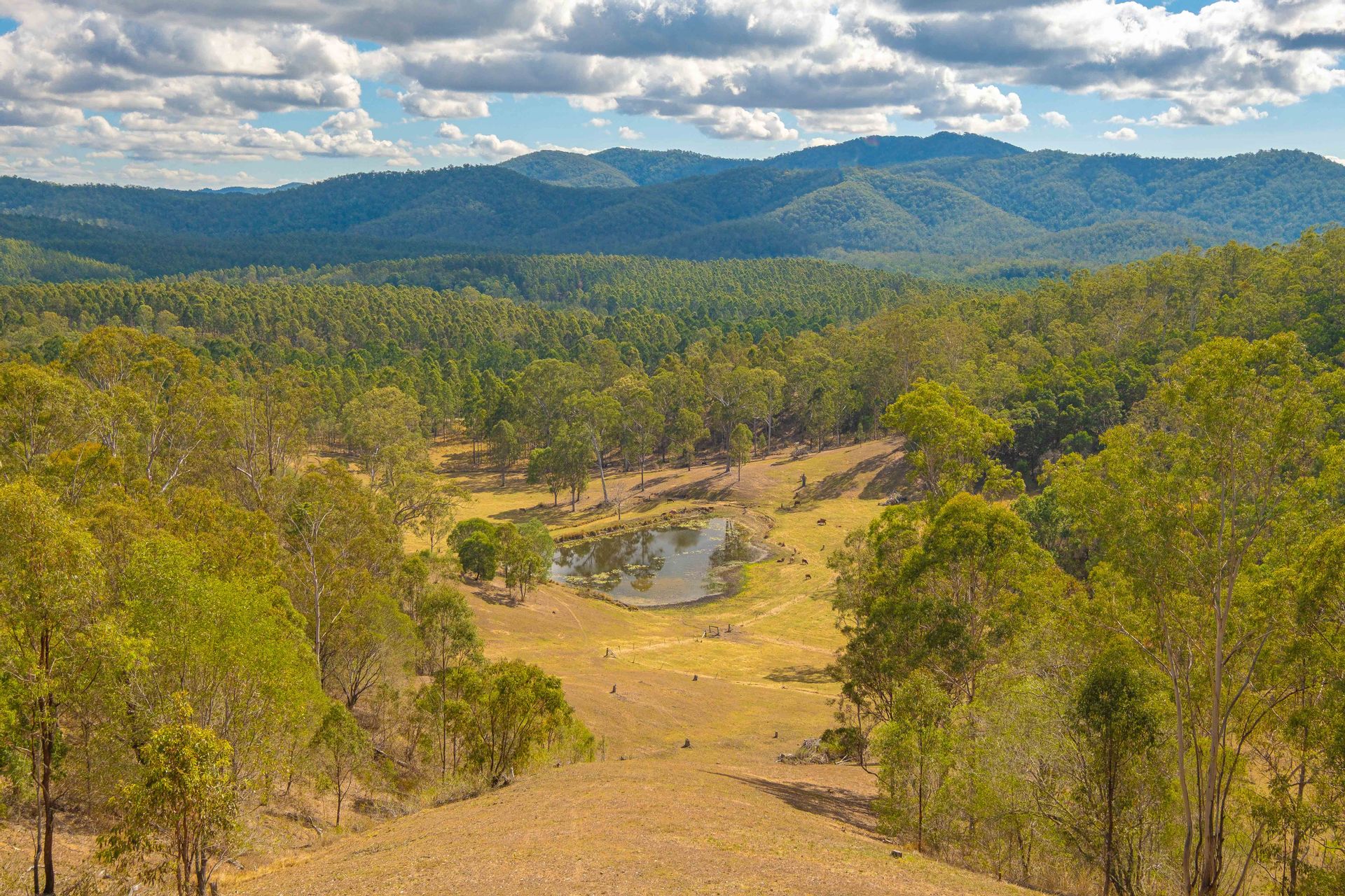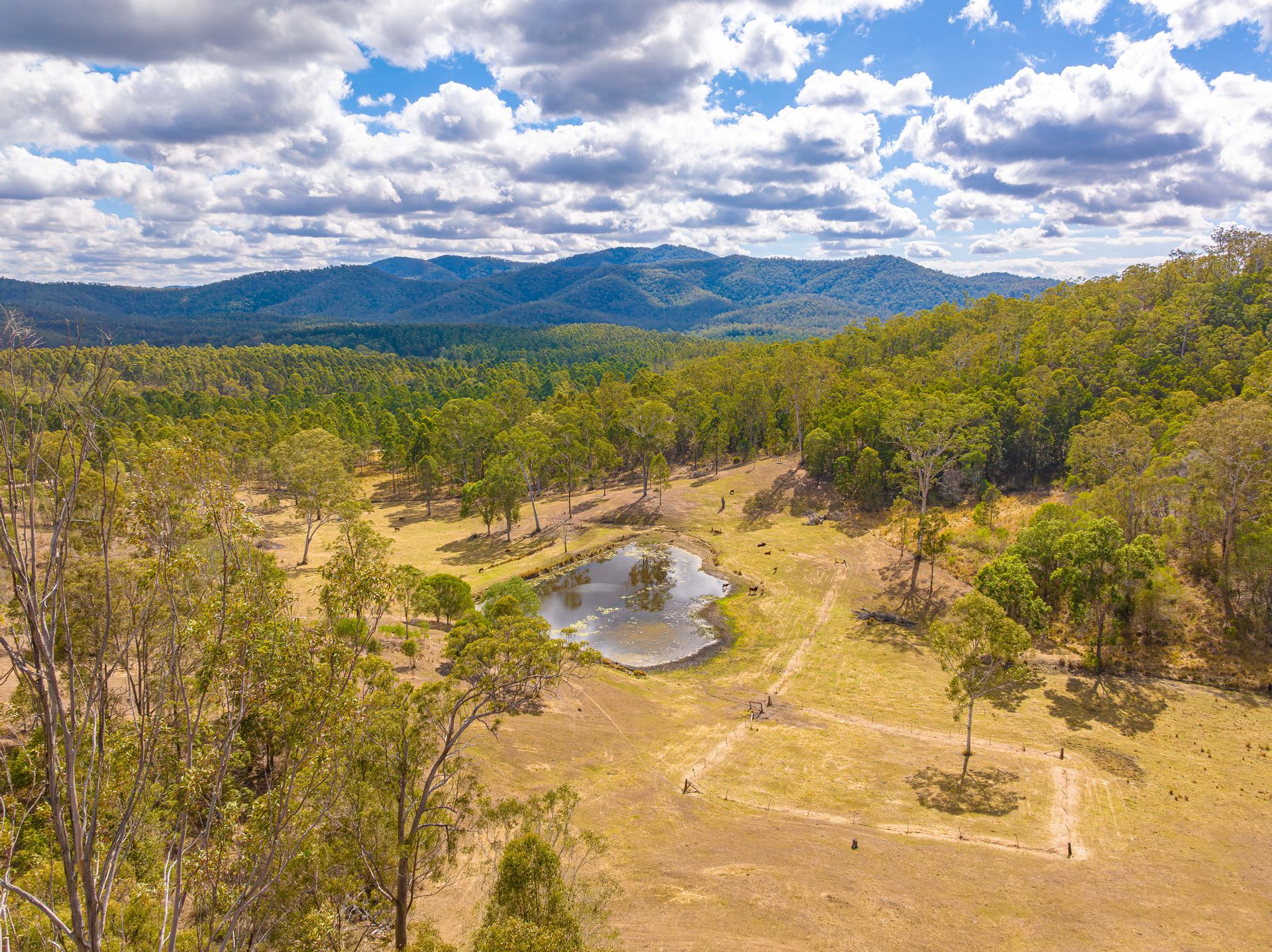 This property in the 'Blue Bell' region sits amidst beautiful hills & valleys, just a 35-minute drive southwest of Gympie. It's closely connected to nature, bordered by & offering views of the expansive Amamoor State Forest & Forest Reserve, spanning over 7,000 hectares (17,000 acres). This diverse area includes dry forests, riverine forests & impressive hoop & bunya pine plantations. The property is home to a variety of stunning wildlife & is a haven for bird enthusiasts, with over 120 bird species found in the surrounding forests.