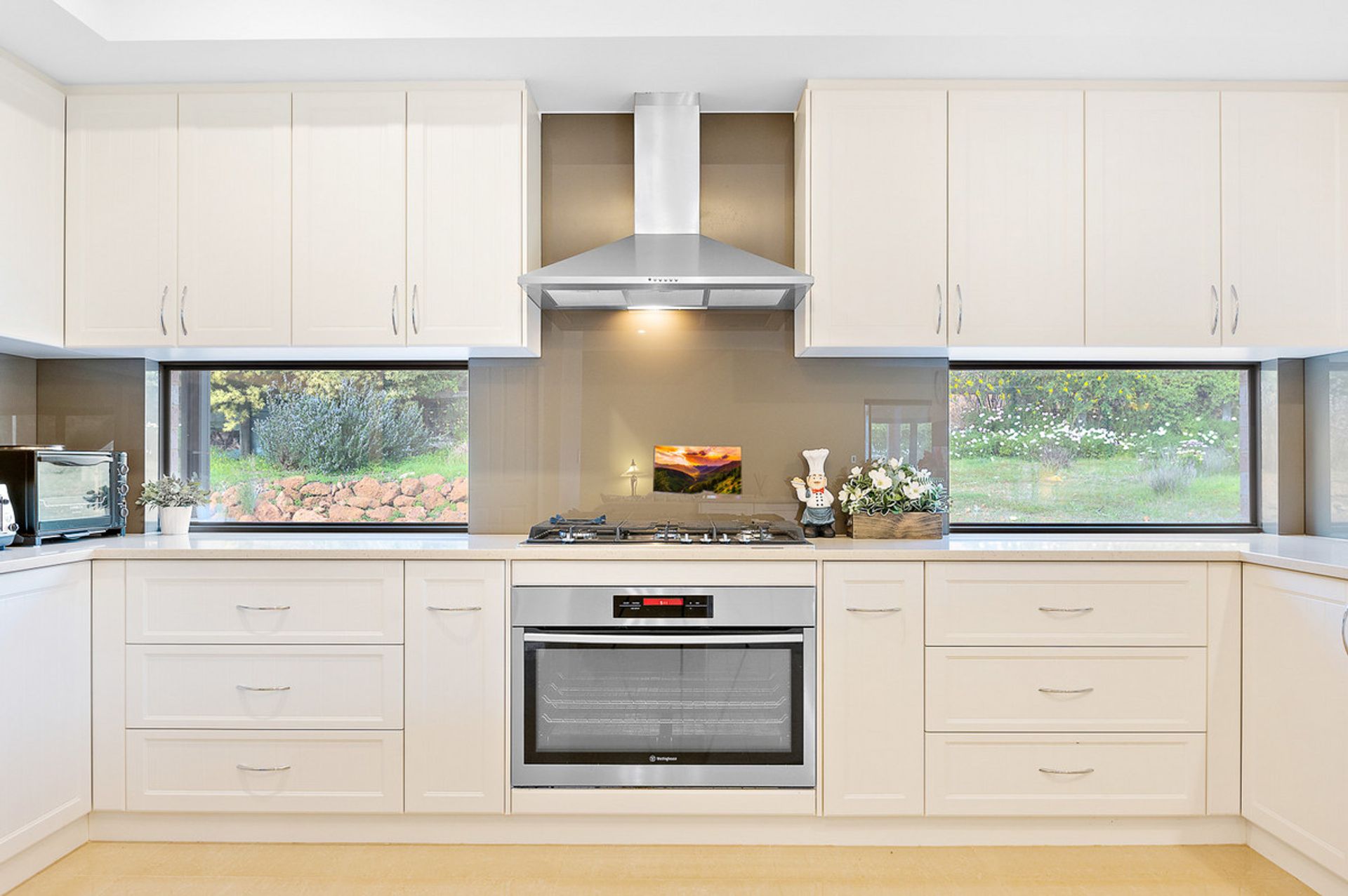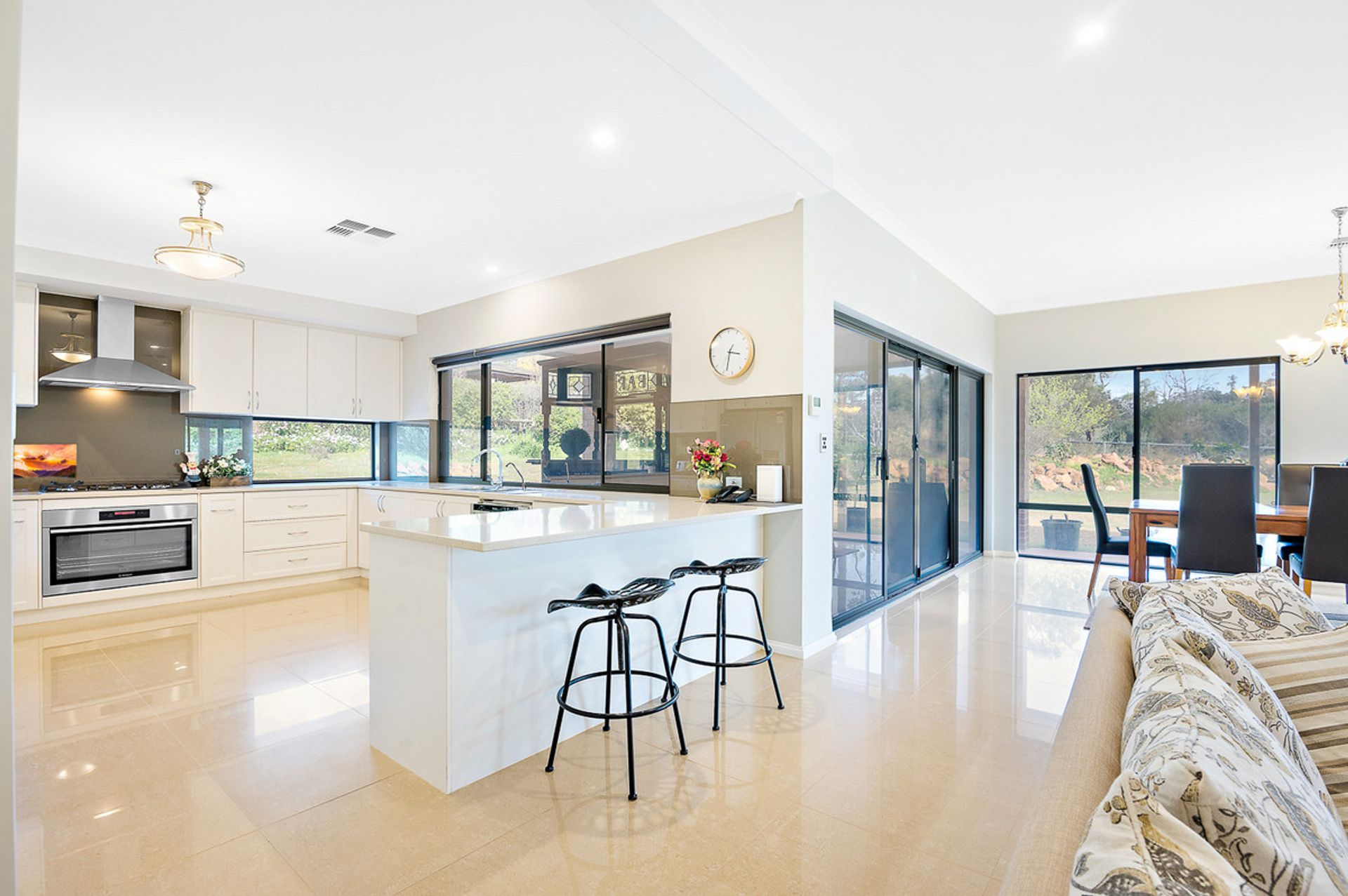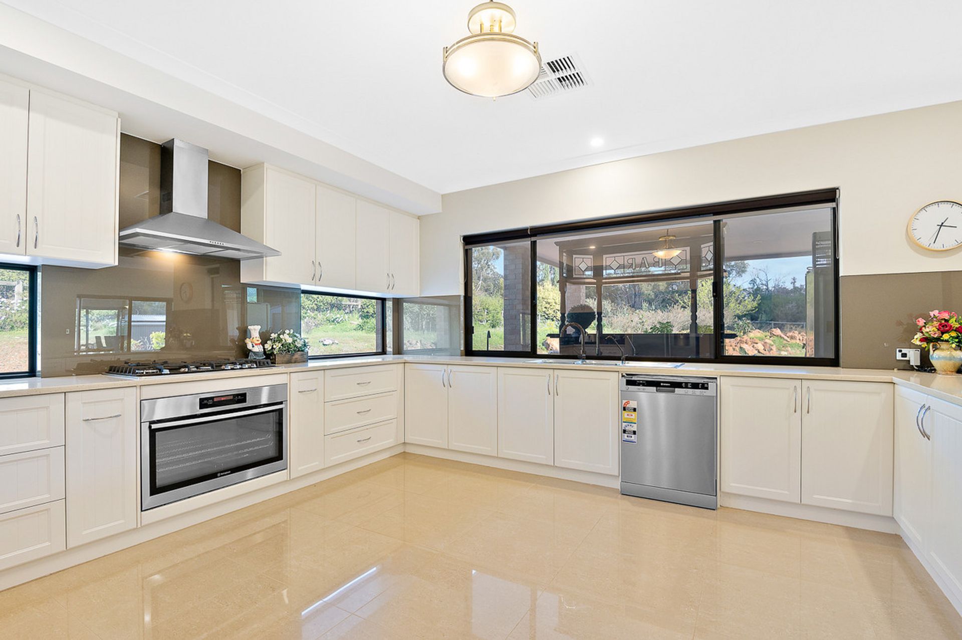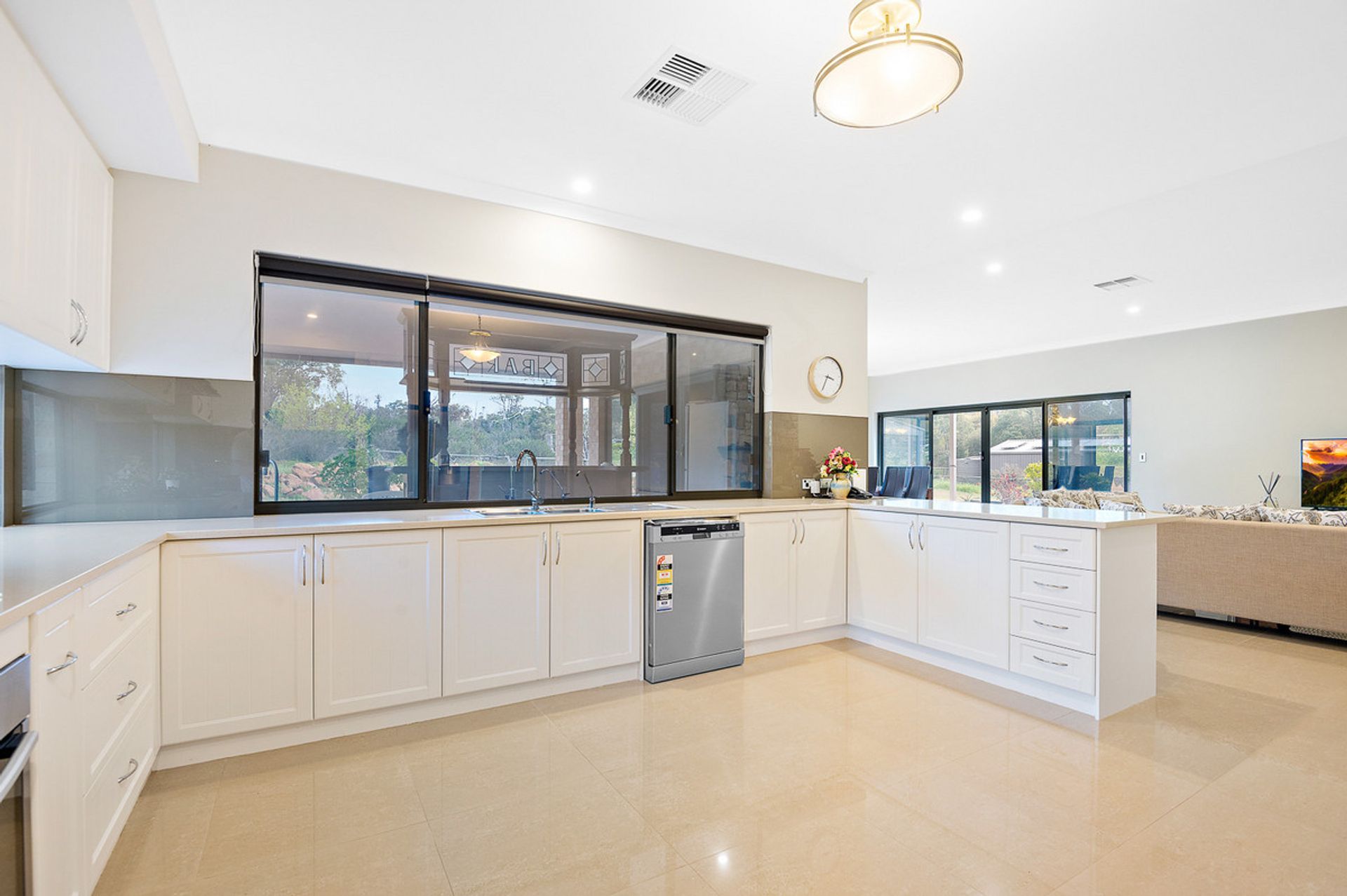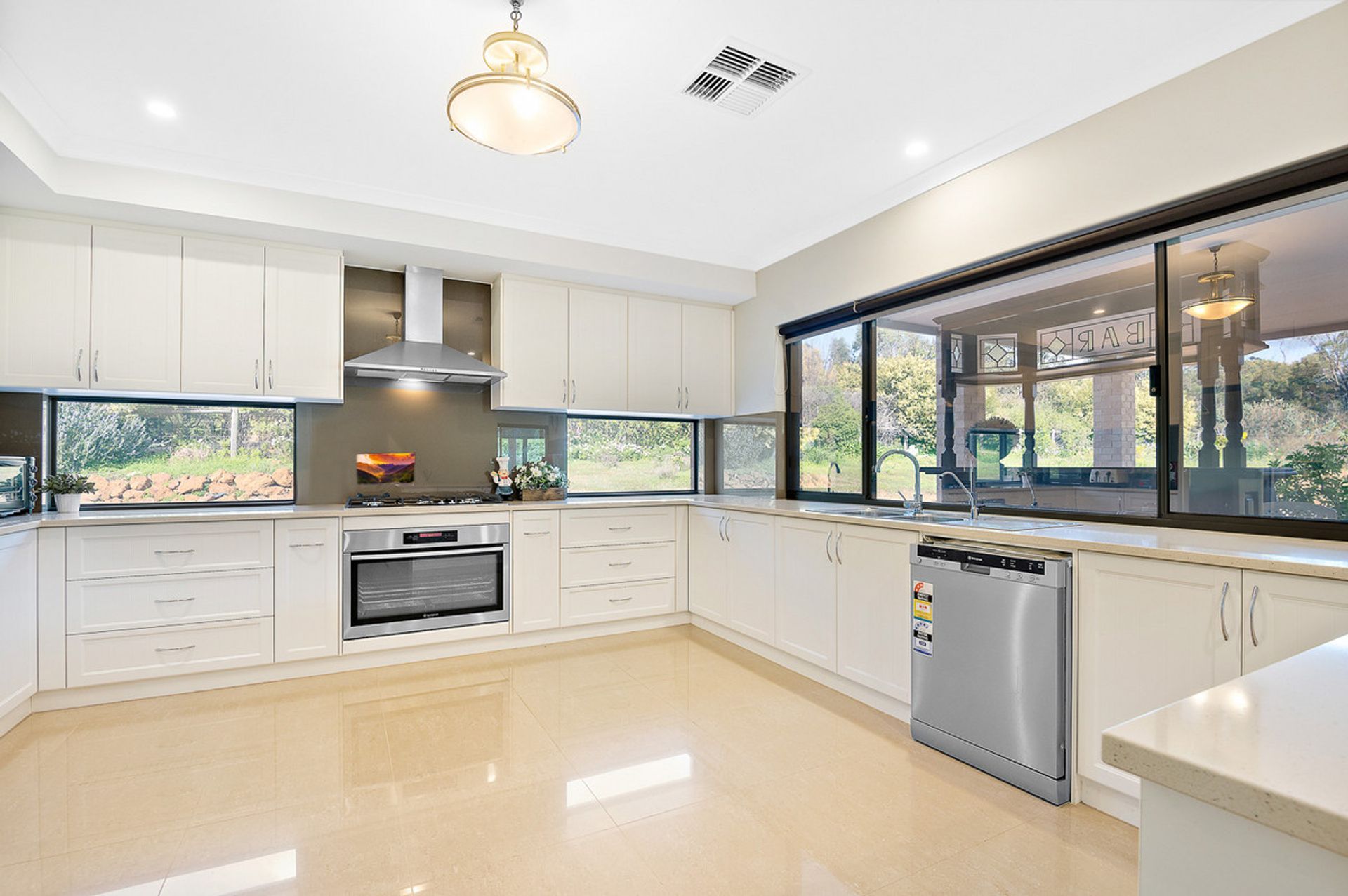 -Huge kitchen with stone benchtops and scullery