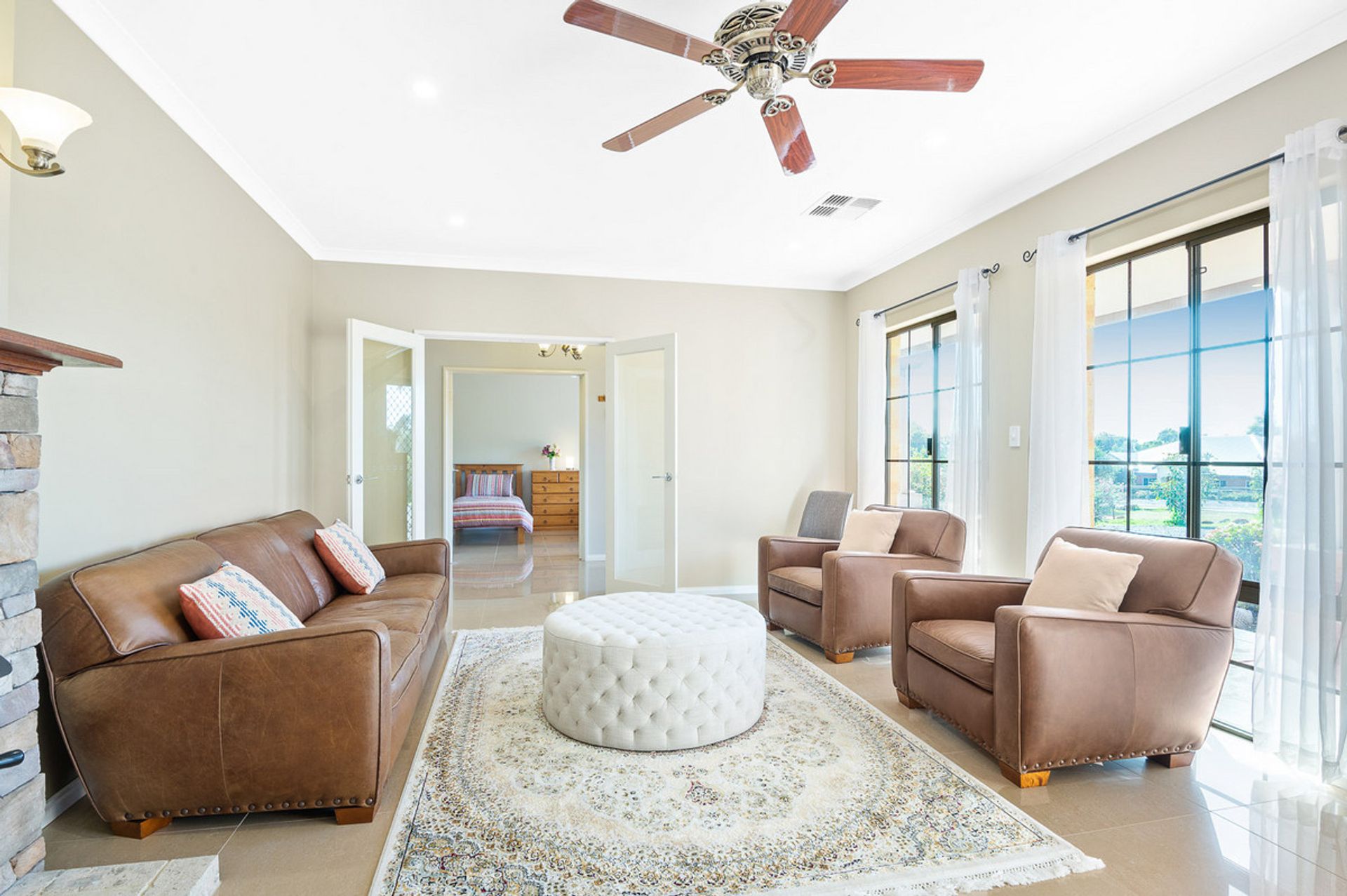 -Formal lounge to left with double side fireplace