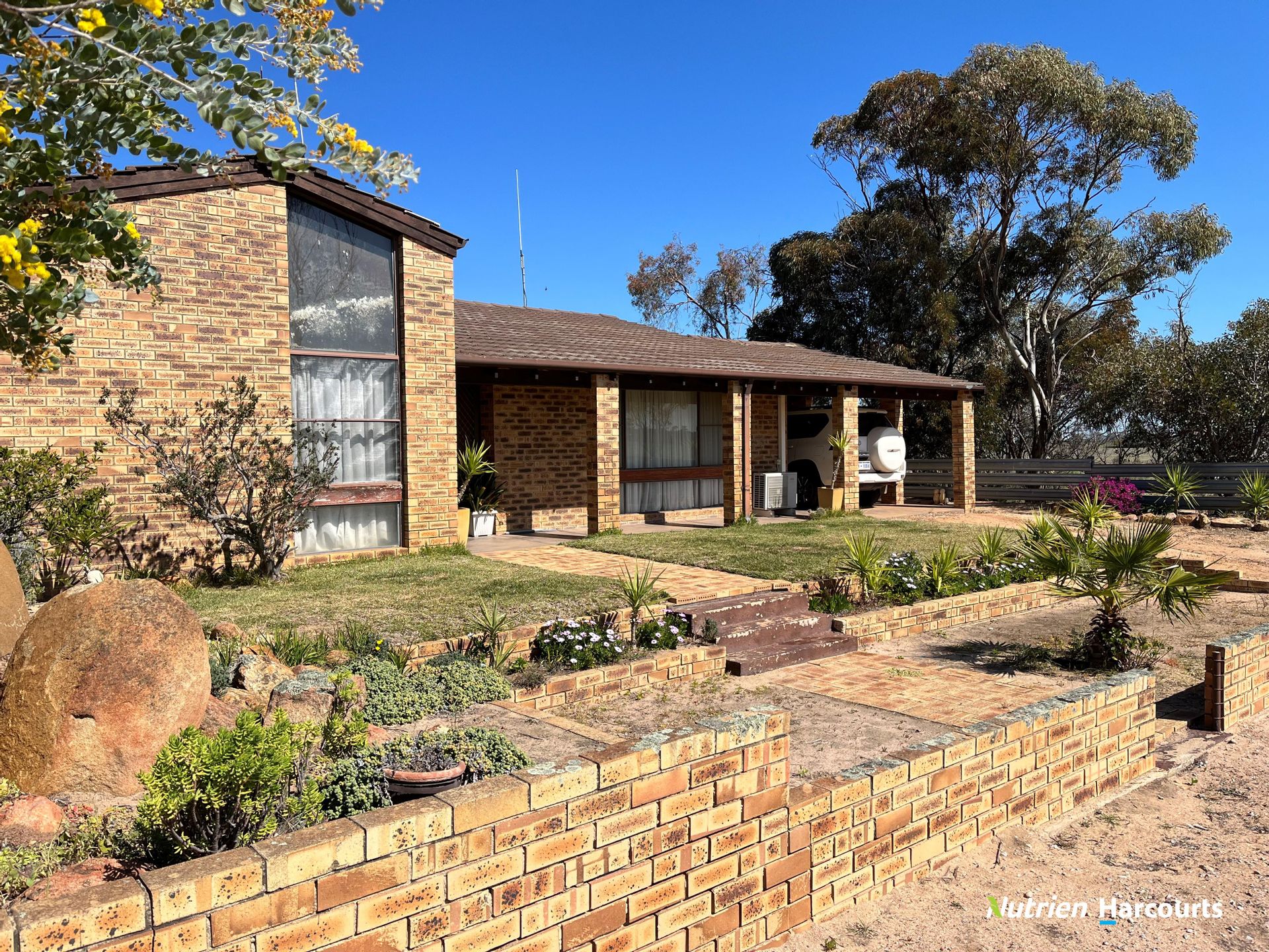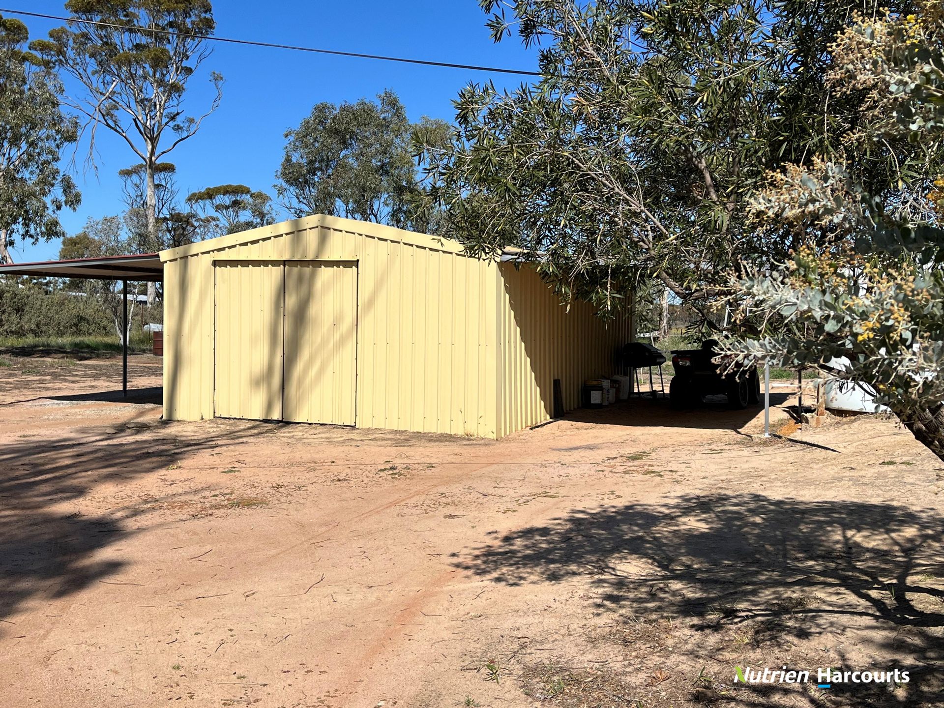 The current owners had 'Fewster and Stone' build the farm homestead in 1979 which is a four bedroom, brick & tile construction with evaporative air conditioning, open living areas, two bathrooms, under roof carport, established gardens and lawns and connected to the scheme water. The modest complement of farm infrastructure that includes 3 stand shearing shed & yards, approx. 100 tonne fertiliser storage, overhead grain storage, G.P. sheds and a 50,000 litre freshwater boom-fill.