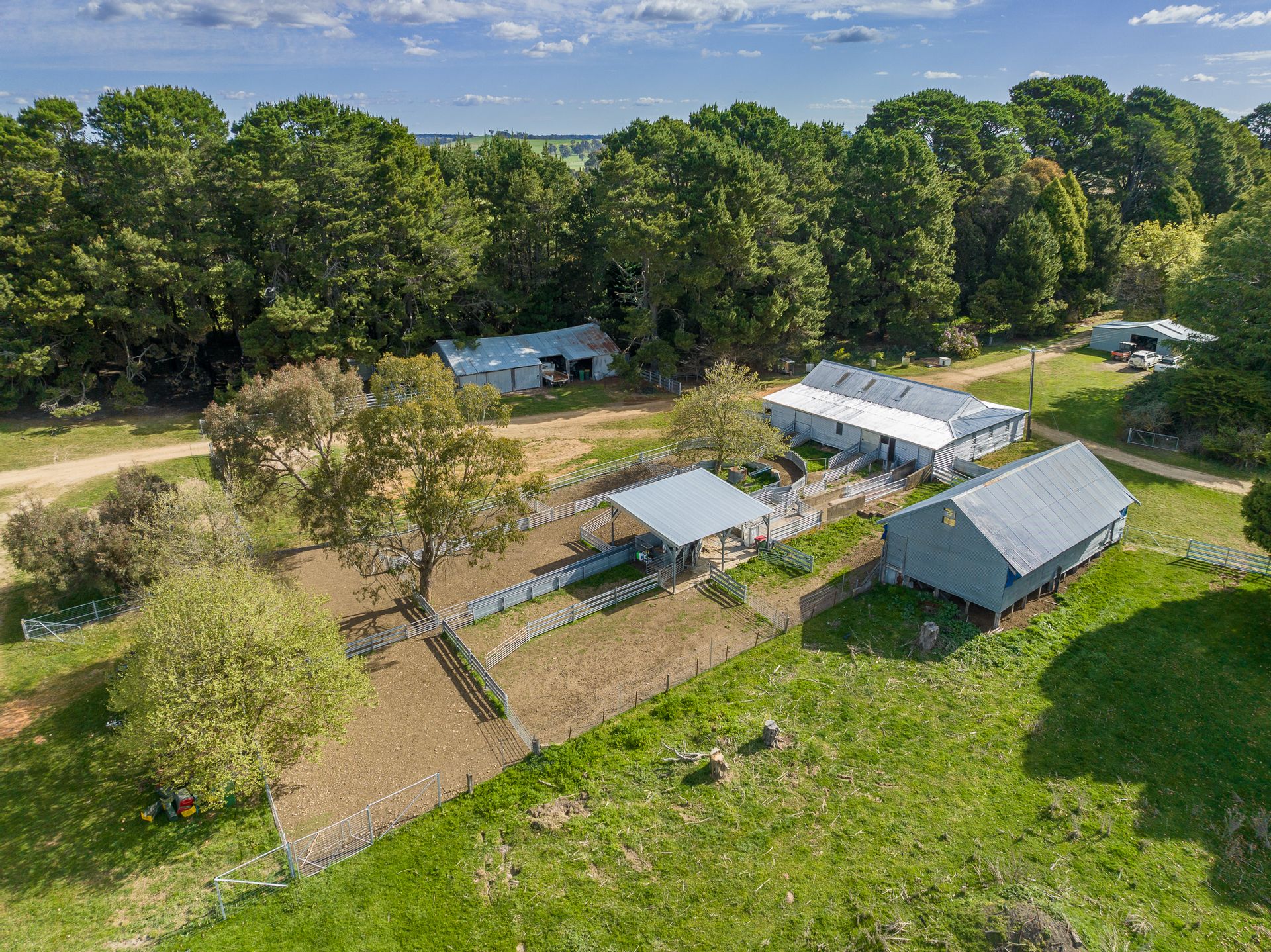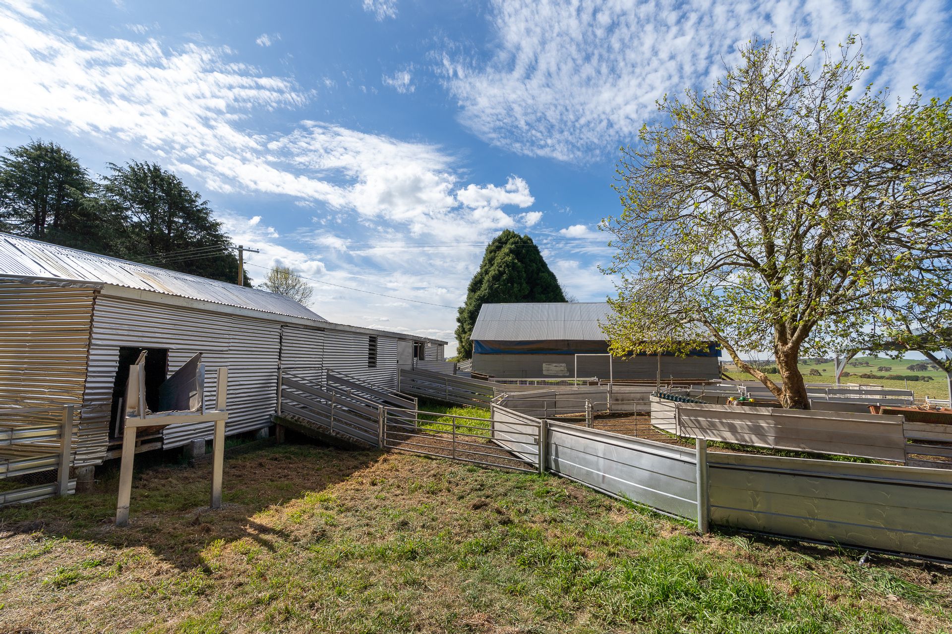 • Steel sheep yards with loading ramp, under cover work area, plunge dip, shearing shed, undercover sheep/ram shed