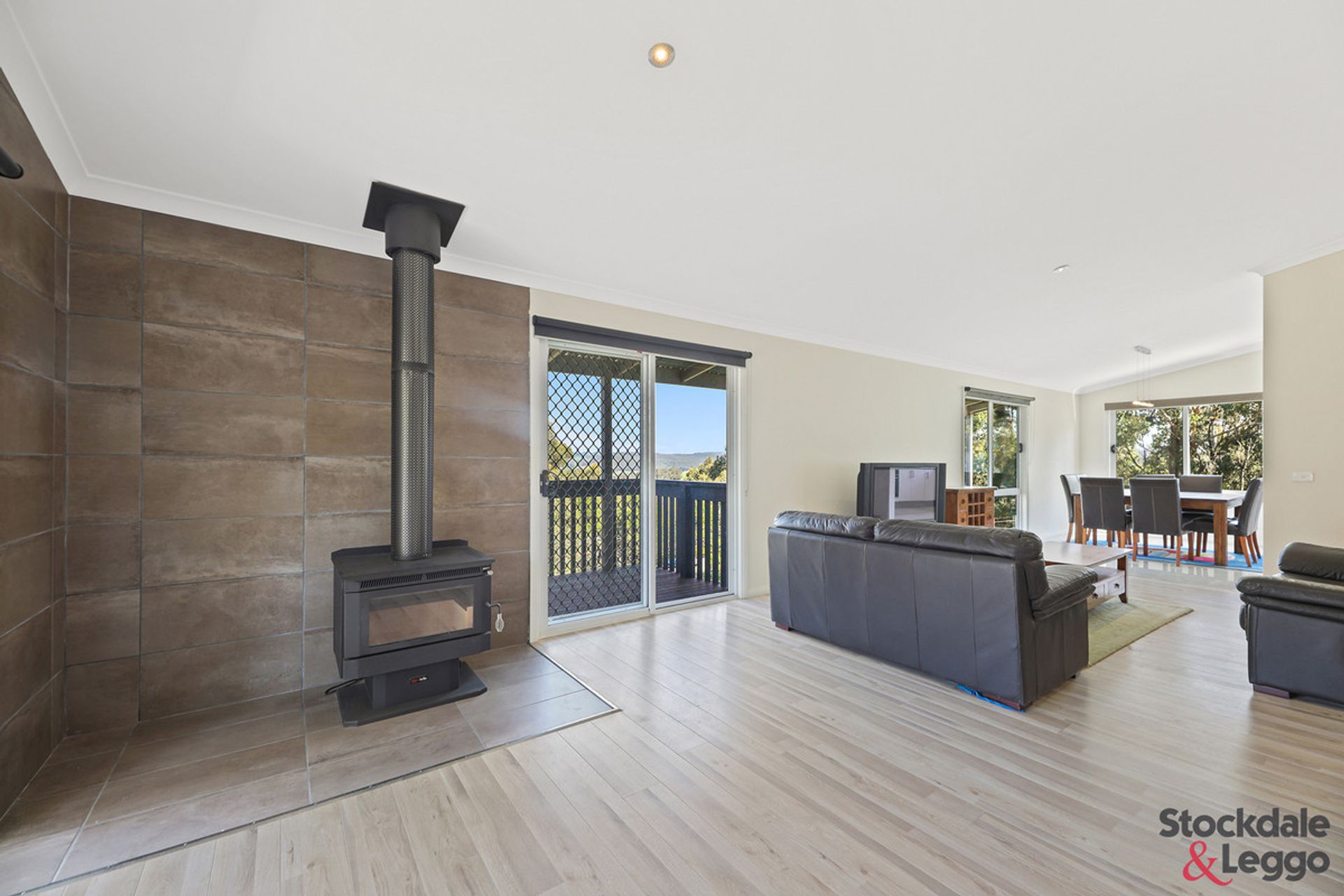 Upon entering from the front porch, you are immediately welcomed by the spacious open plan living, kitchen, and dining area, all the while being captivated by the breathtaking view. The living room features a classic wood fireplace -perfect for the Gippsland winters, while the kitchen is light filled and thoughtfully equipped with a 600mm gas stove, electric oven and a dishwasher.