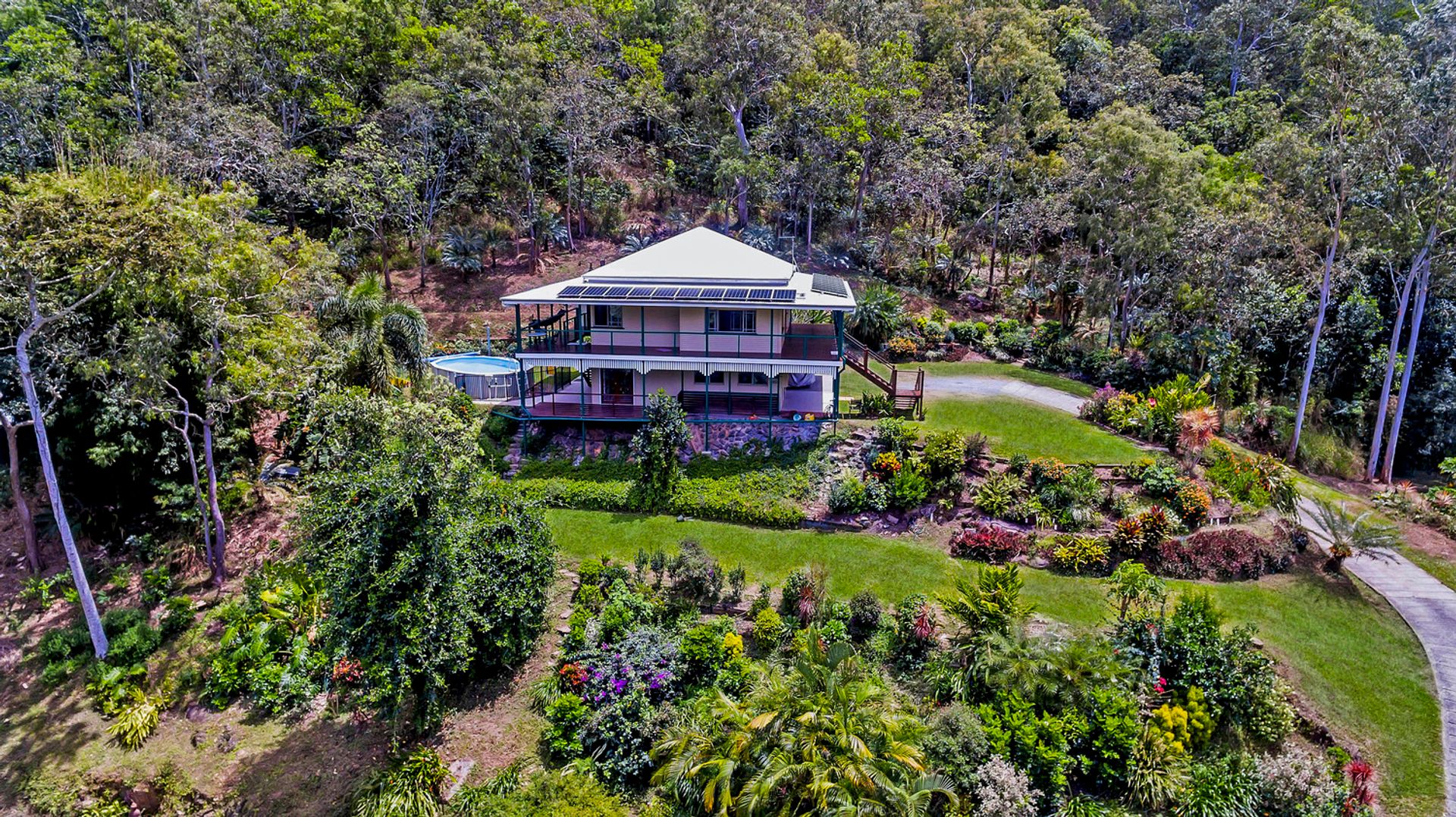 The bottom level has been tastefully built in to accommodate a modern self contained living area and rumpus with it's own private timber deck with views. The home is fully air conditioned for your comfort and has a 6 kw solar system so you can save on your electricity bills. The water supply for the home is from rainwater tanks on the property and has a Puretec 3 stage filtration system to give you amazing pure water. There is an above ground swimming pool for your enjoyment on those hot summer days.
