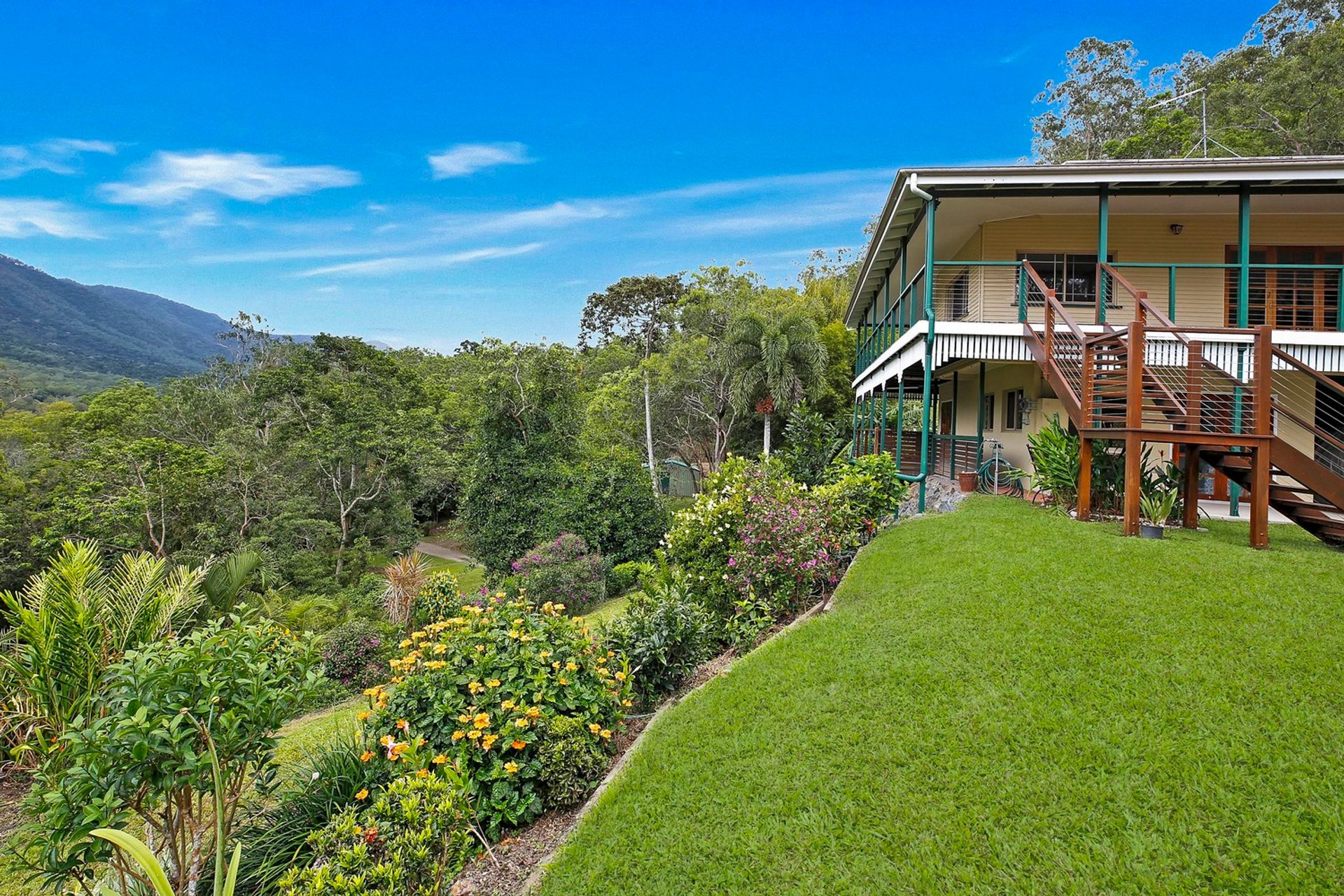 Built high on the side of the mountain to capture the magnificent mountain views and cool breezes is this 3 bedroom Queenslander with polished timber floors throughout, high ceilings and wrap around verandahs with timber decking.