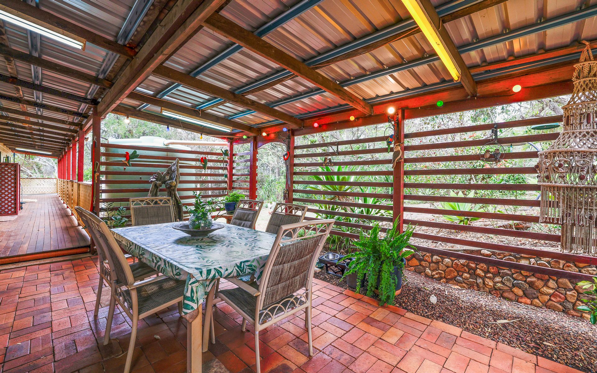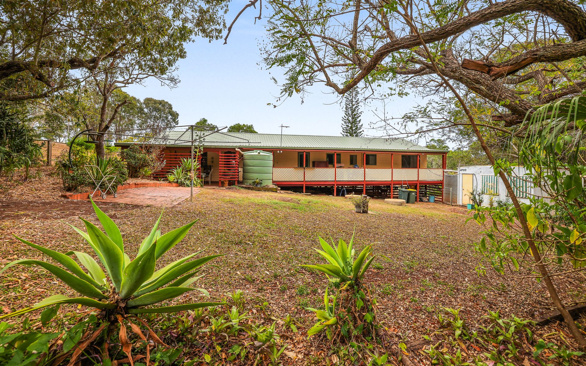 Water: Rainwater for the home (2 large concrete tanks), domestic bore for the yards and gardens.