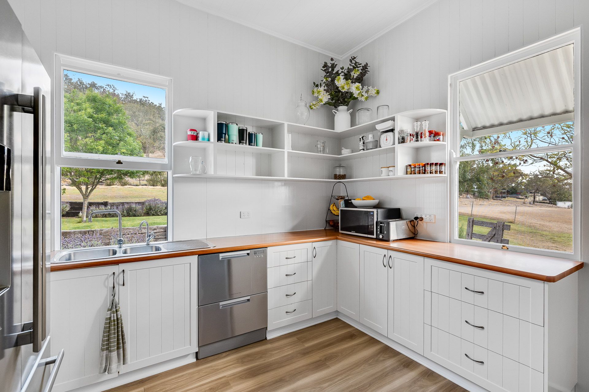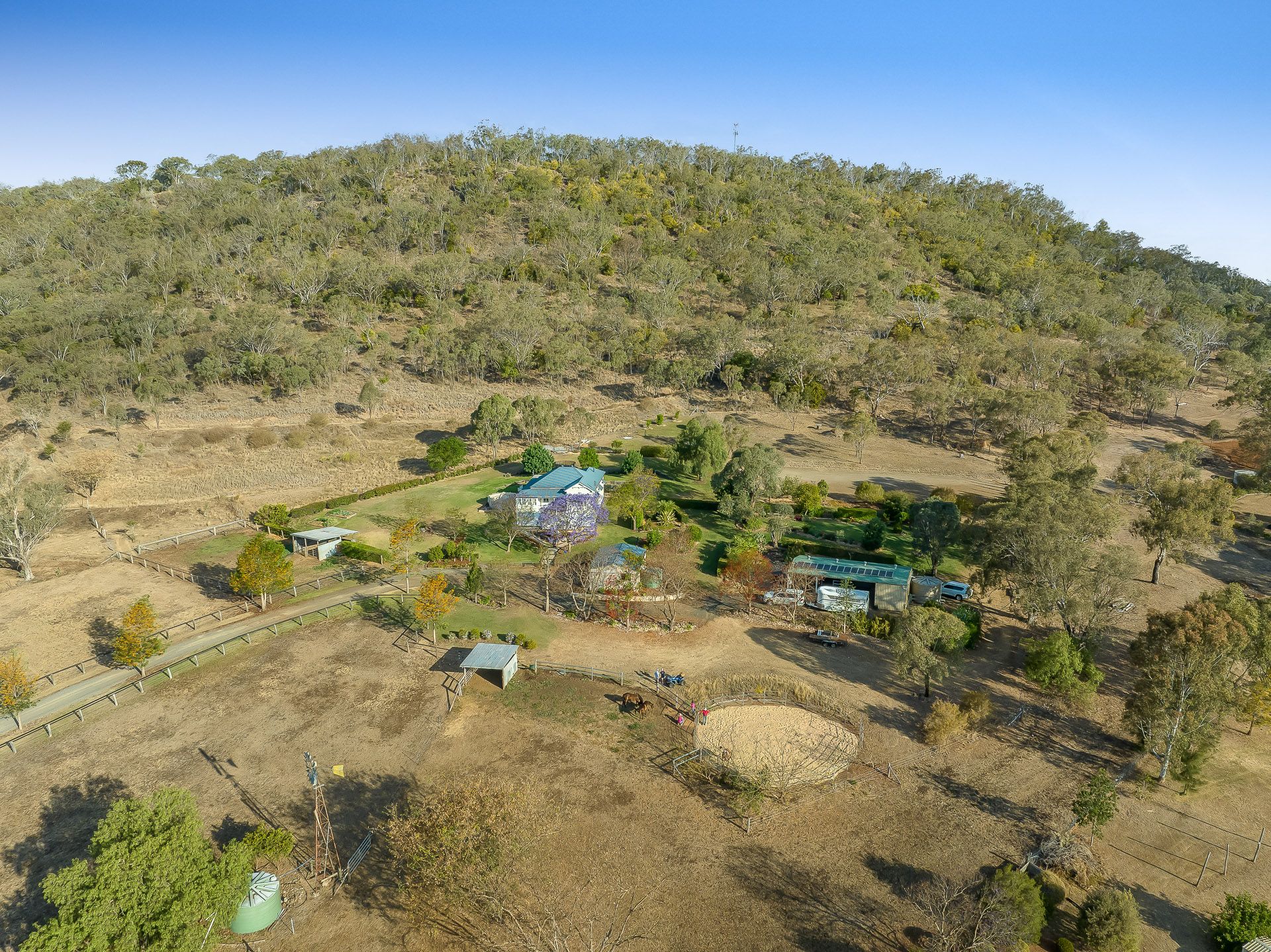 Situated at the end of a no-thru-road, the secluded driveway sets a peaceful and harmonious feeling as you enter. The Queensland character homestead is nestled in and protected by the ridge on the southern side, enhancing its prominent north east aspect and has been cared for with many features including high ceilings, polished hoop pine floors, plantation shutters, colourful leadlight doors/windows, air conditioning, open fireplace and formal or casual areas to unwind or entertain.