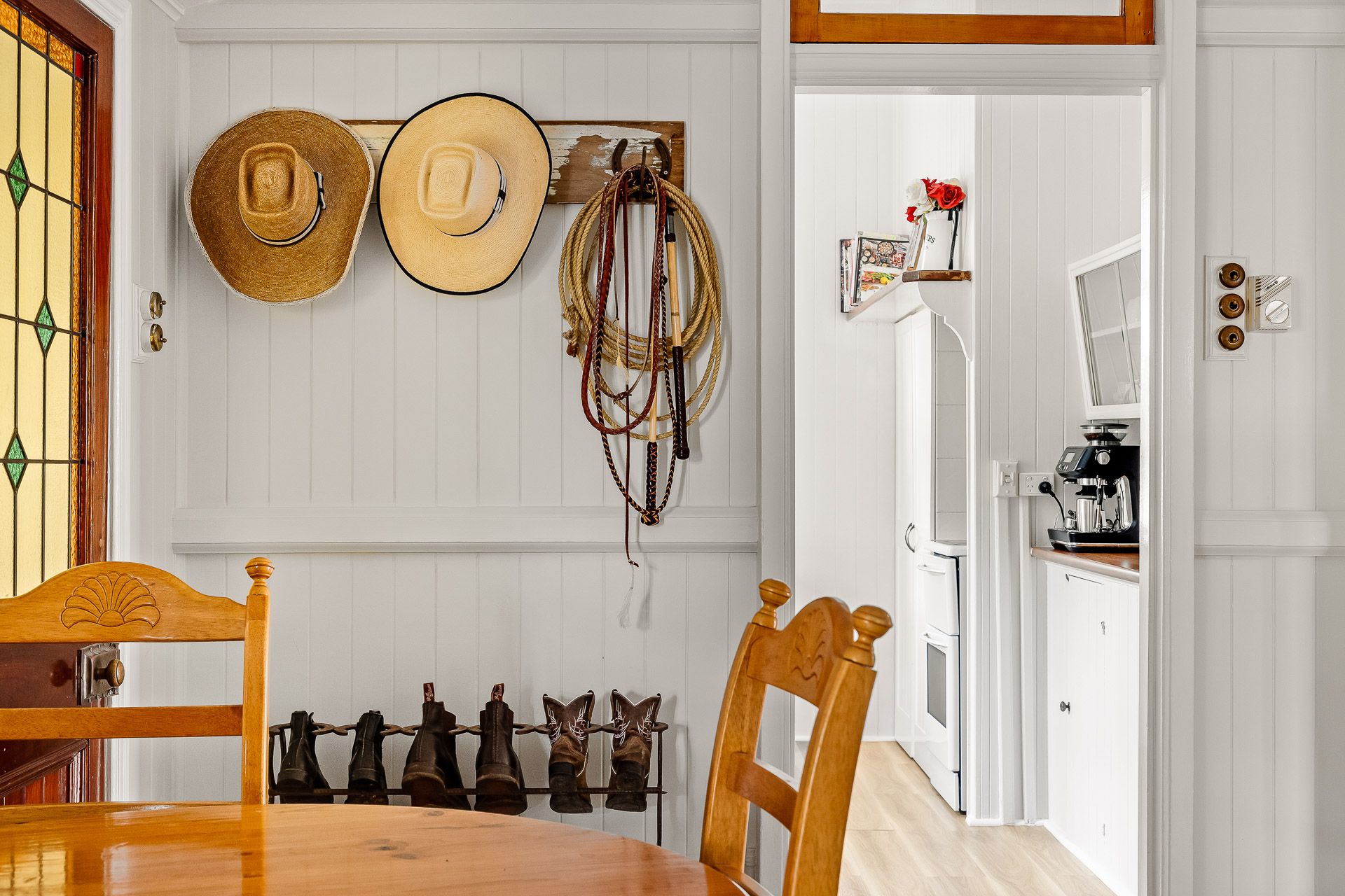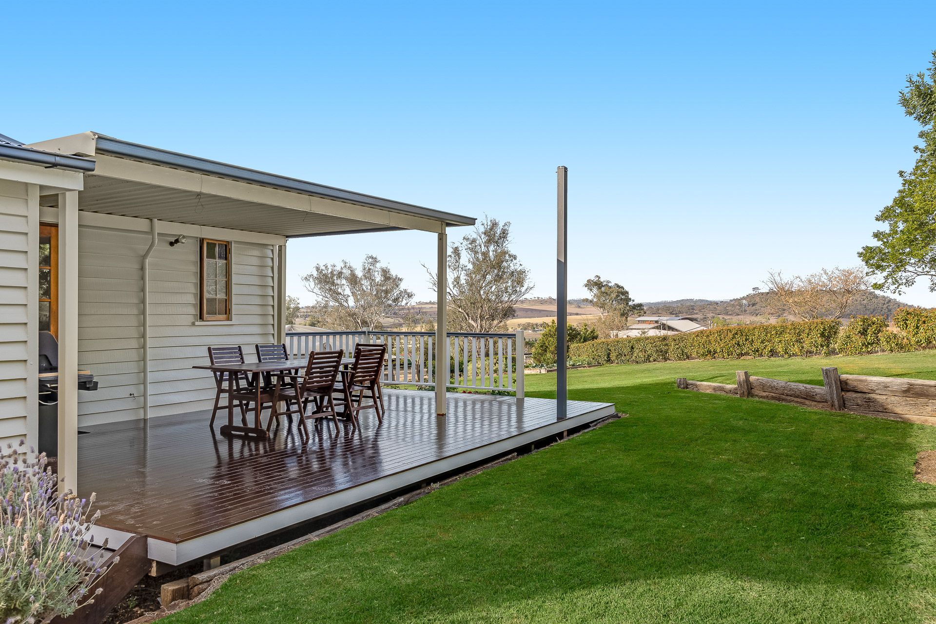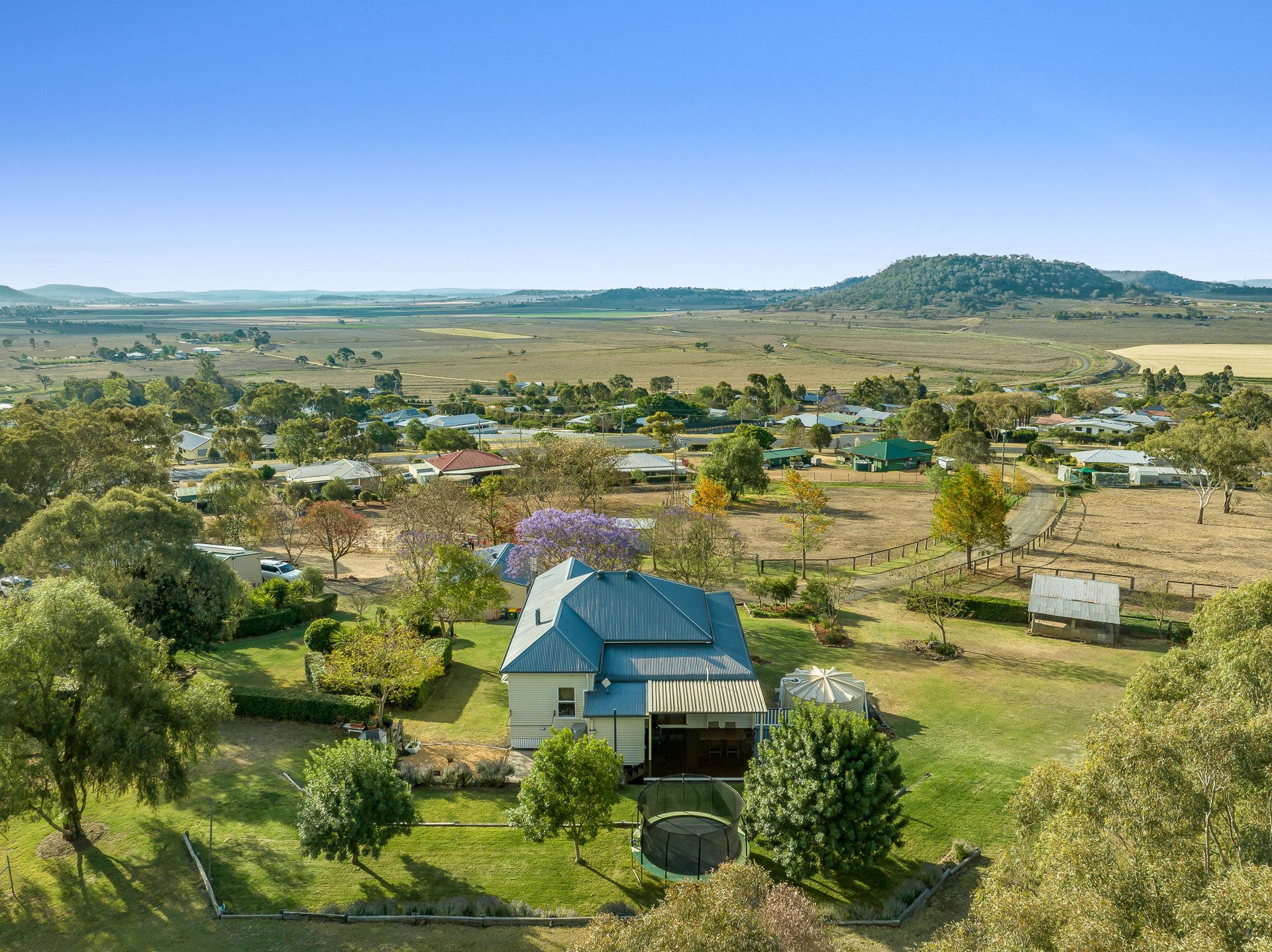 The manicured grounds include mature shade trees, fruit trees and gorgeous gardens which complement the beautiful home. Water security is a huge bonus to the property with town water connection, good rain water storage for the home and a working bore equipped with an electric submersible which pumps to all troughs and external taps for the lawns and gardens. The fencing is in great condition with 3 major paddocks, horse shelters with day yards and provision for stables in the large machinery/hay shed which includes a lockable tack & feed room.